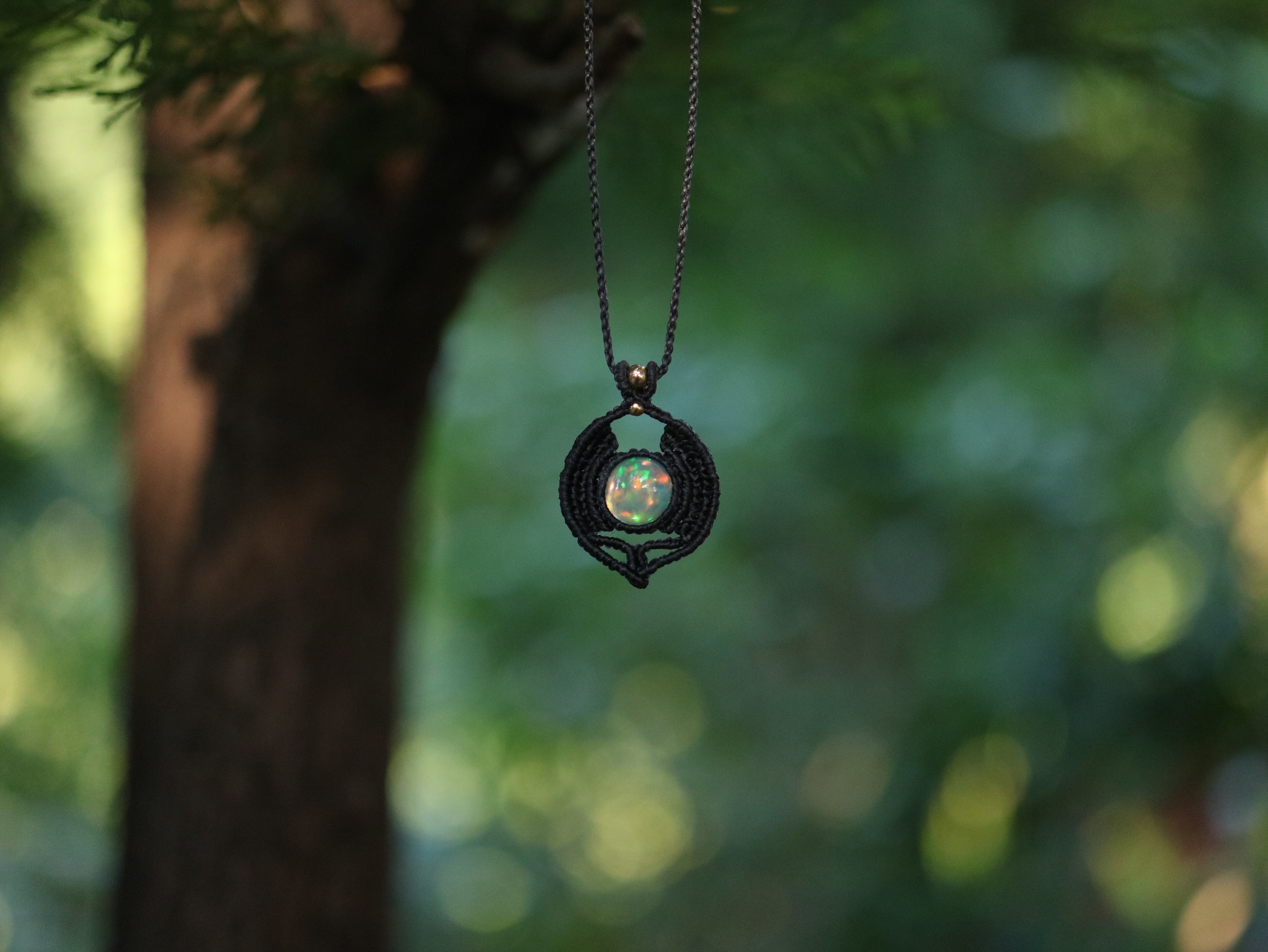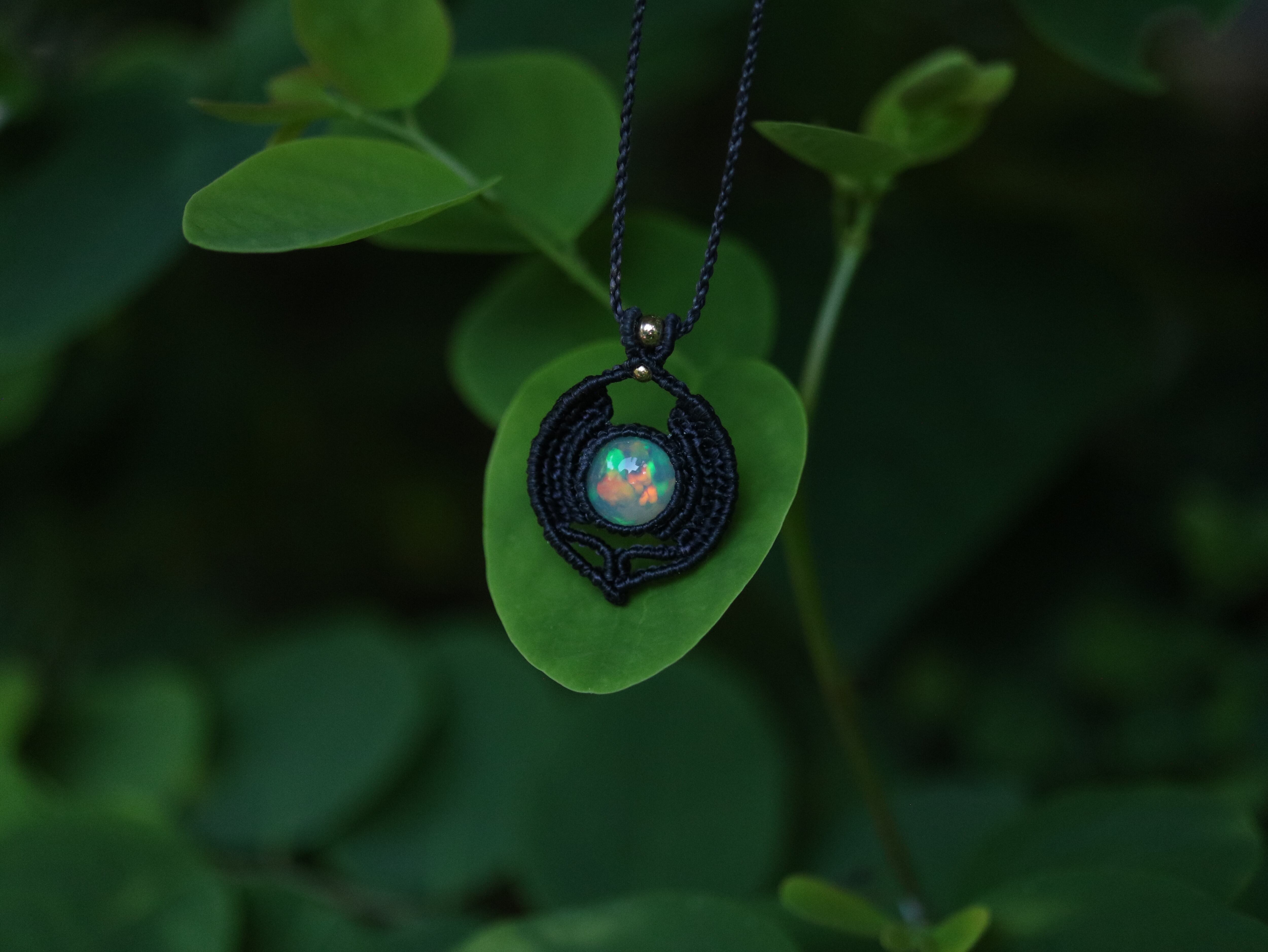 エチオピアンオパール ペンダント 丸 ダークネイビー