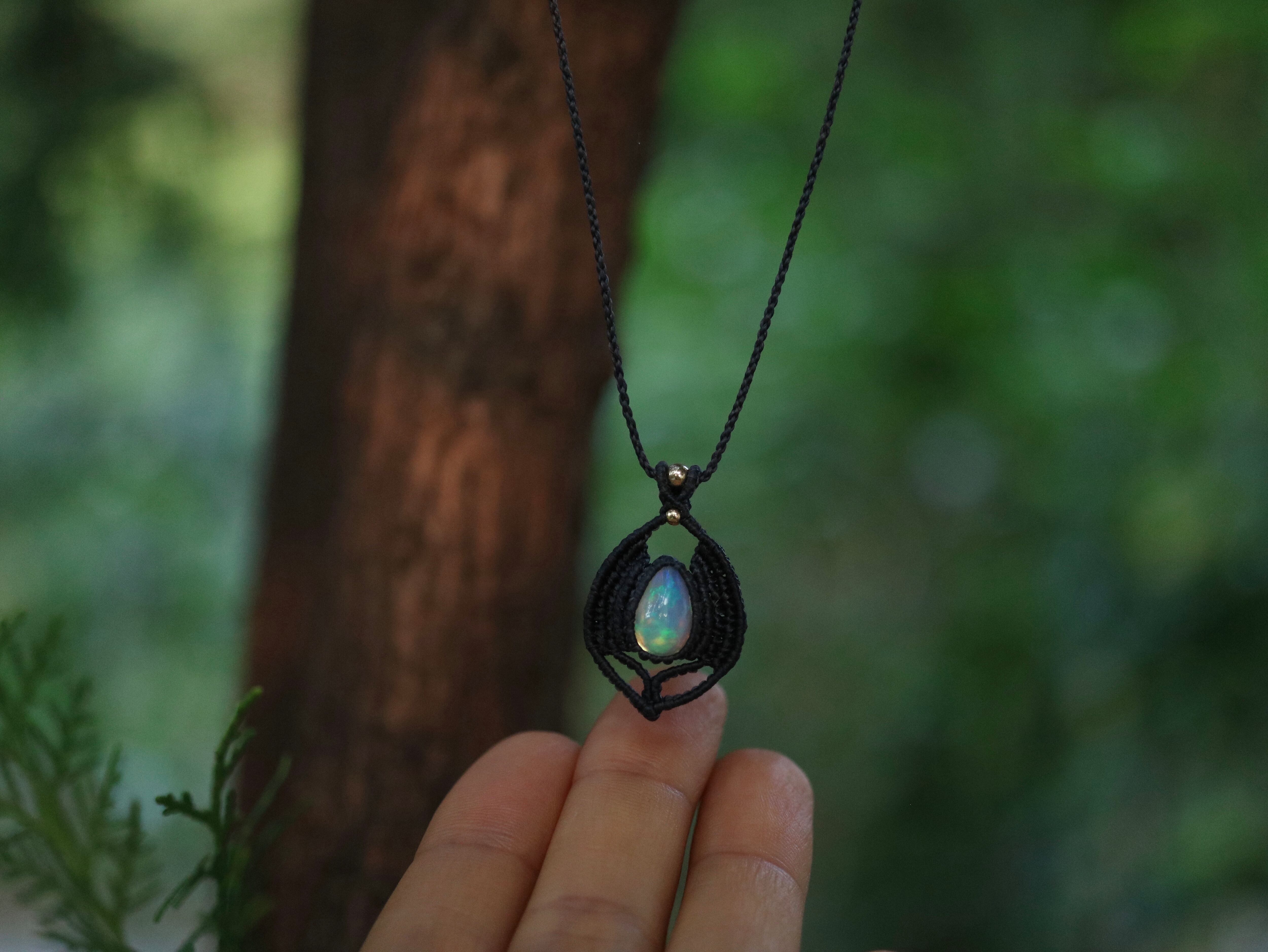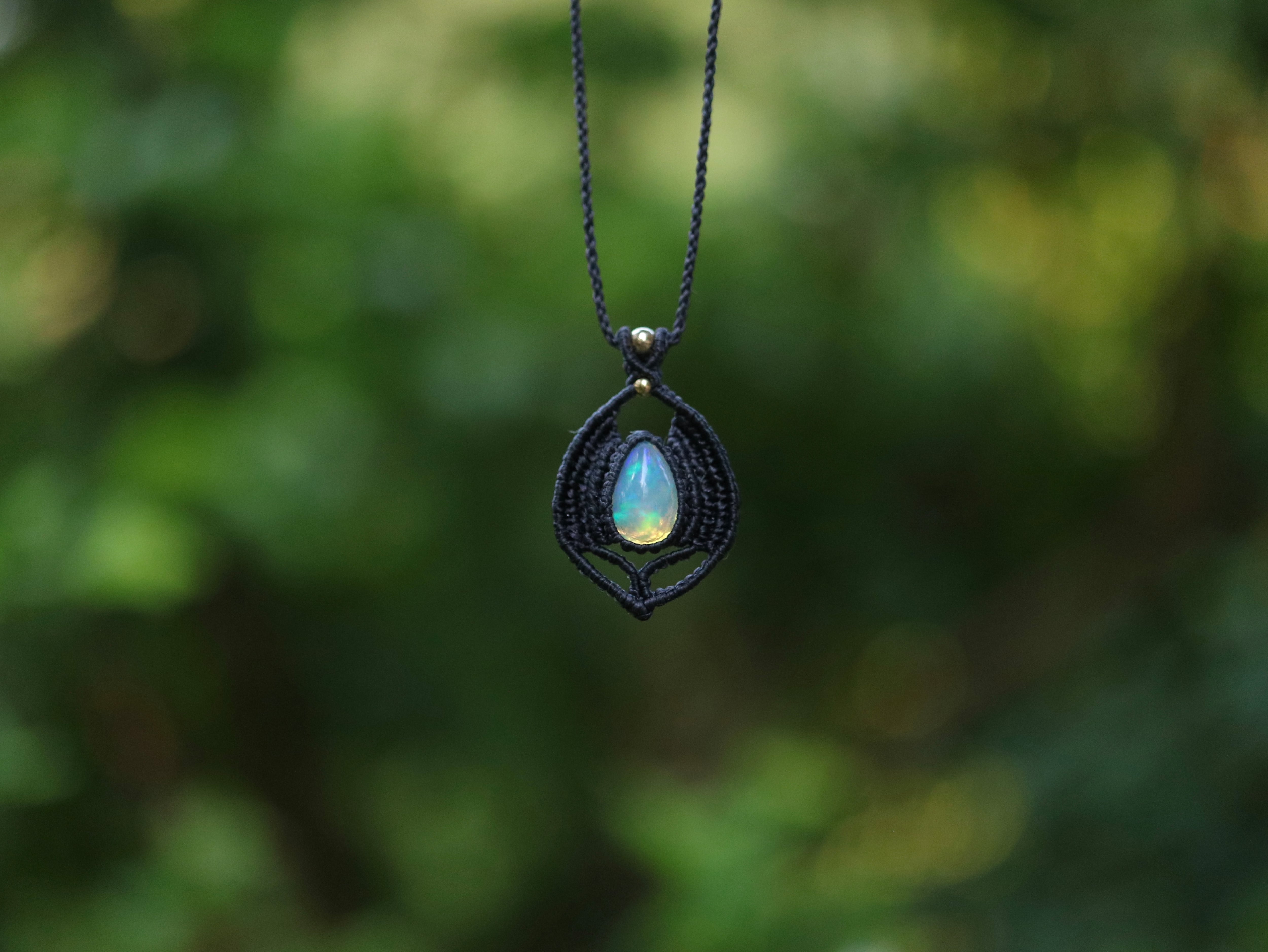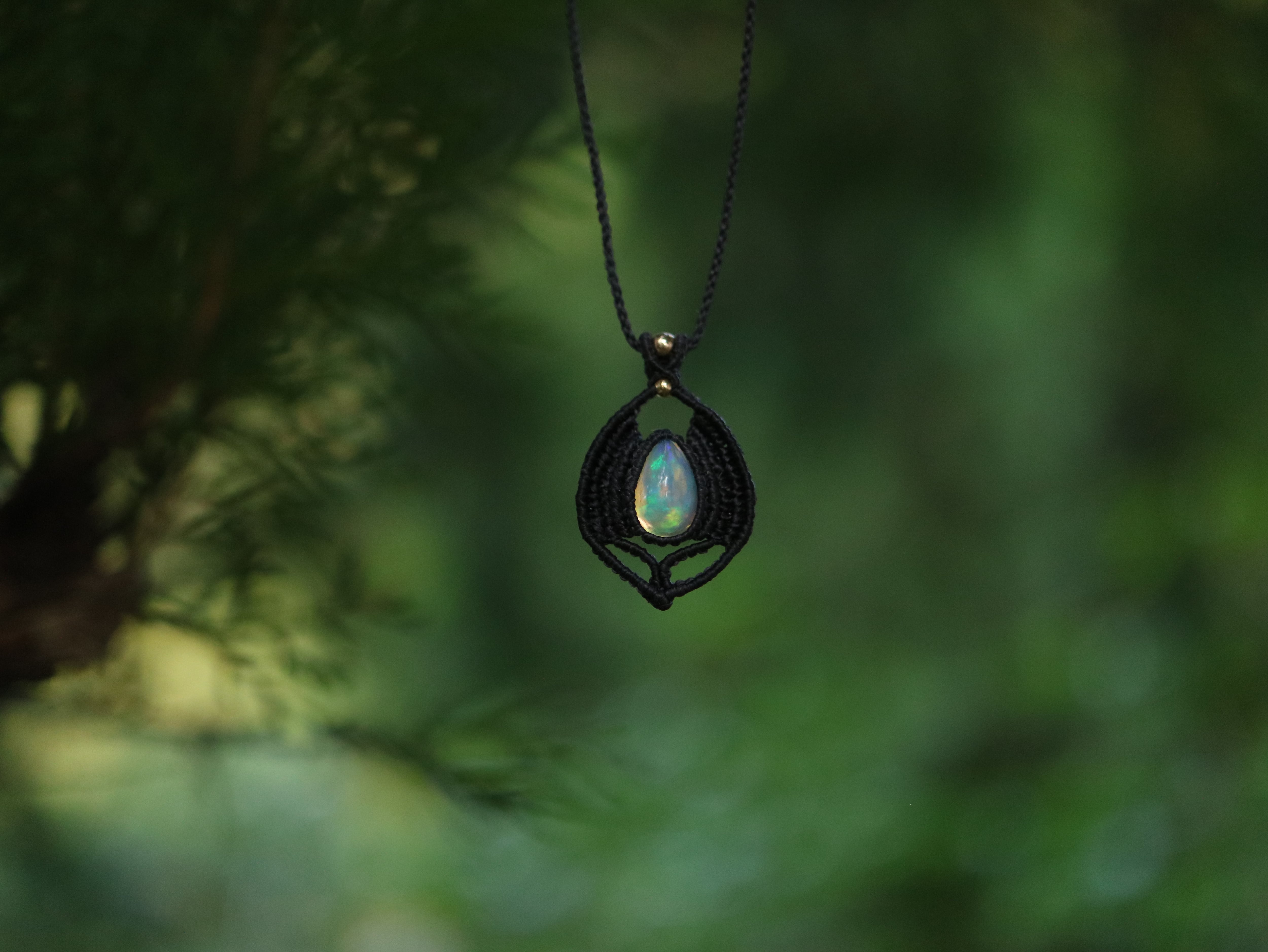 エチオピアンオパール ペンダント 雫 ダークネイビー