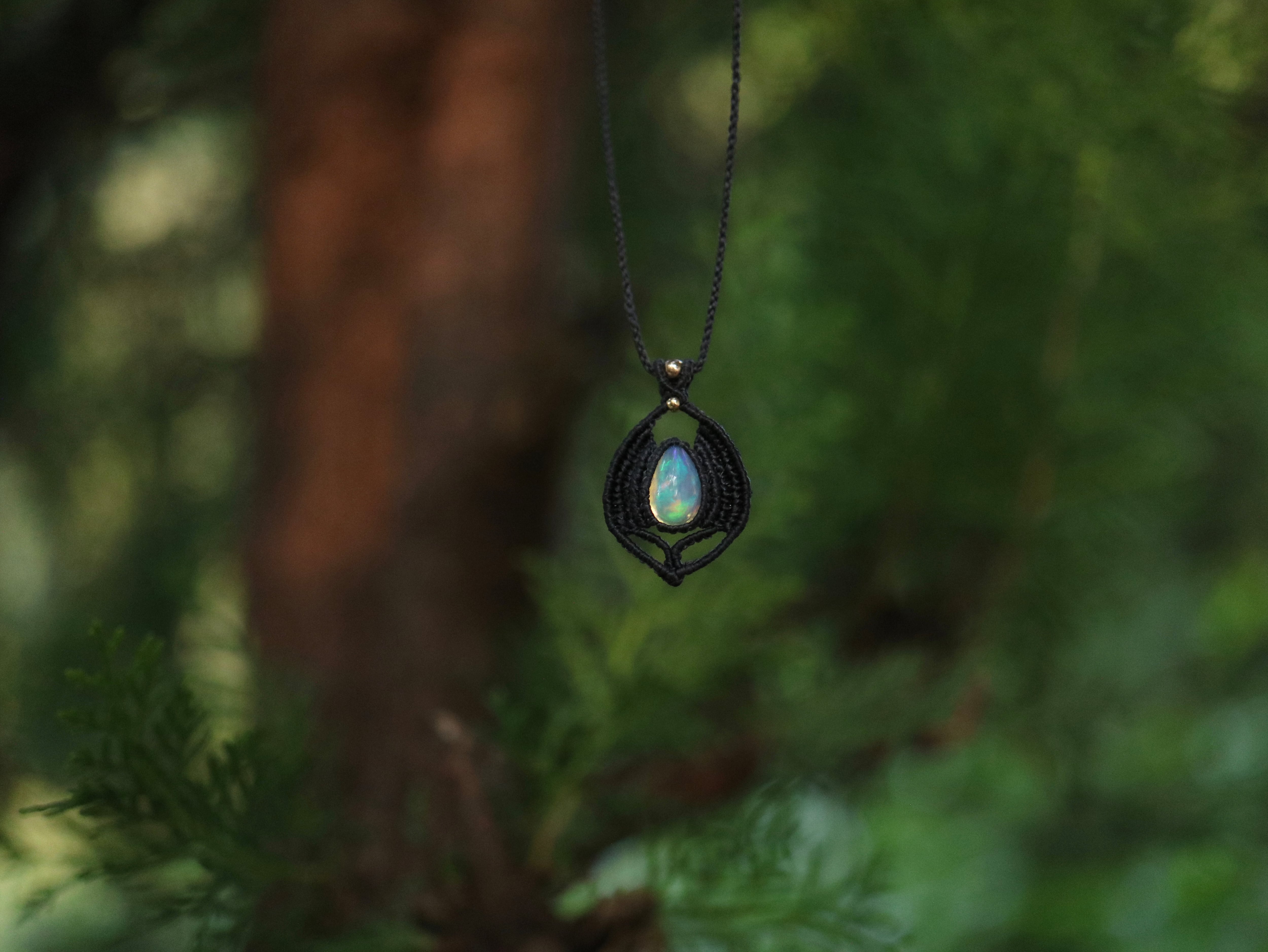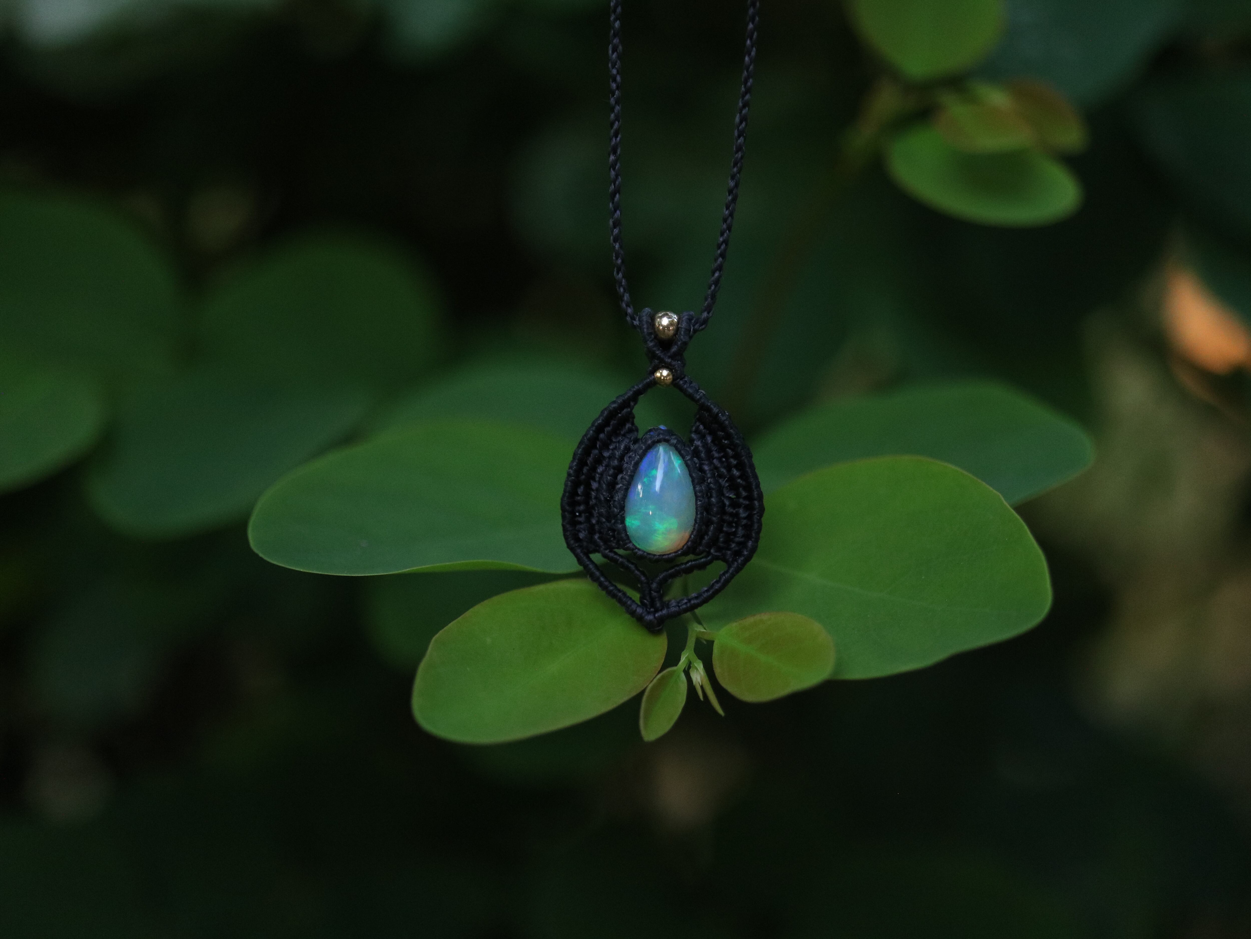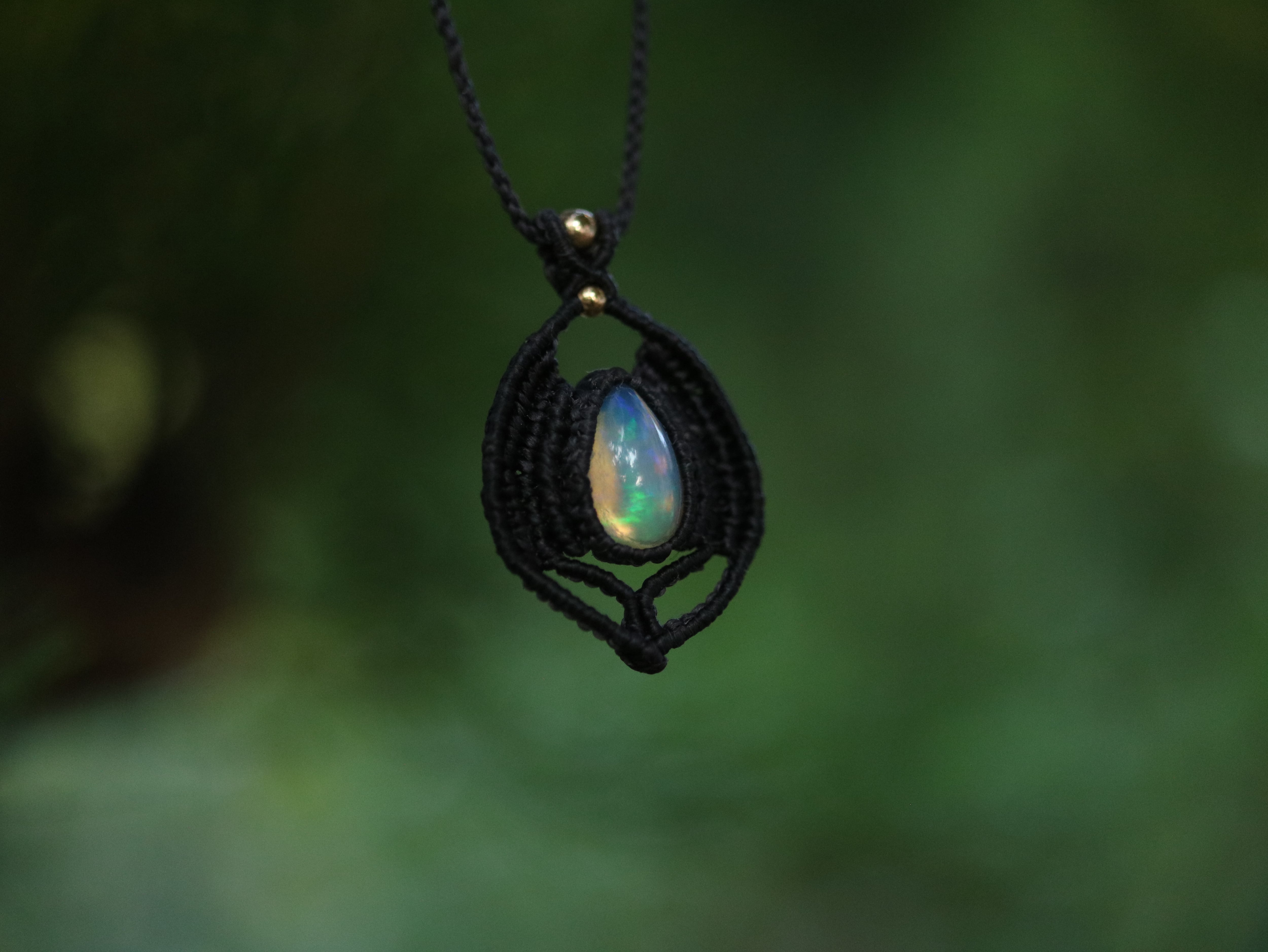 エチオピアンオパール ペンダント 雫 ダークネイビー