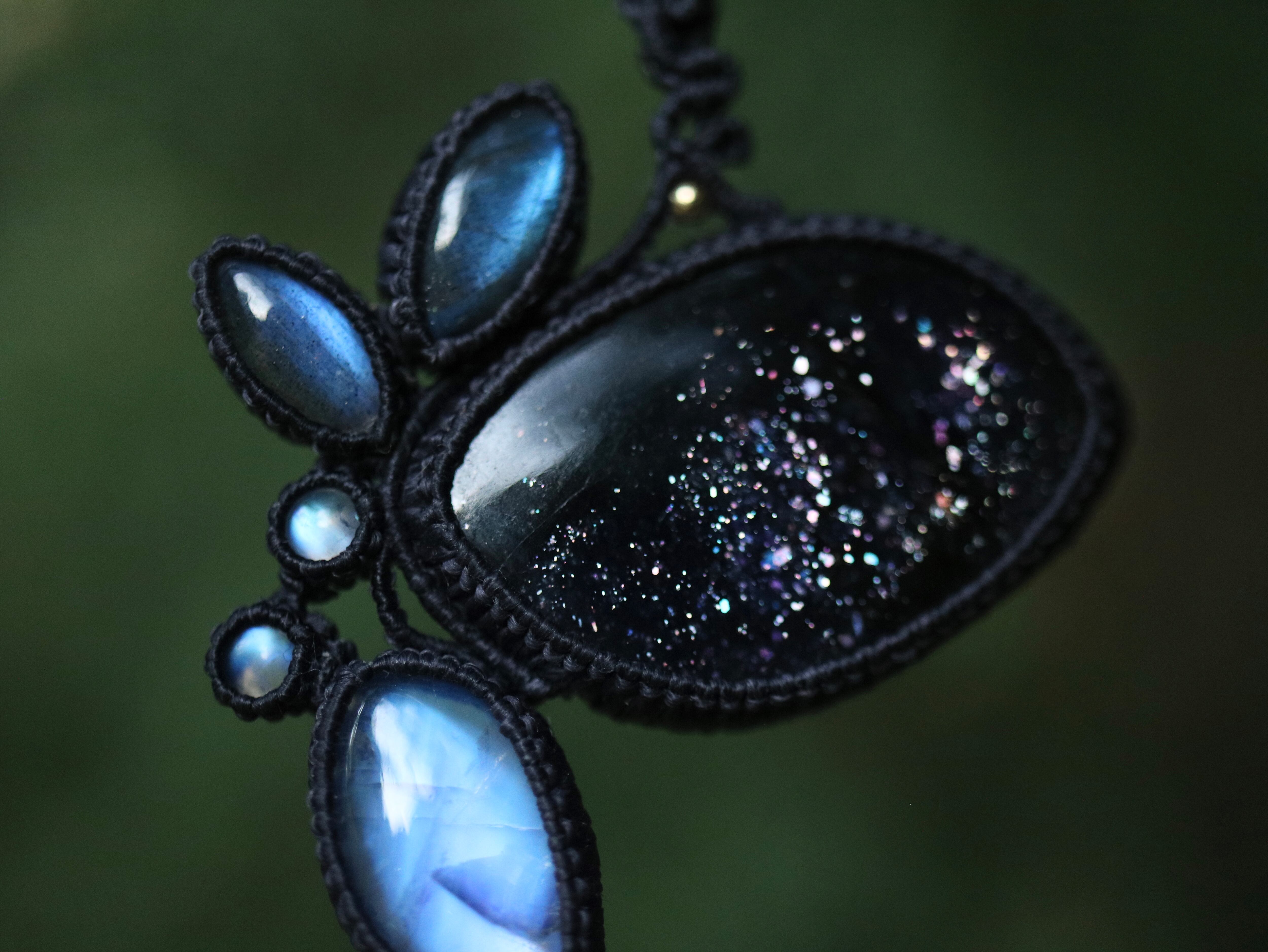 アイオライトサンストーンにはクラックが見られます、インクルージョンとして煌めく内包物などが混合しているため形成上どうしてもクラックが生じやすい天然のひとつです、ご理解頂いた上でご購入くださいませ。