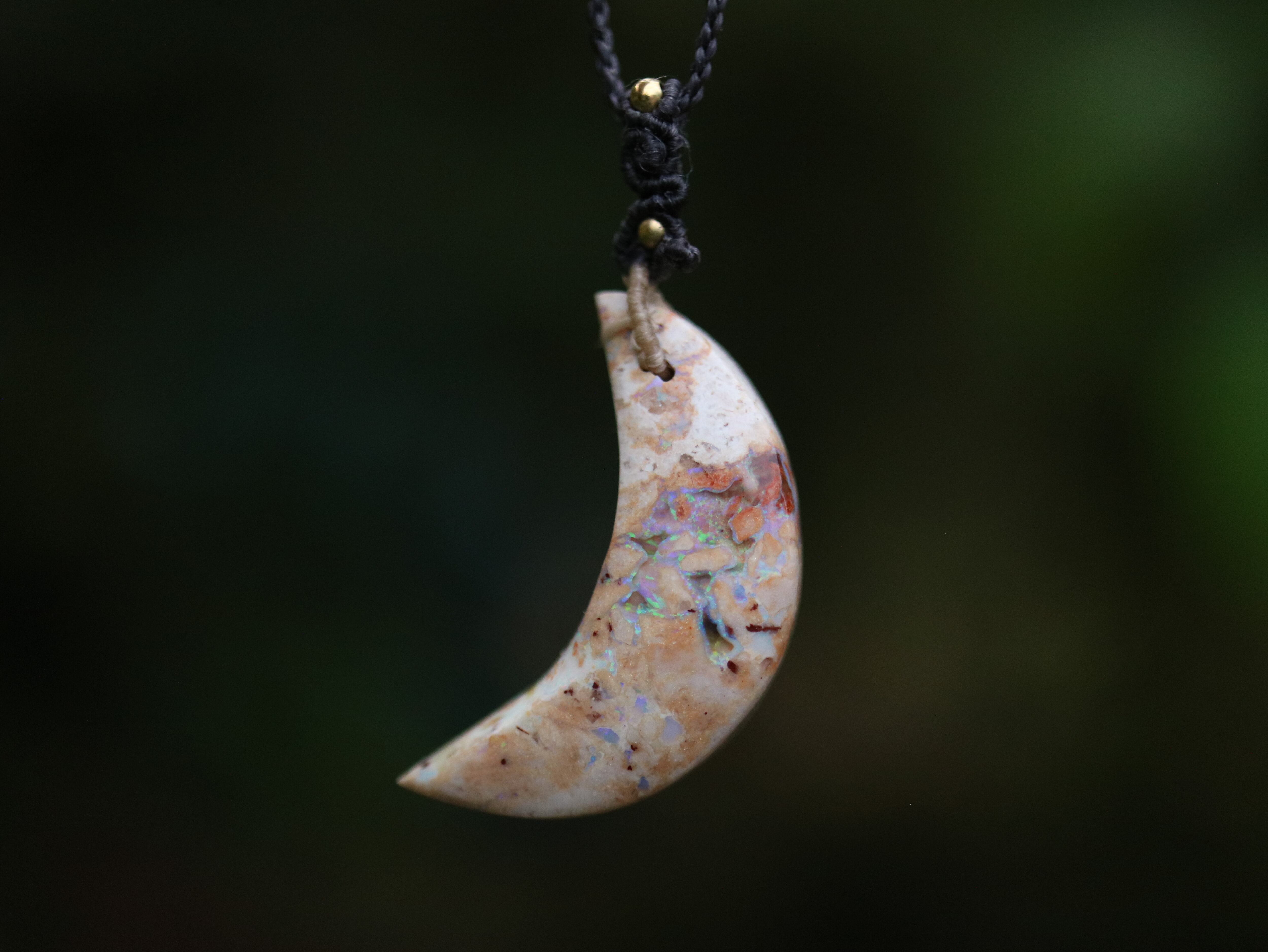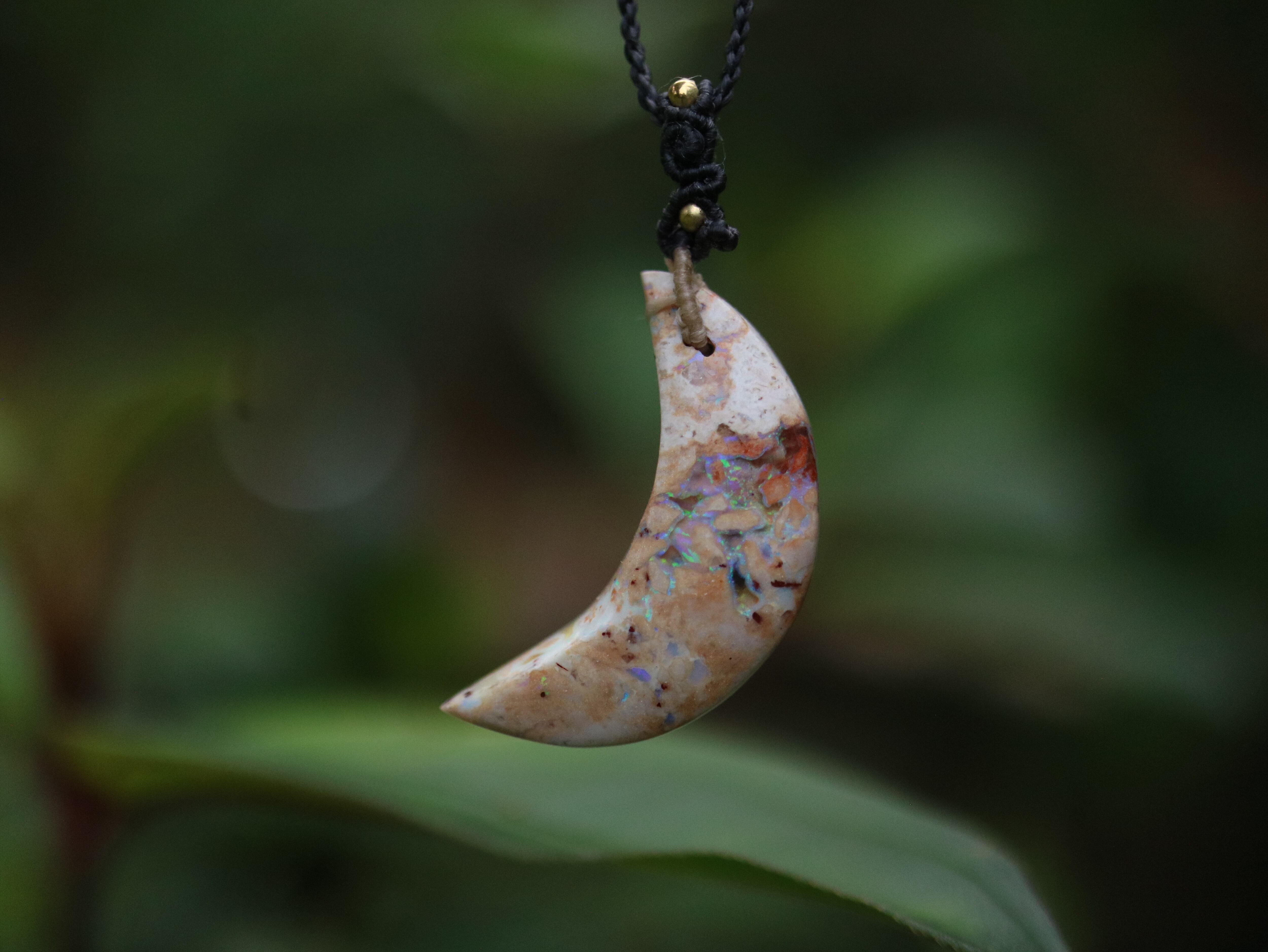 ※ 三日月型のカンテラオパールは湿度などに関係なく、透明感と美しい遊色をいつも確認できるオパールの種類となります。