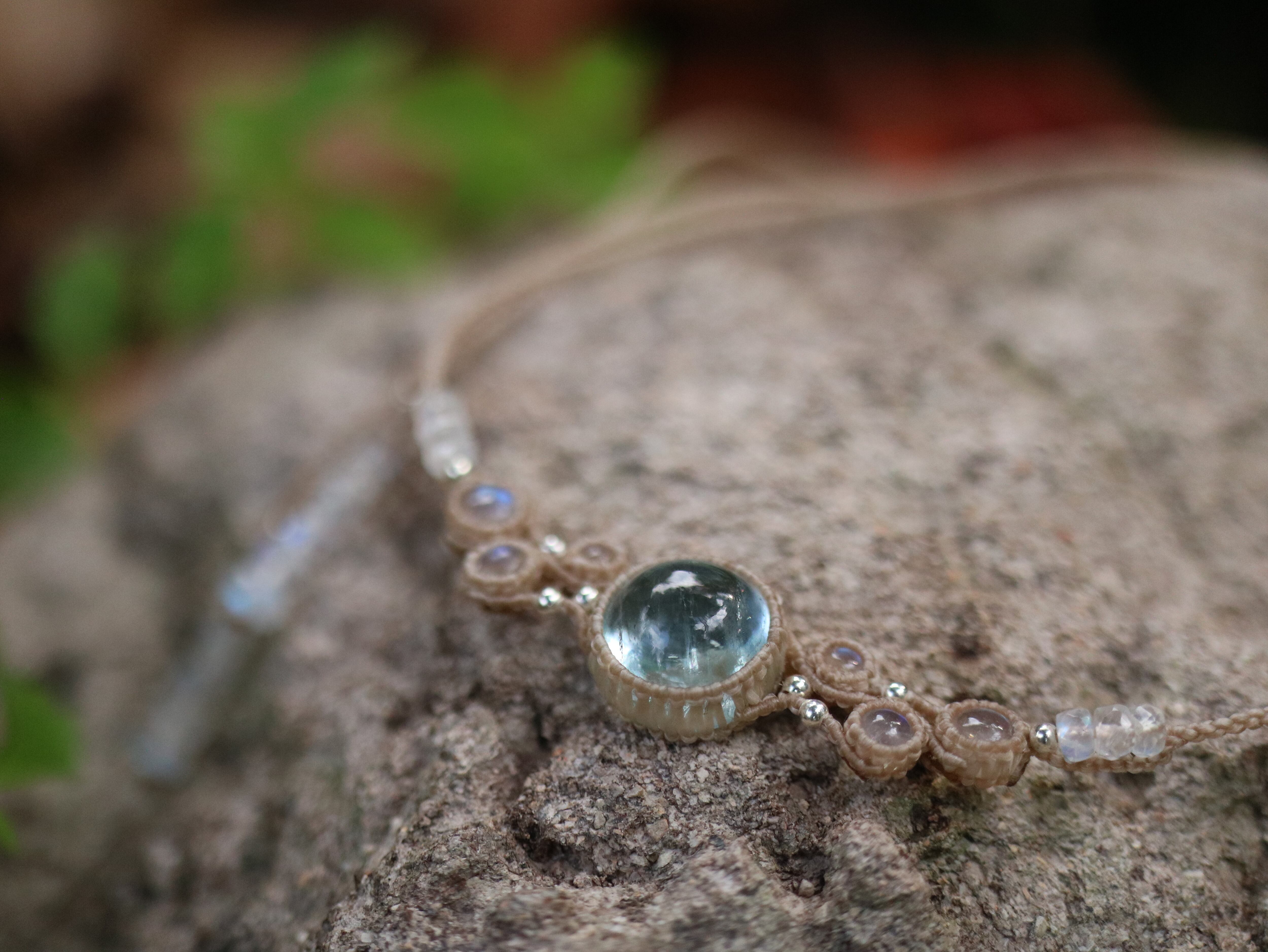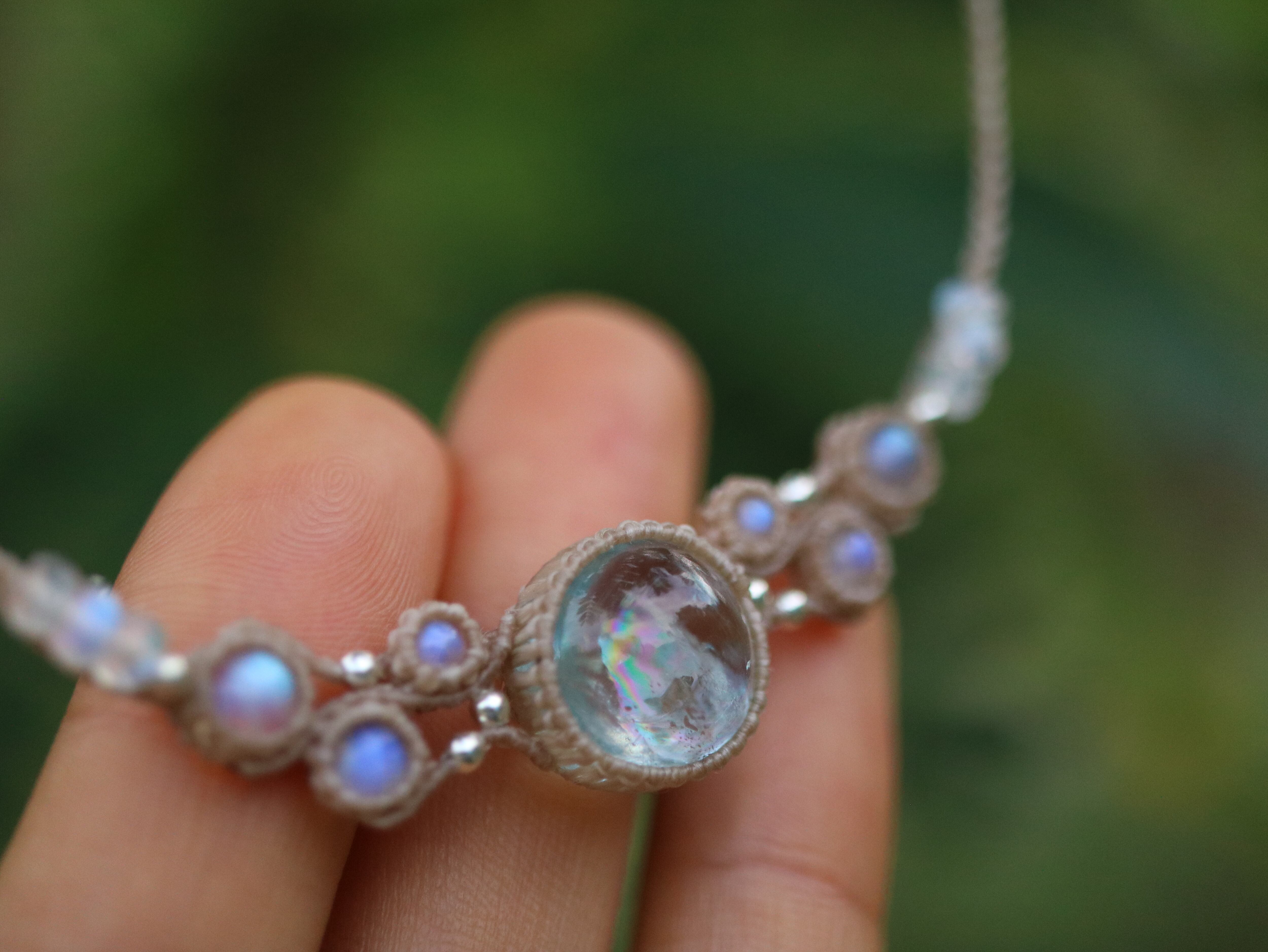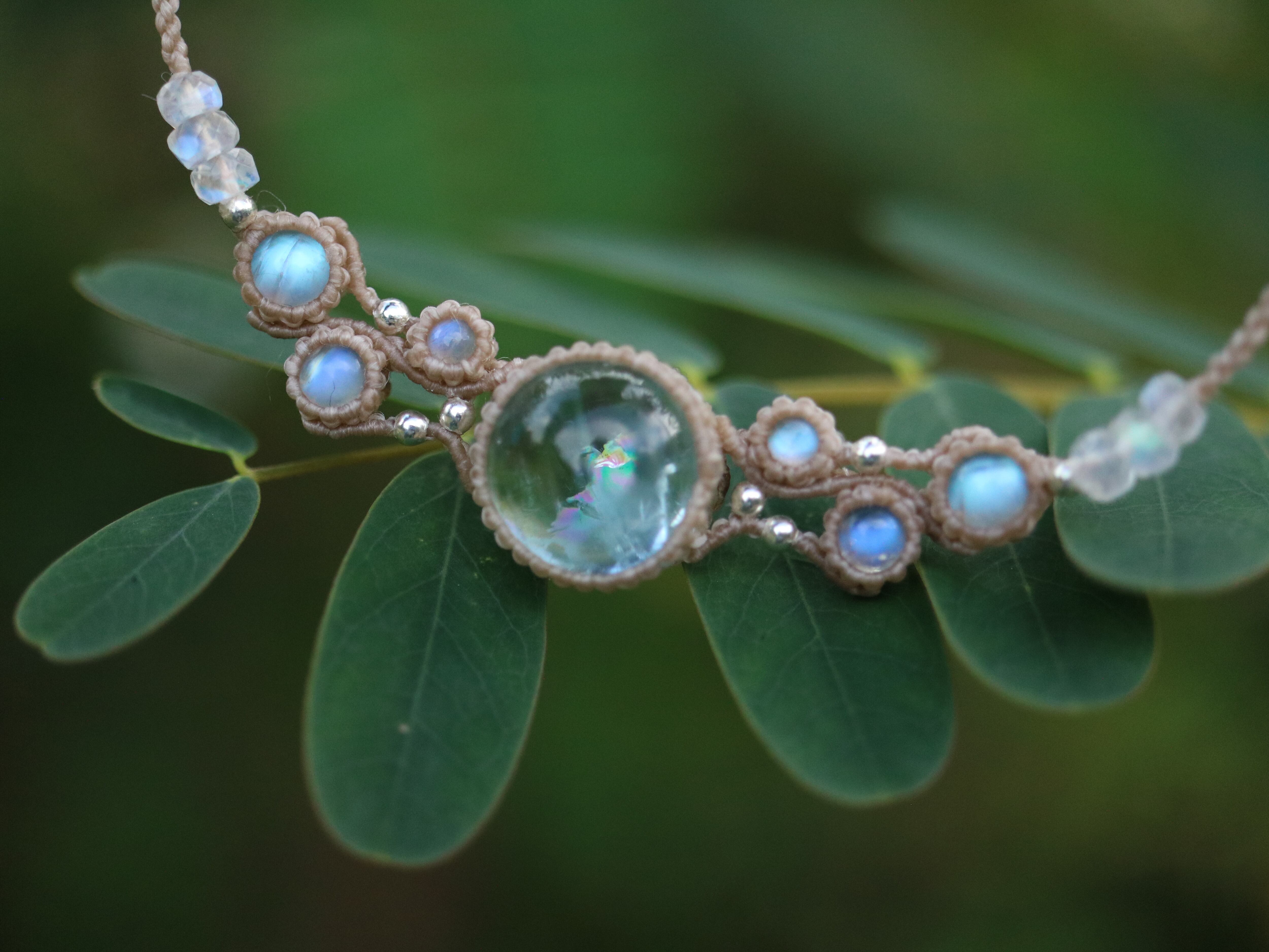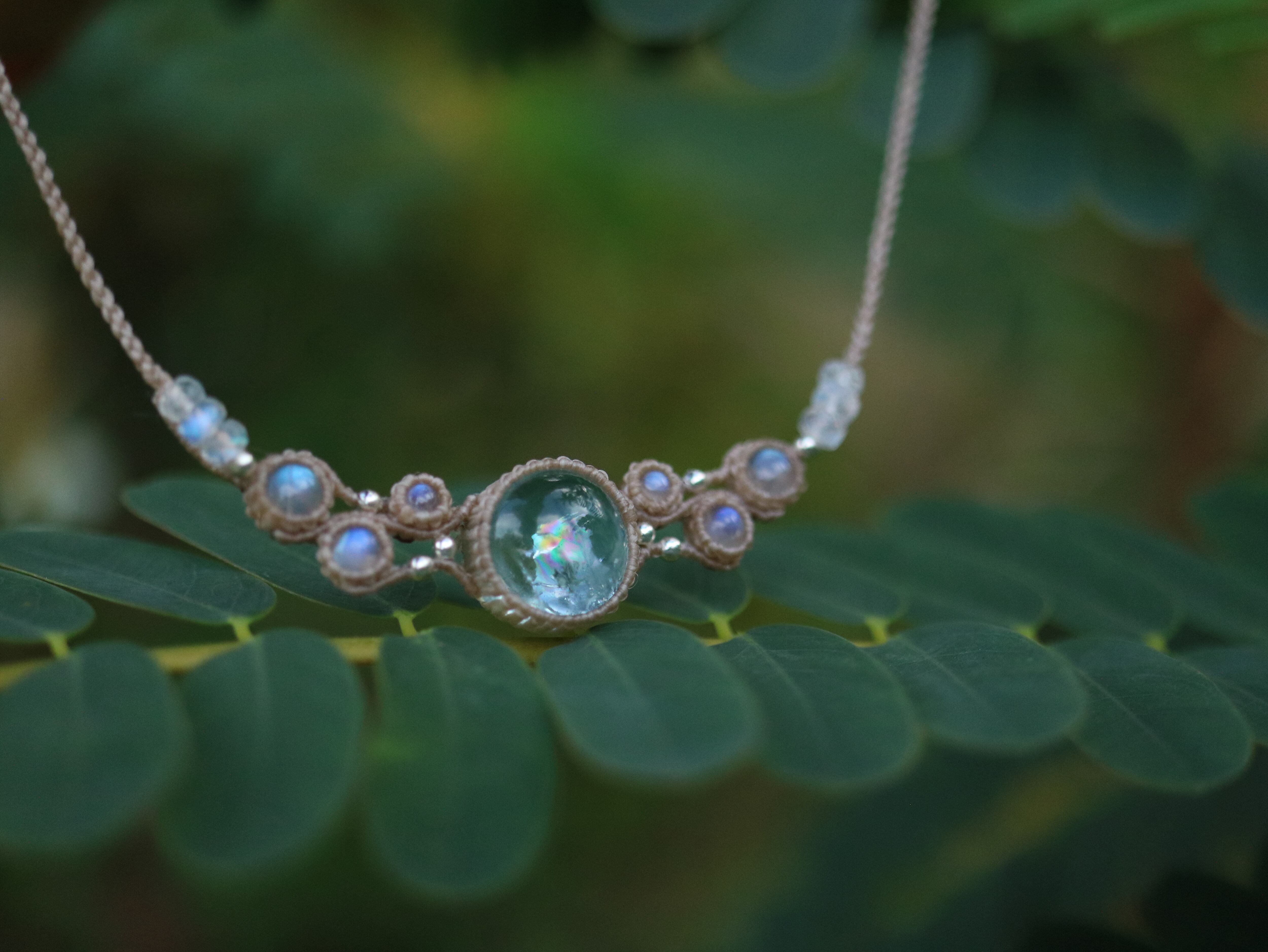 虹入りアクアマリン × レインボームーンストーン ネックレス