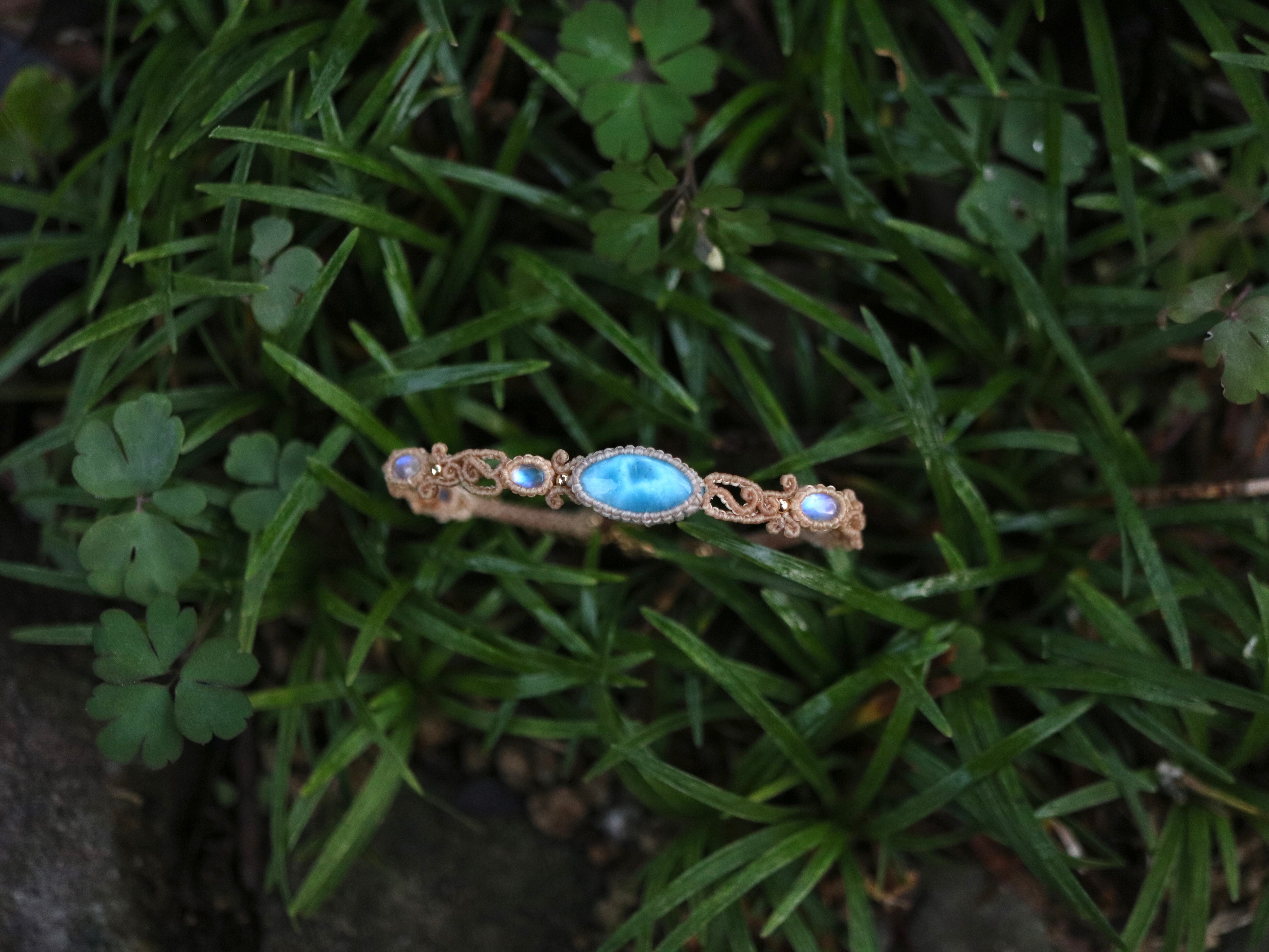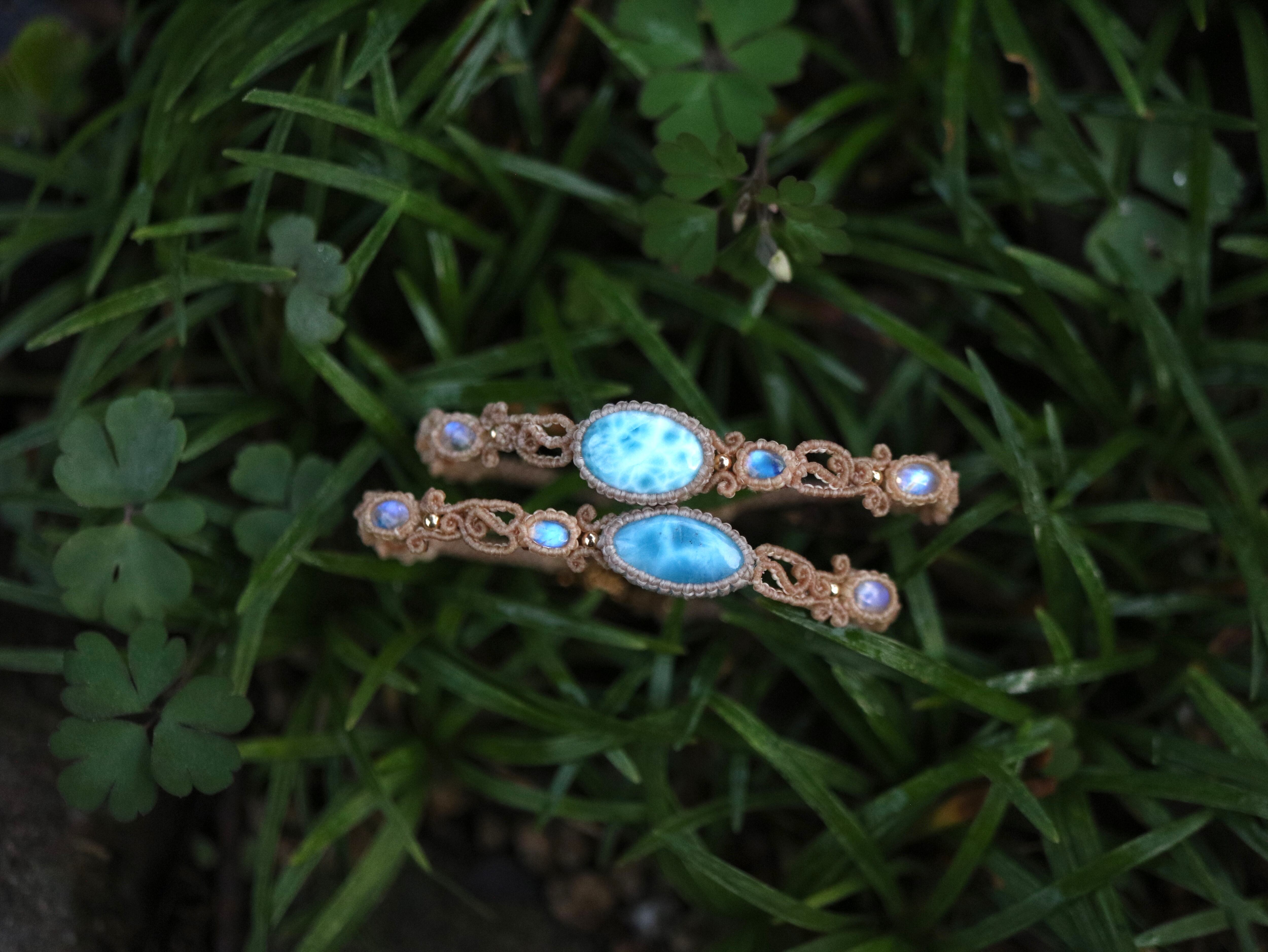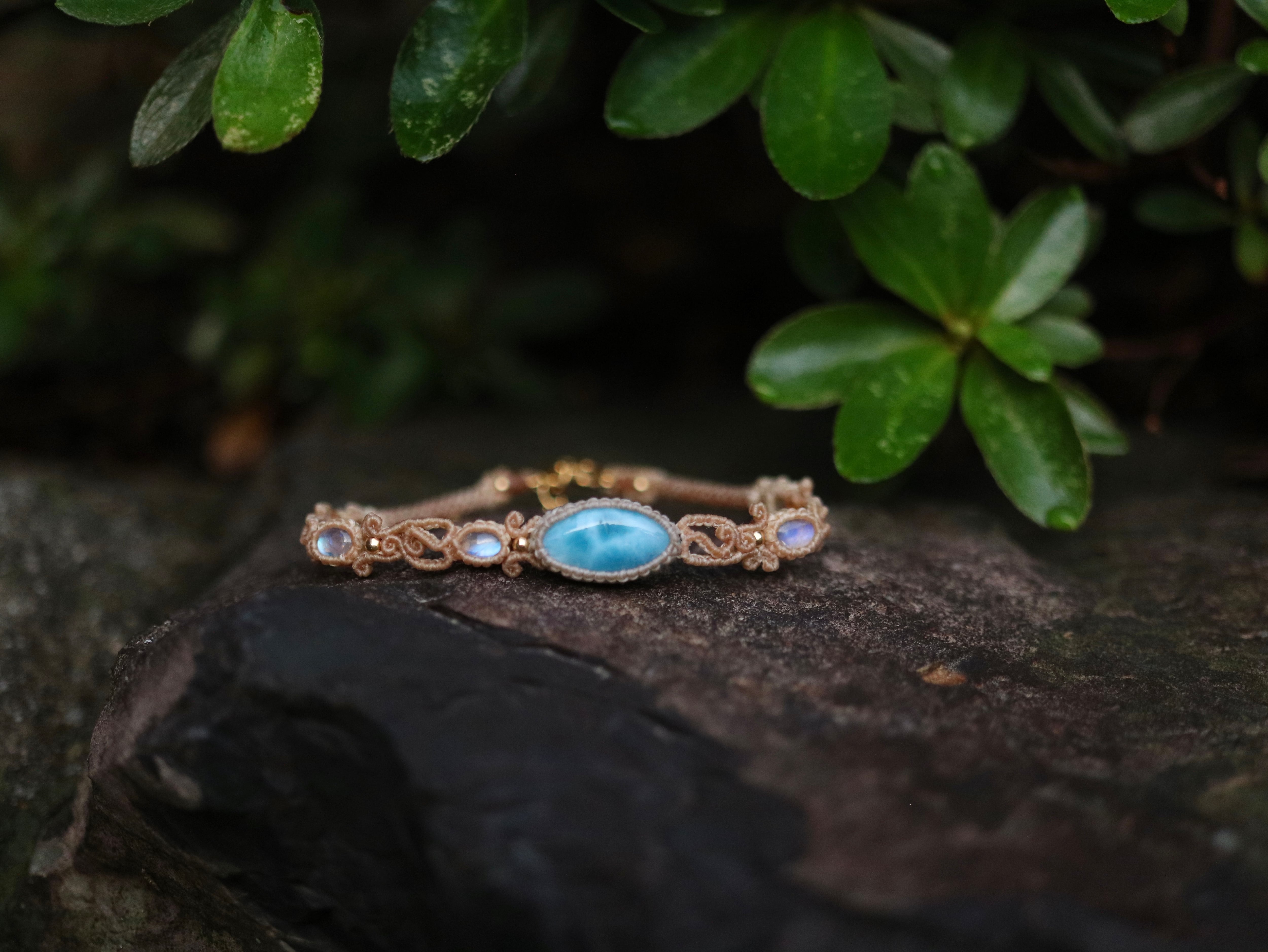 ラリマー ( マーキス型 ) × ムーンストーン ブレスレット