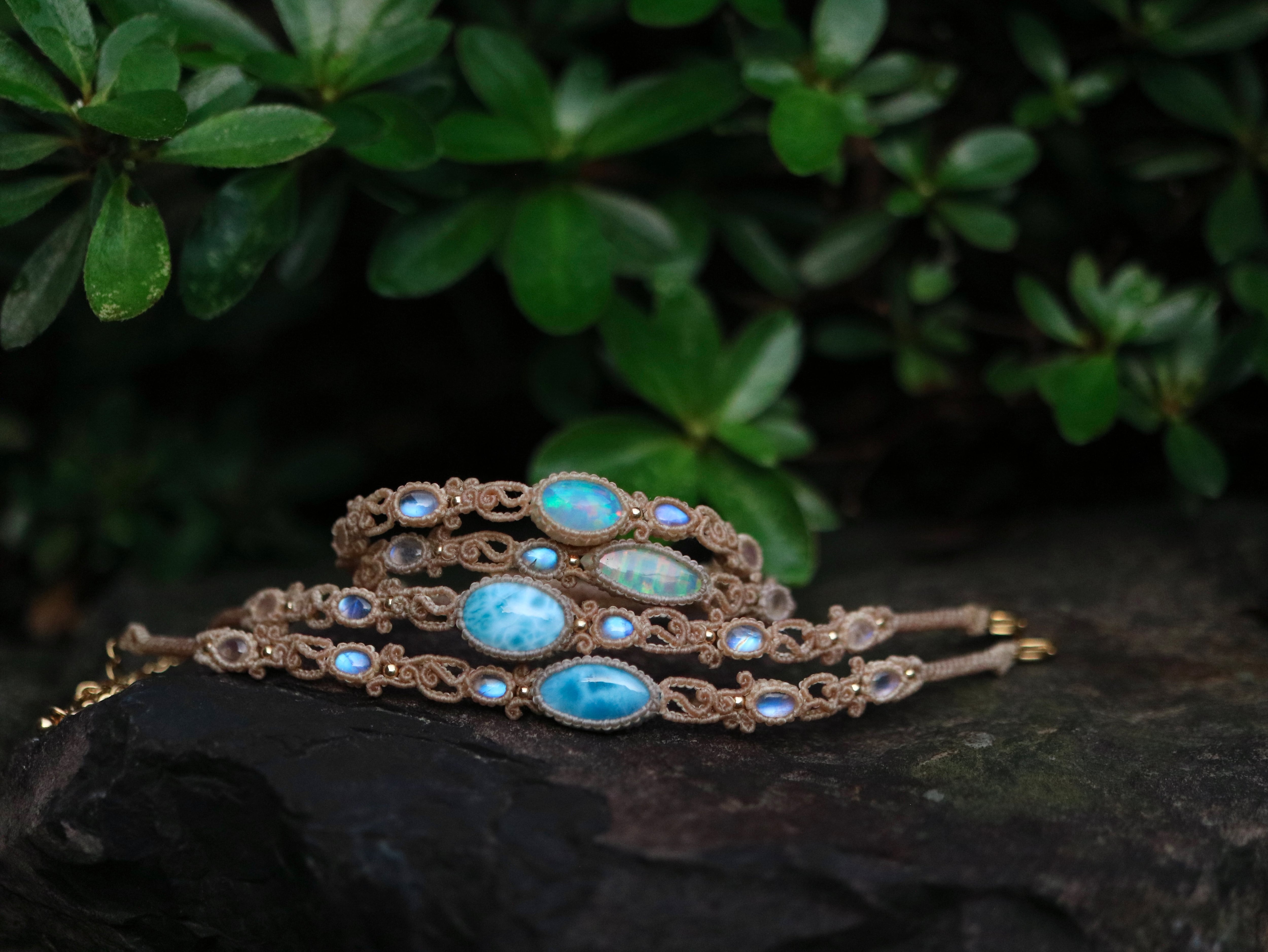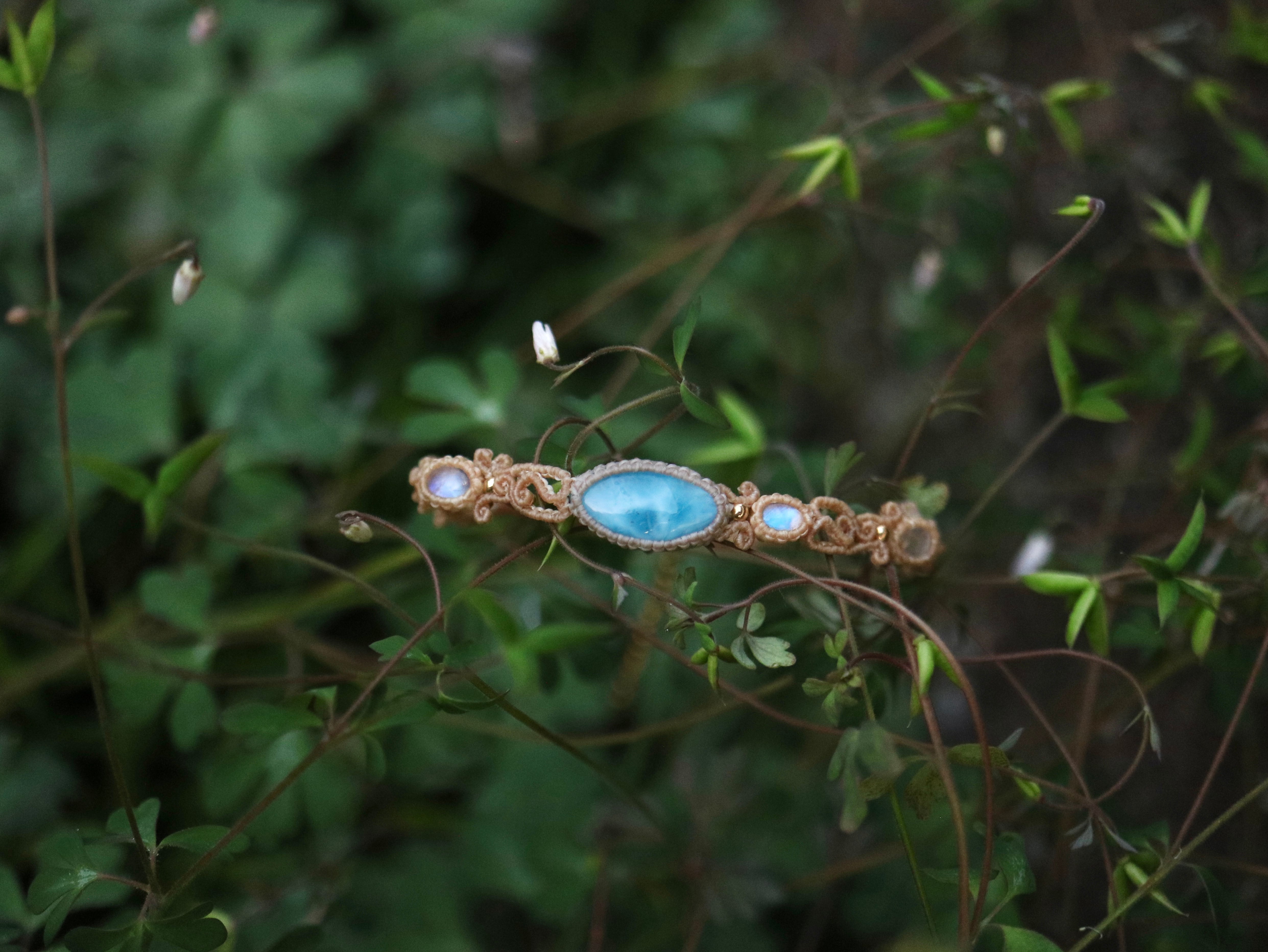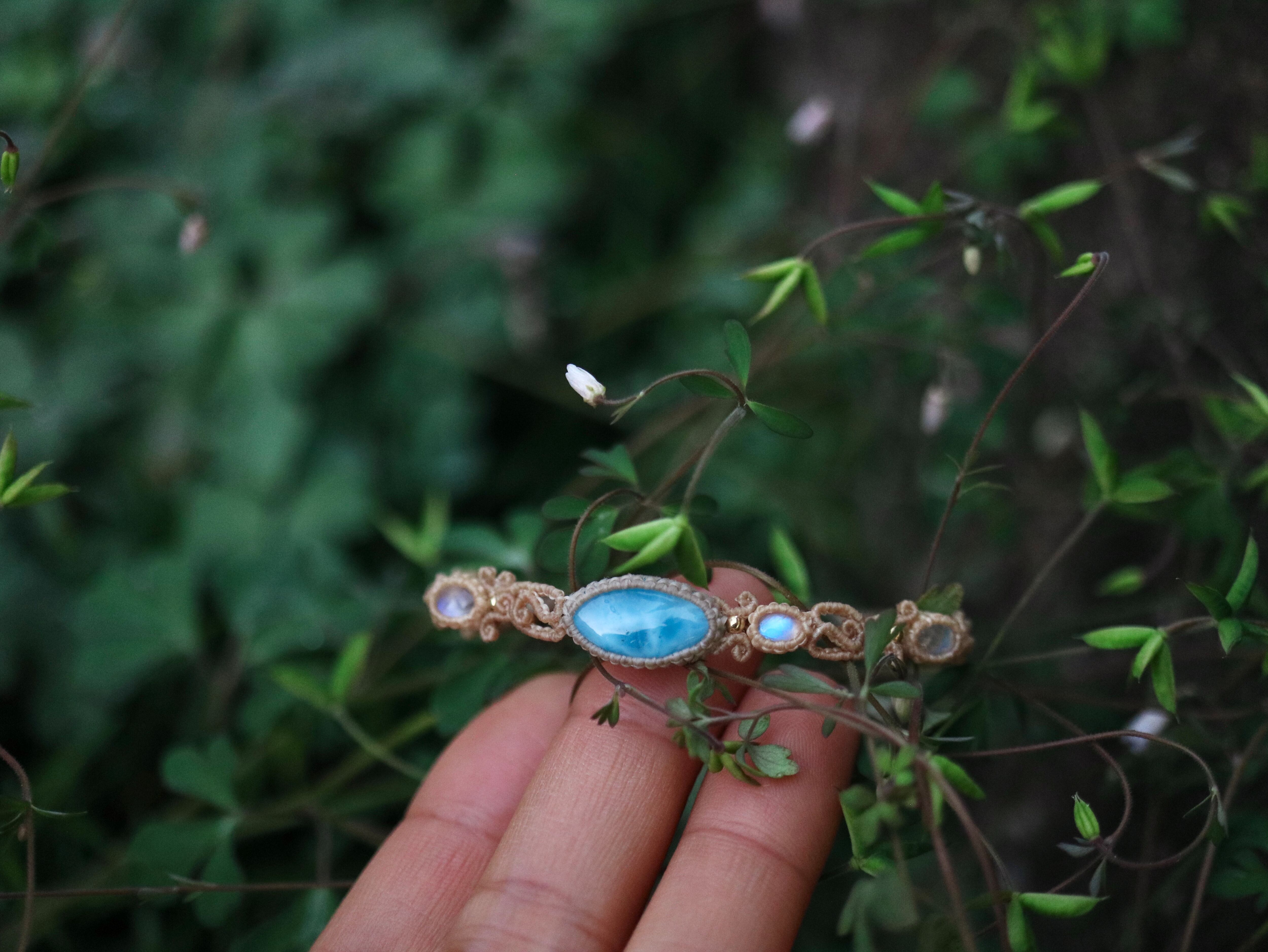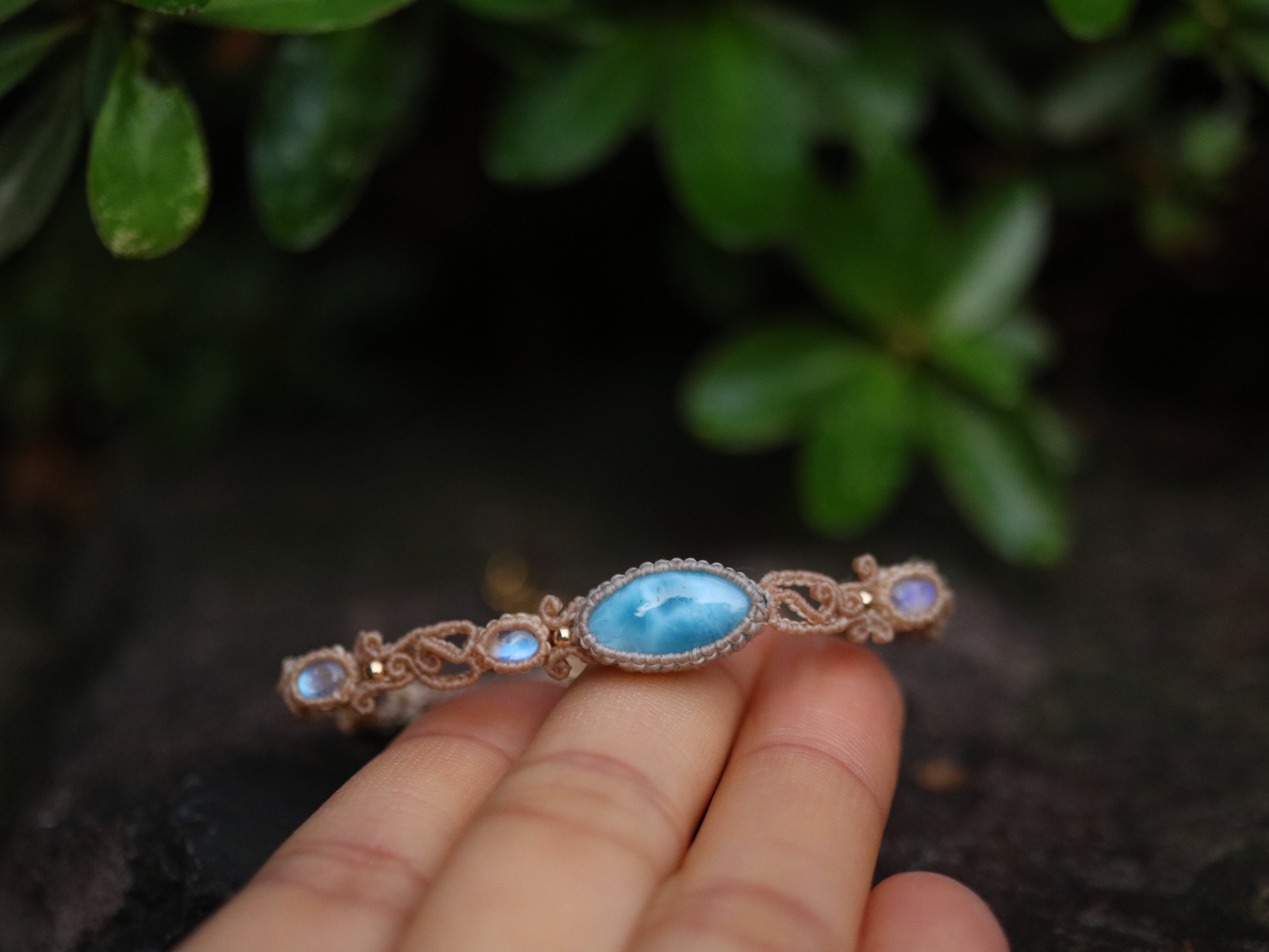 ラリマー ( マーキス型 ) × ムーンストーン ブレスレット