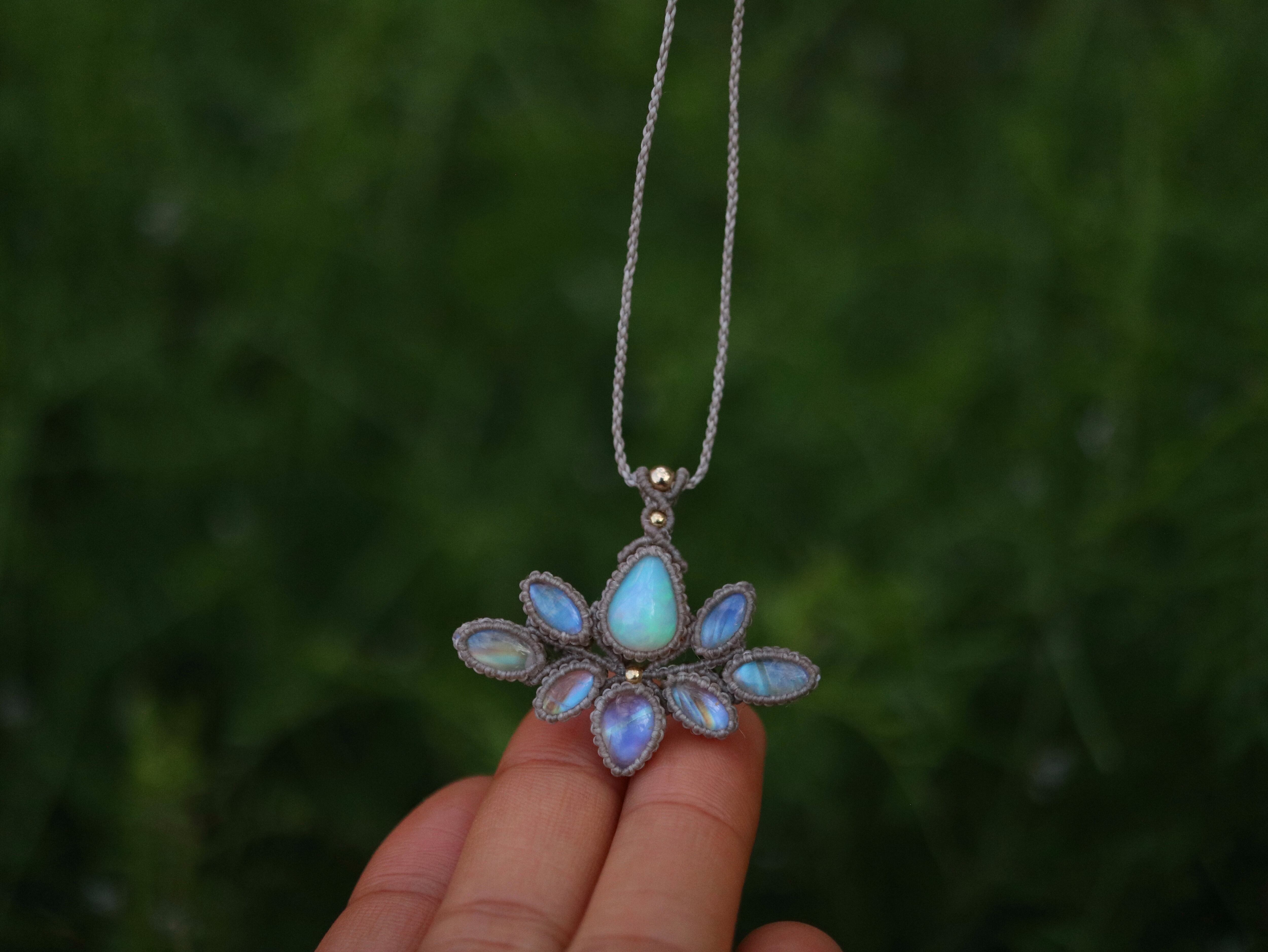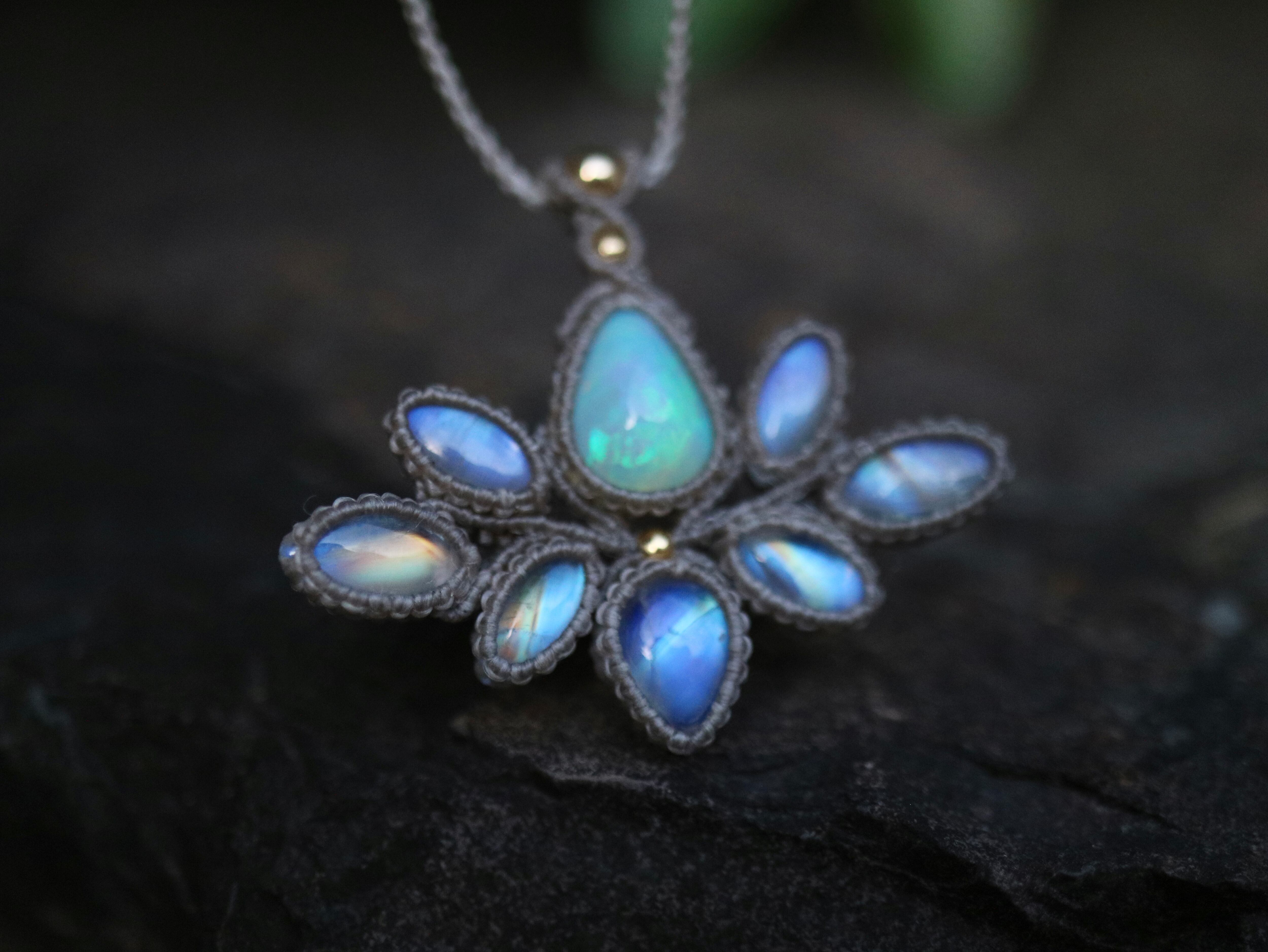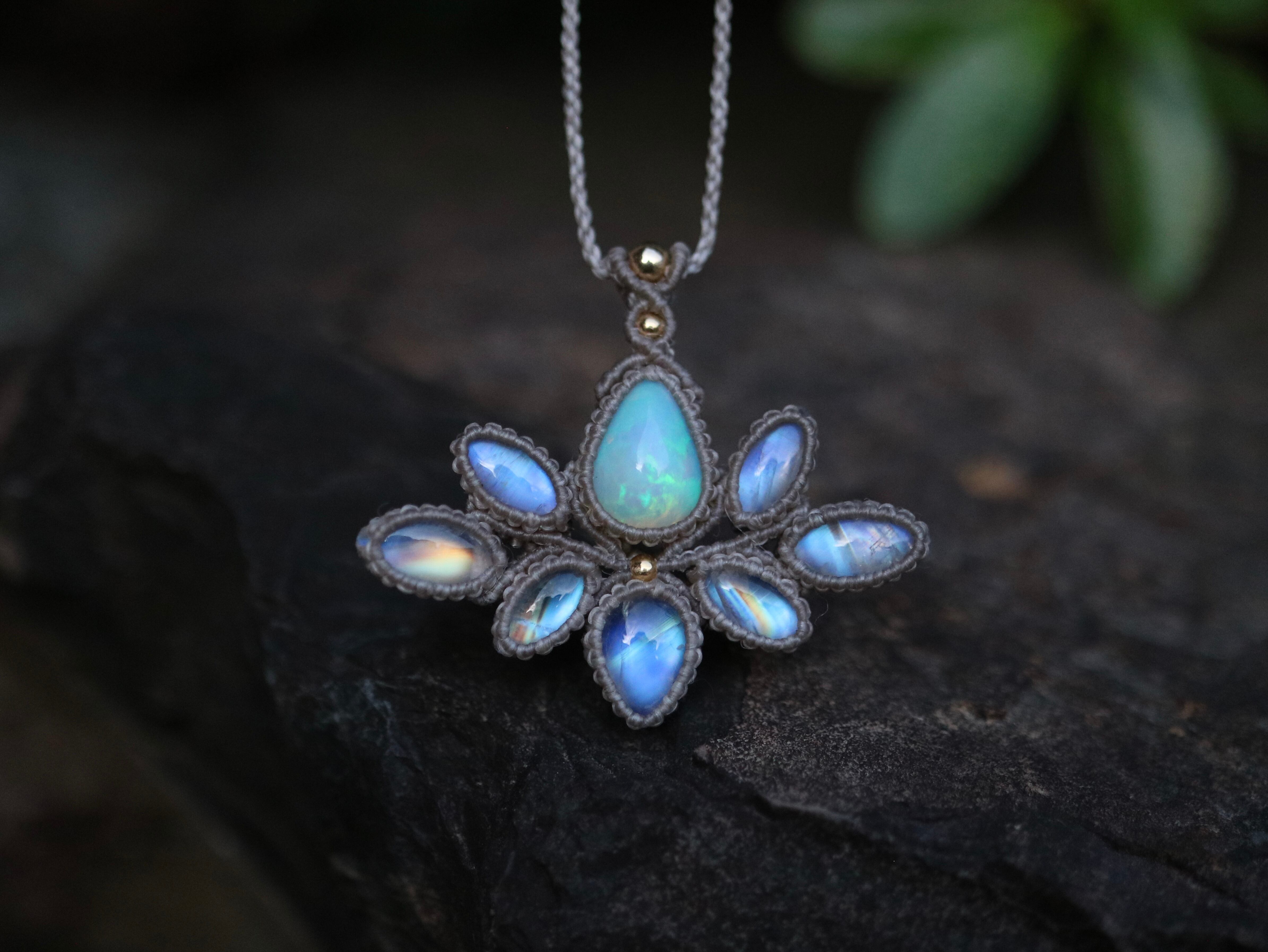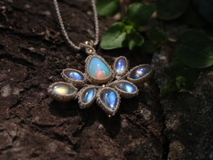 エチオピアンオパール × レインボームーンストーン 蓮の花 ペンダント ( Ⅰ )