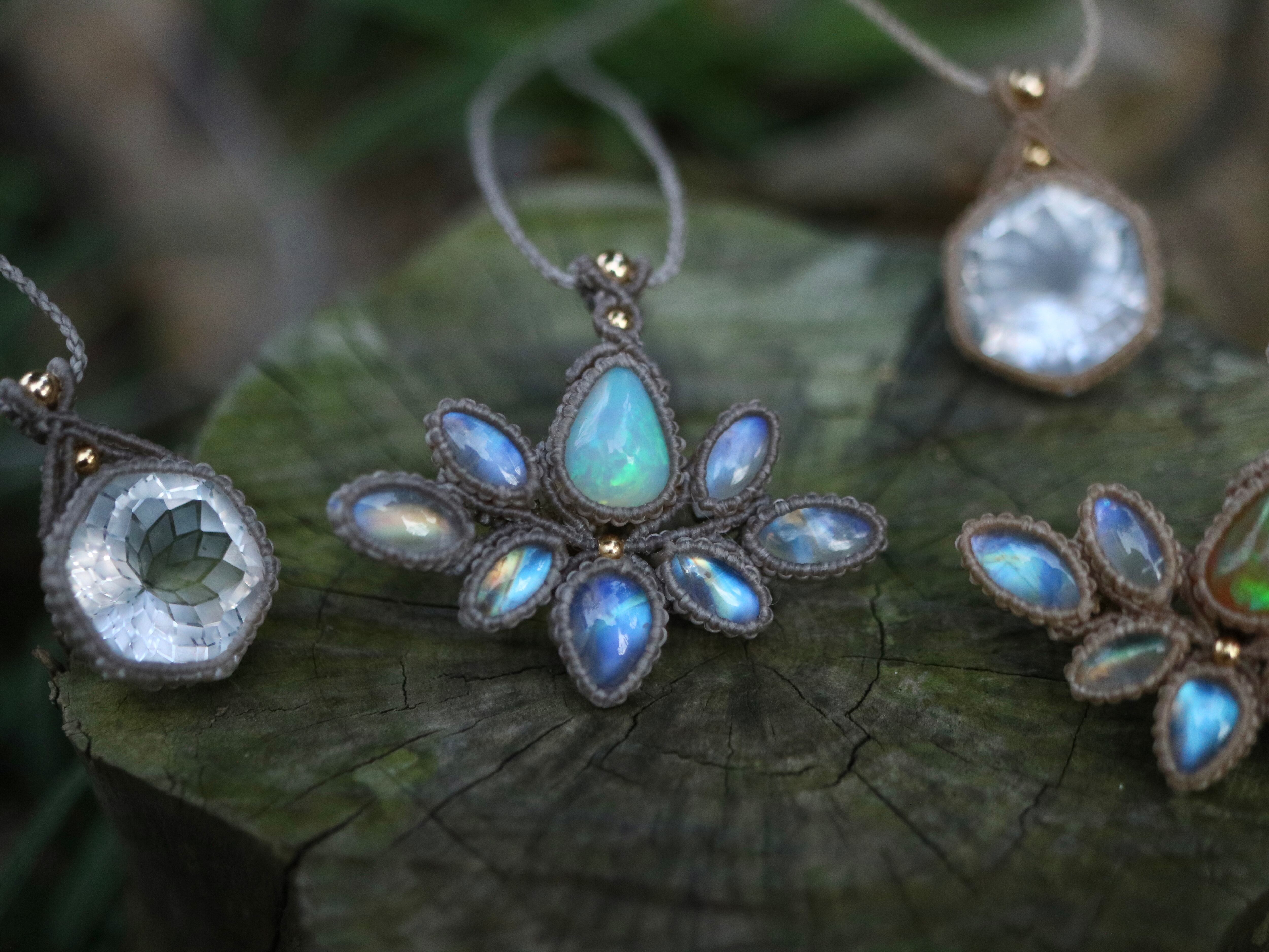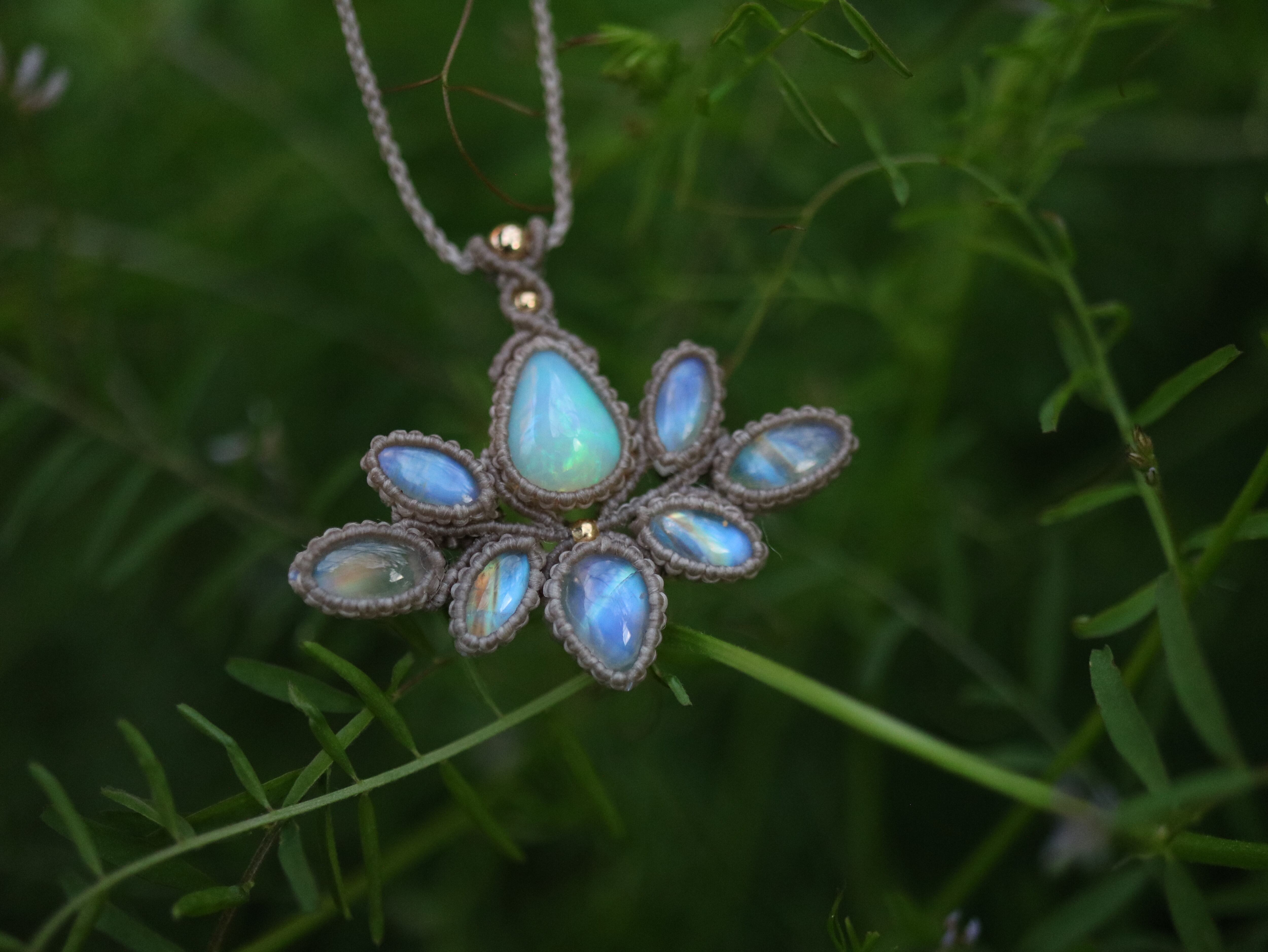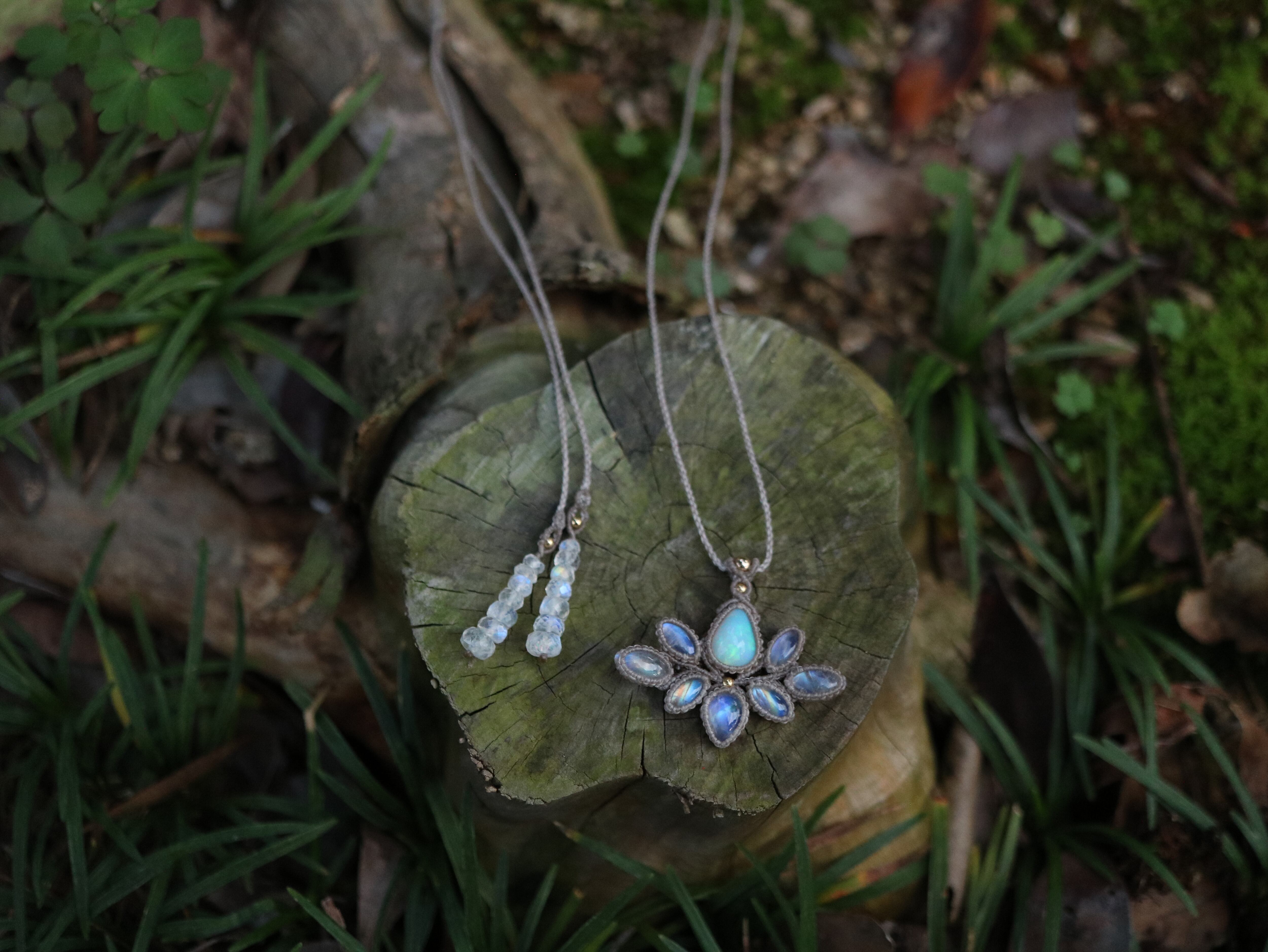 エチオピアンオパール × レインボームーンストーン 蓮の花 ペンダント ( Ⅰ )