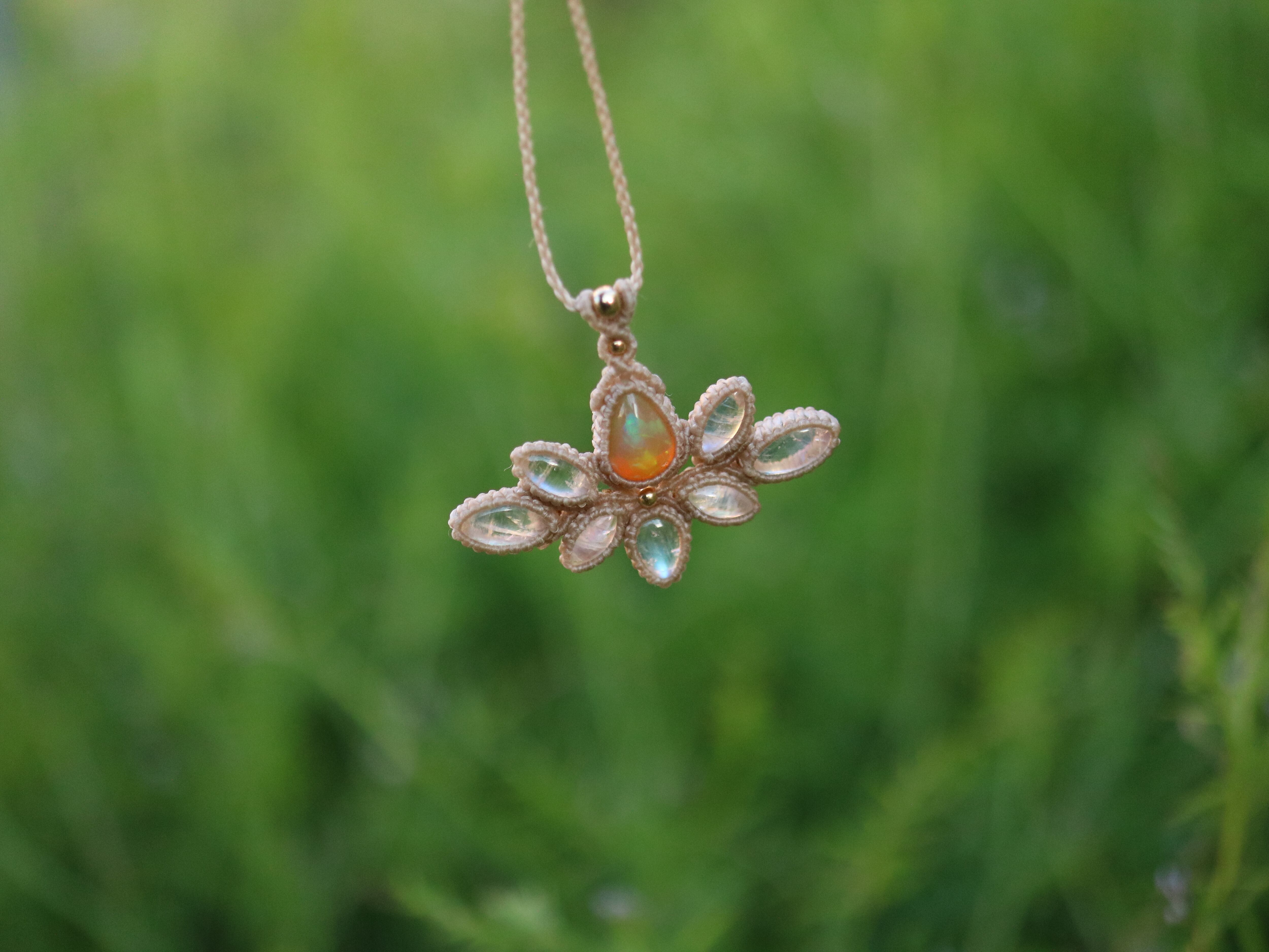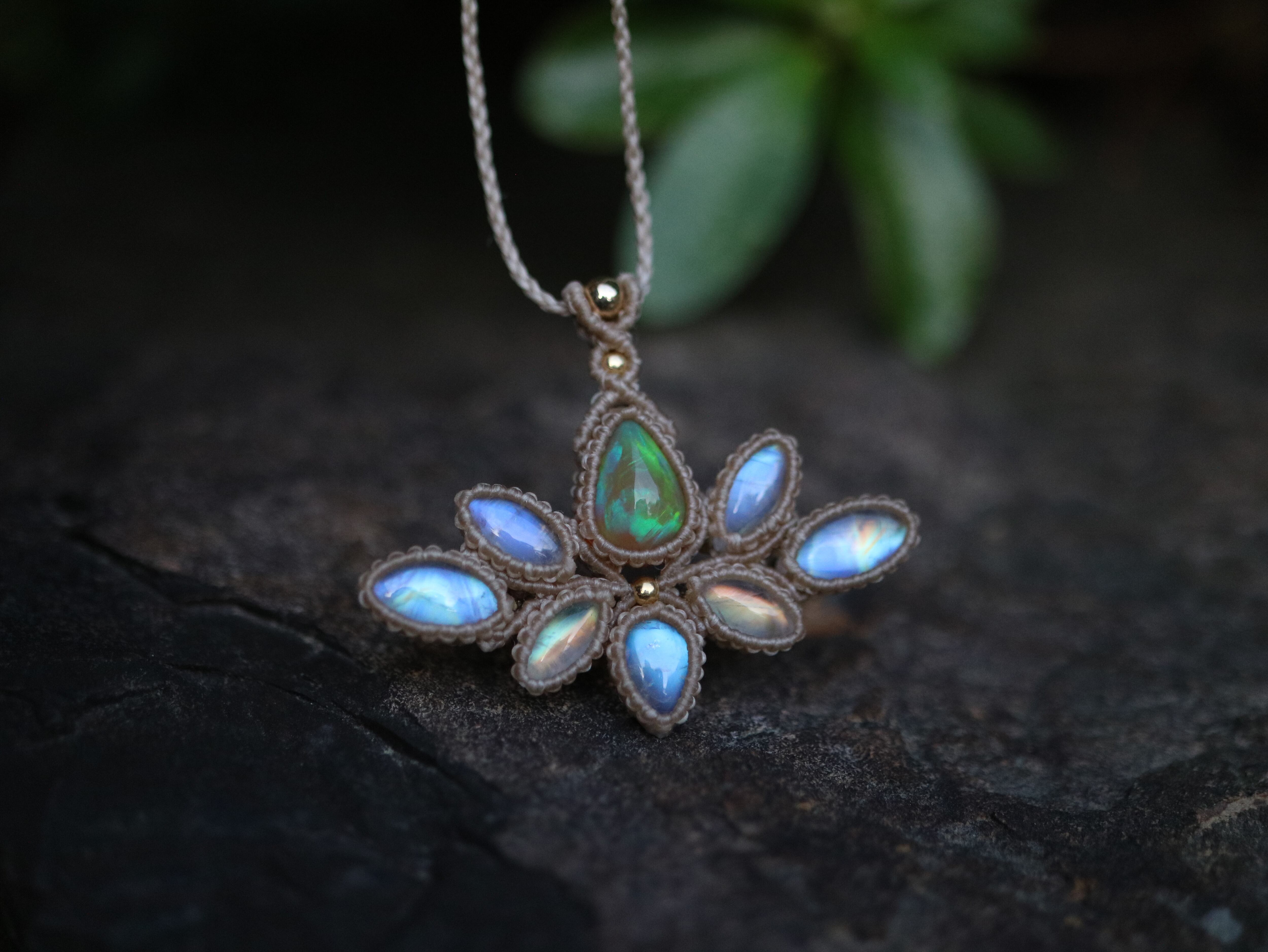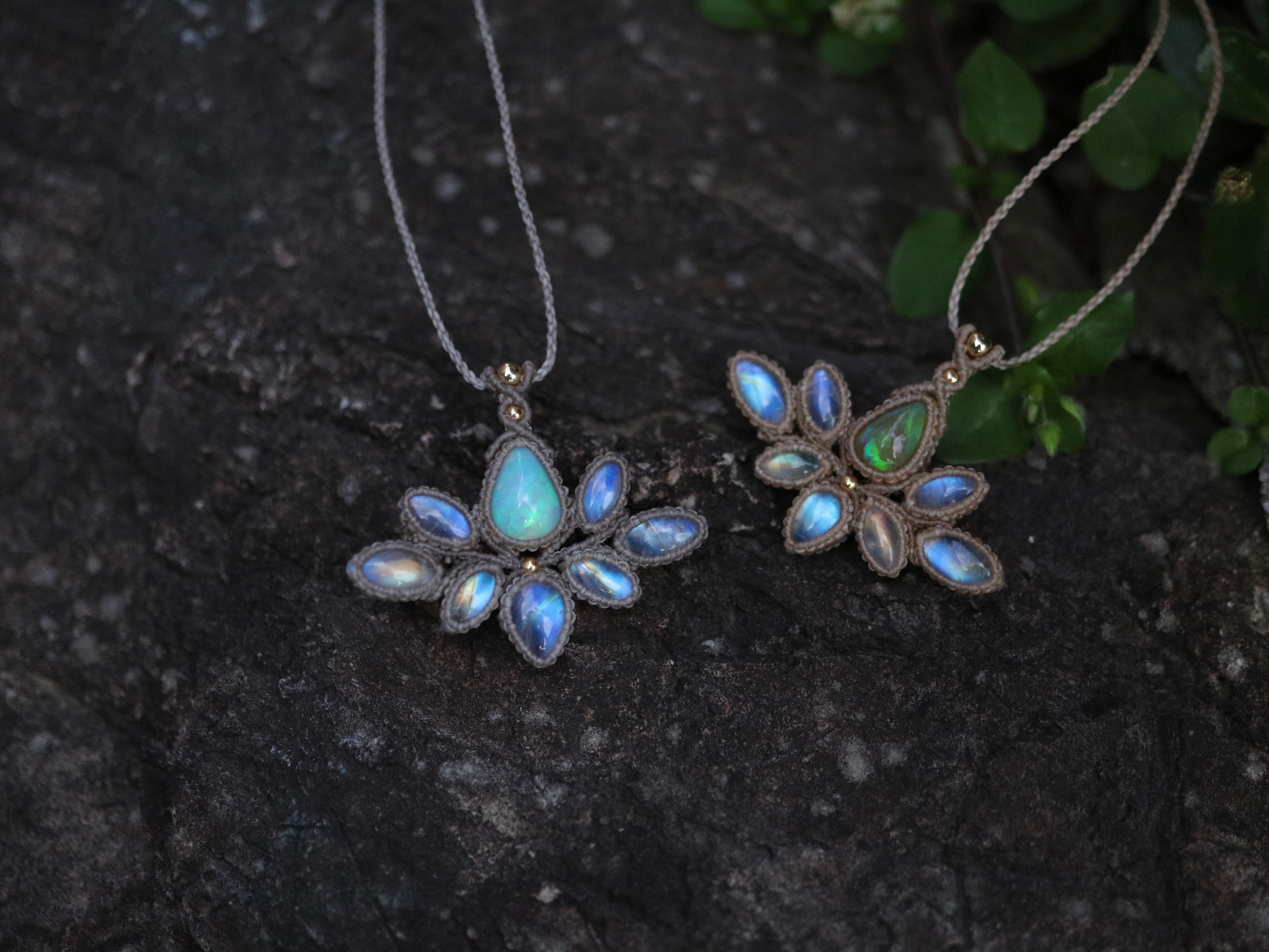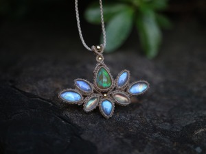 エチオピアンオパール × レインボームーンストーン 蓮の花 ペンダント ( Ⅱ )