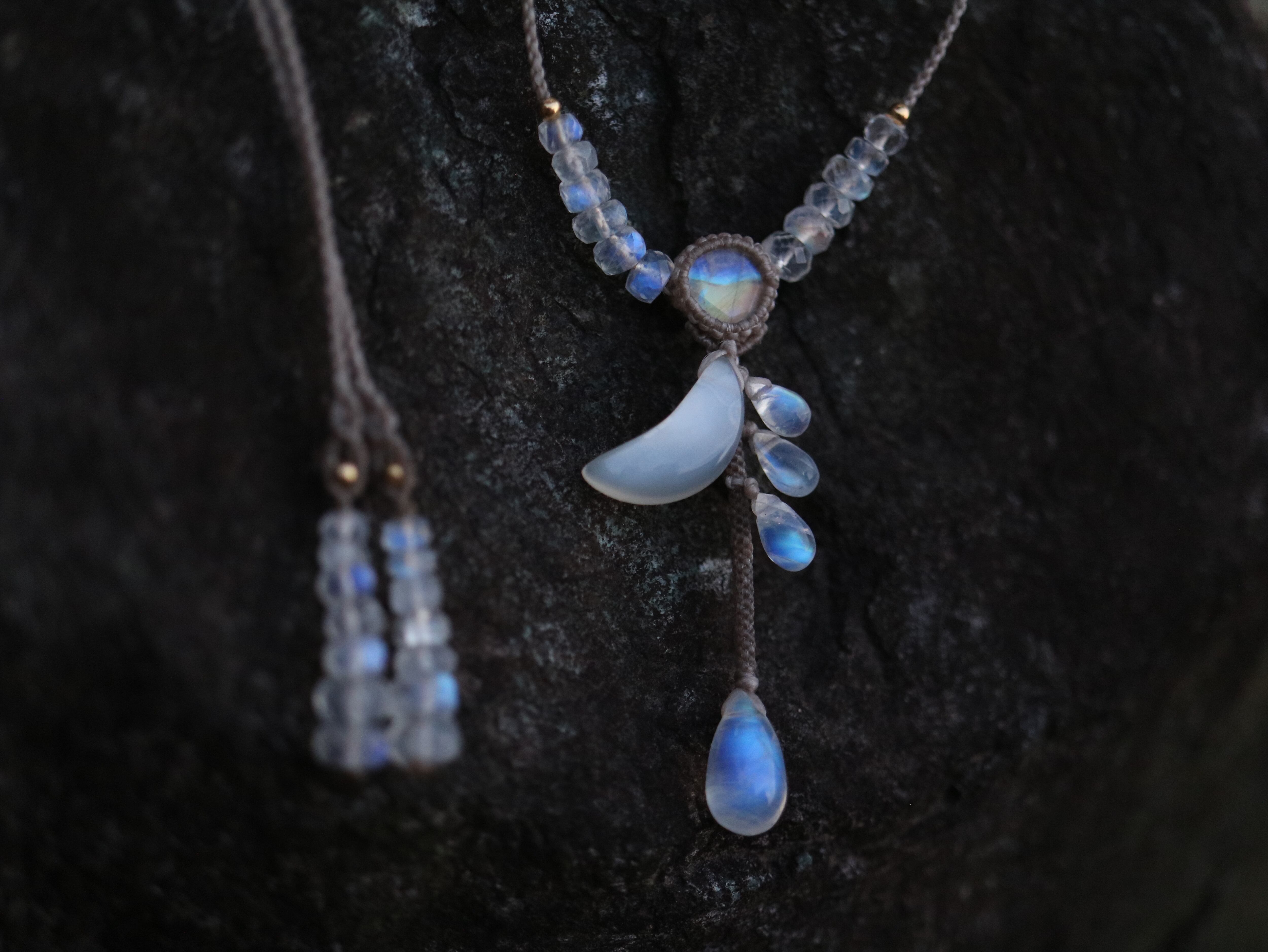 ・ムーンストーンのシラーは光の環境により見え方、強弱などに変化があり、ある一定の角度によりシラーは輝きます