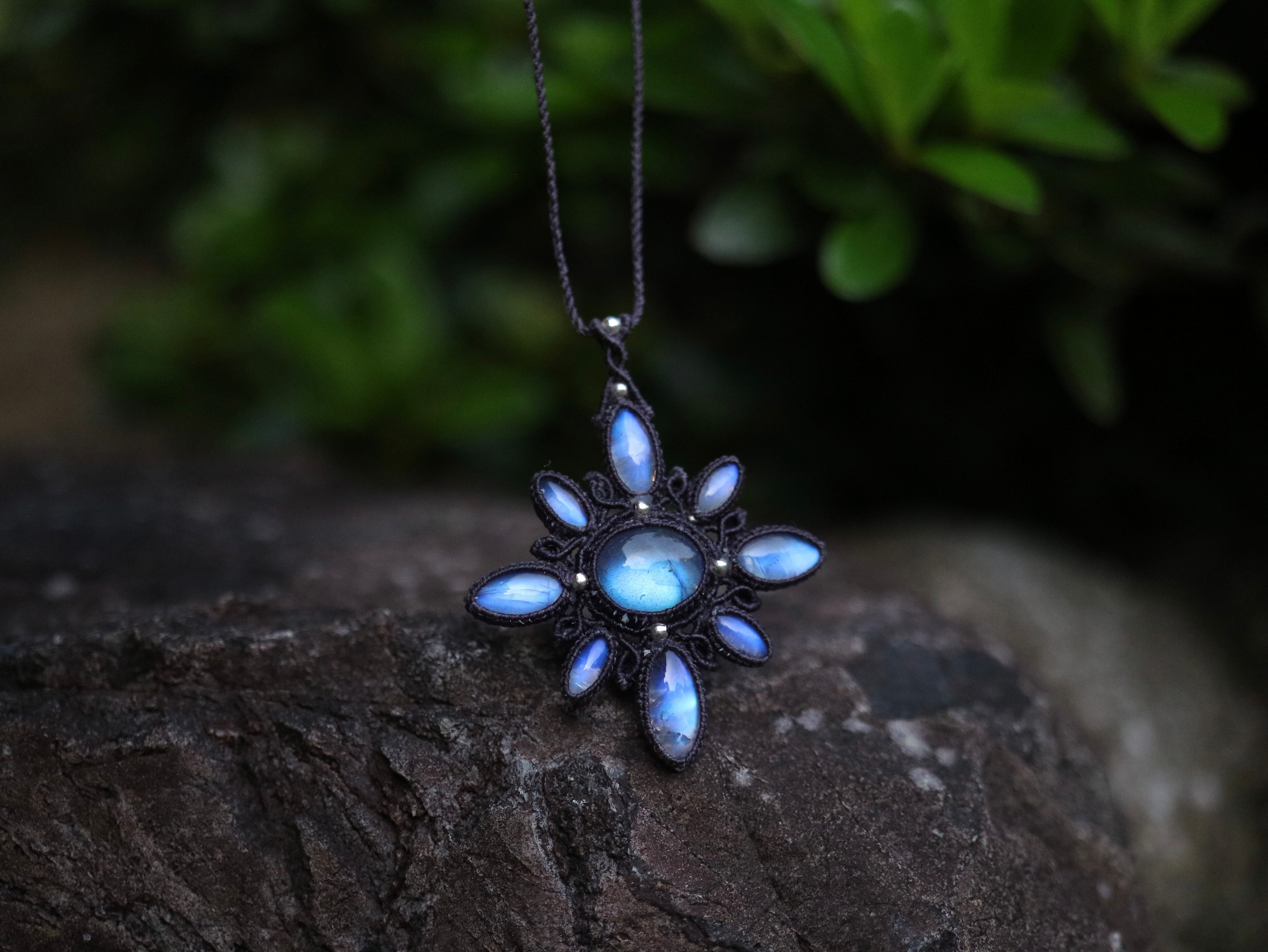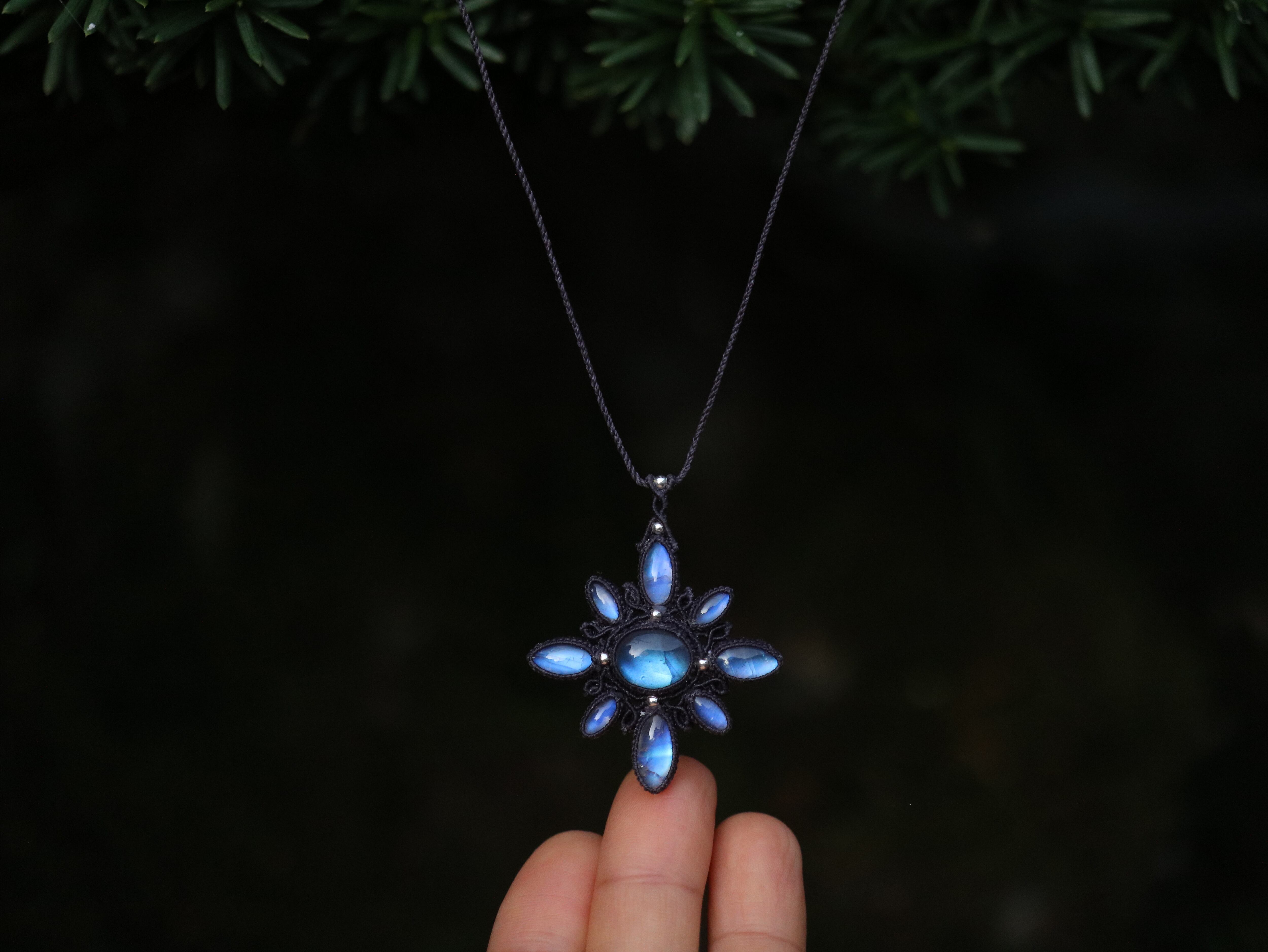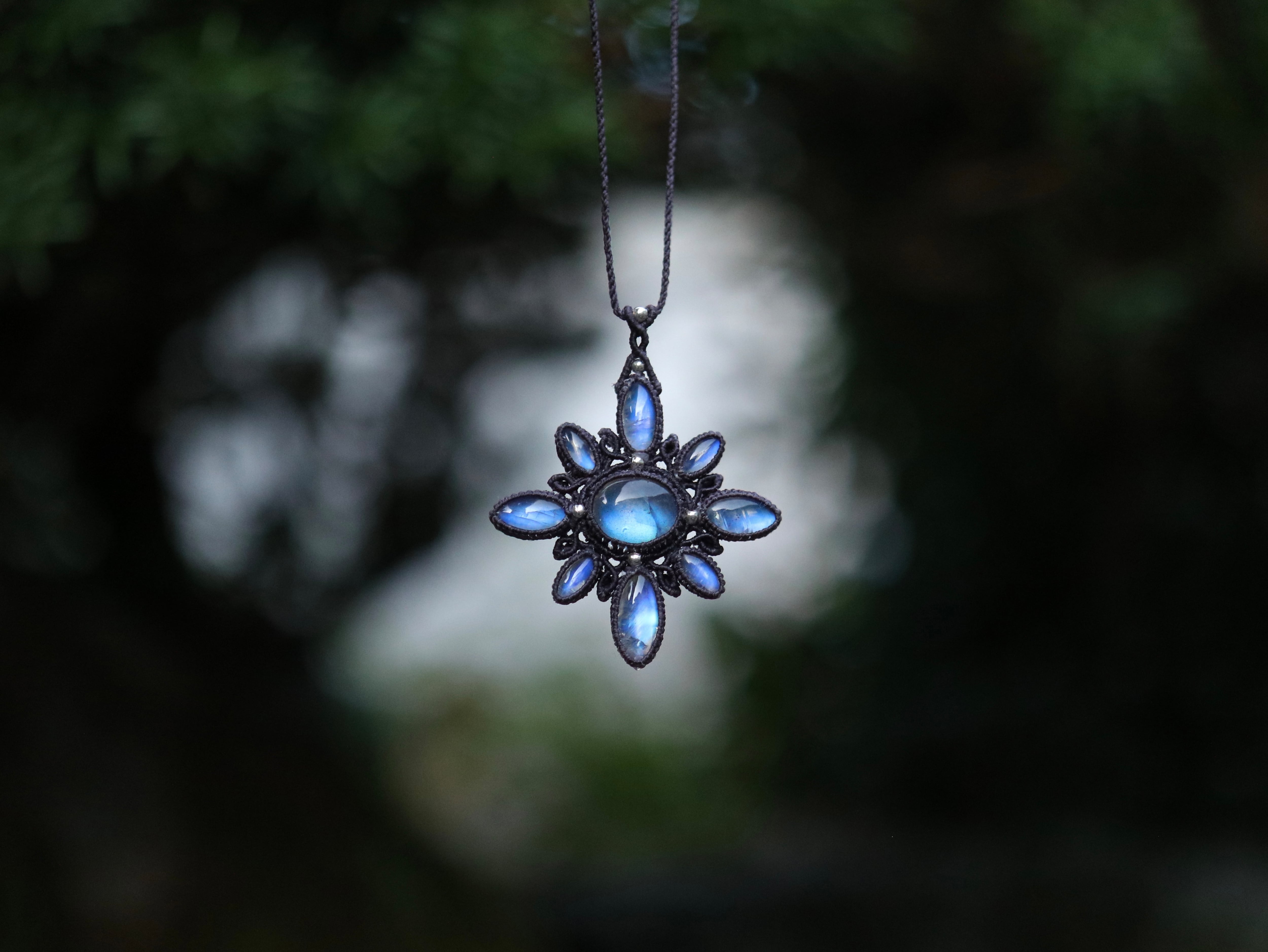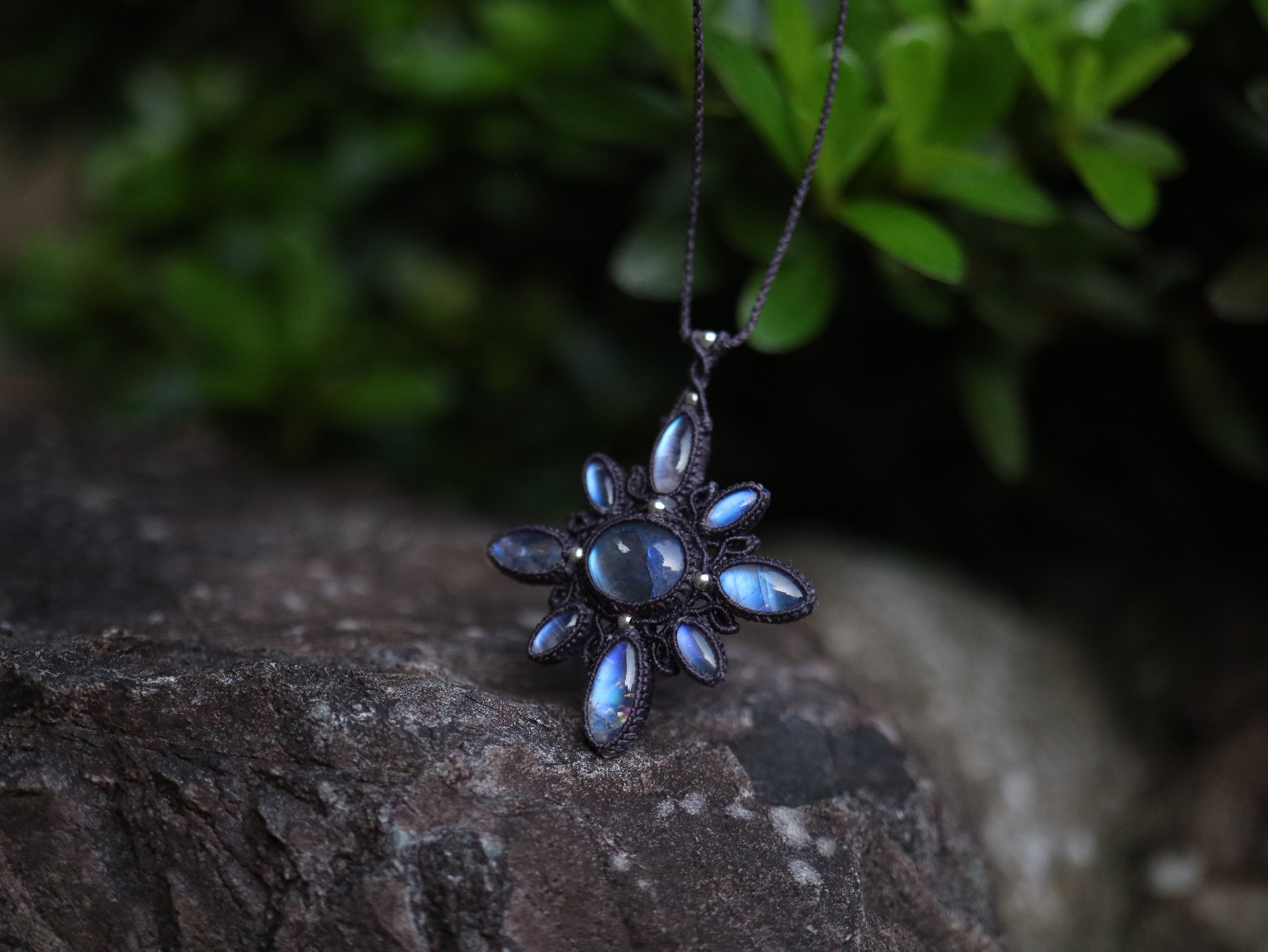 ラブラドライト × レインボームーンストーン 曼荼羅 ペンダント