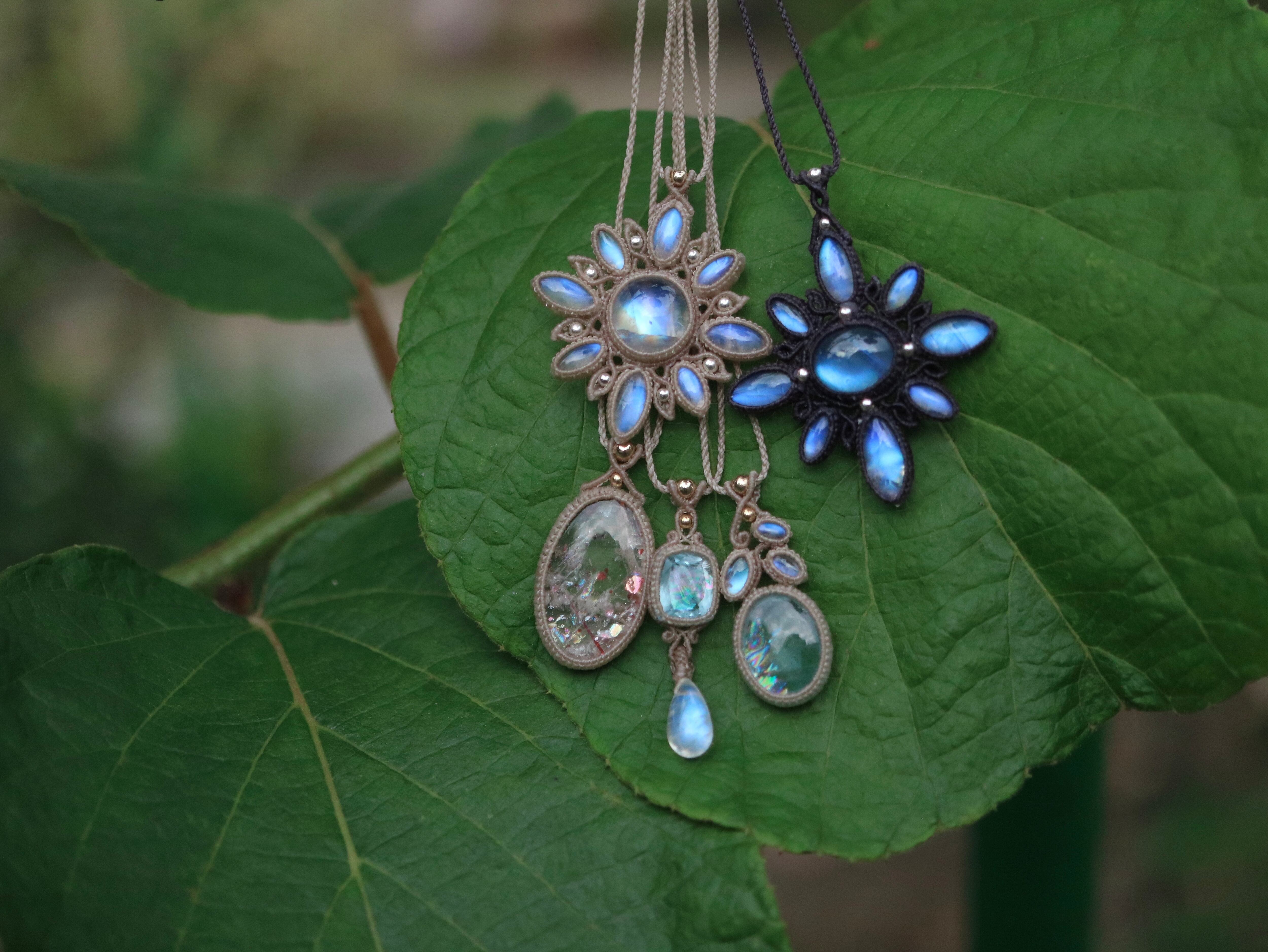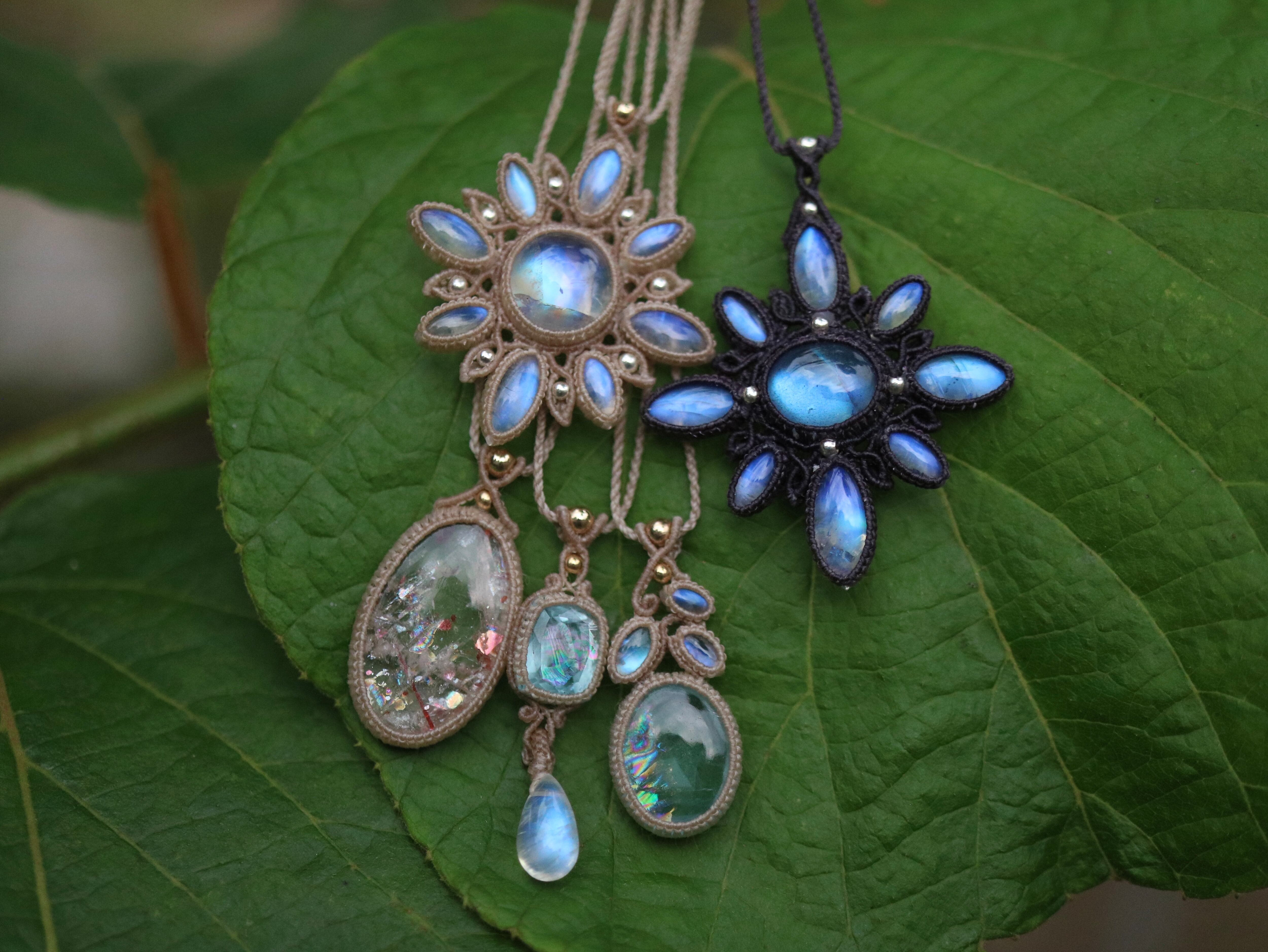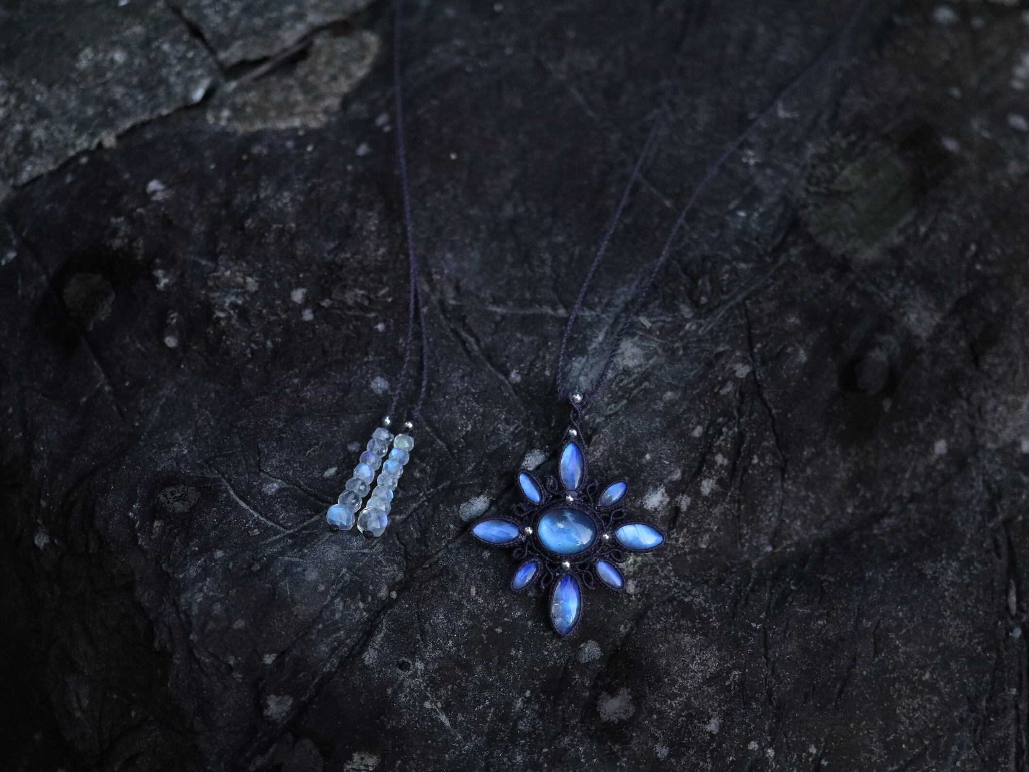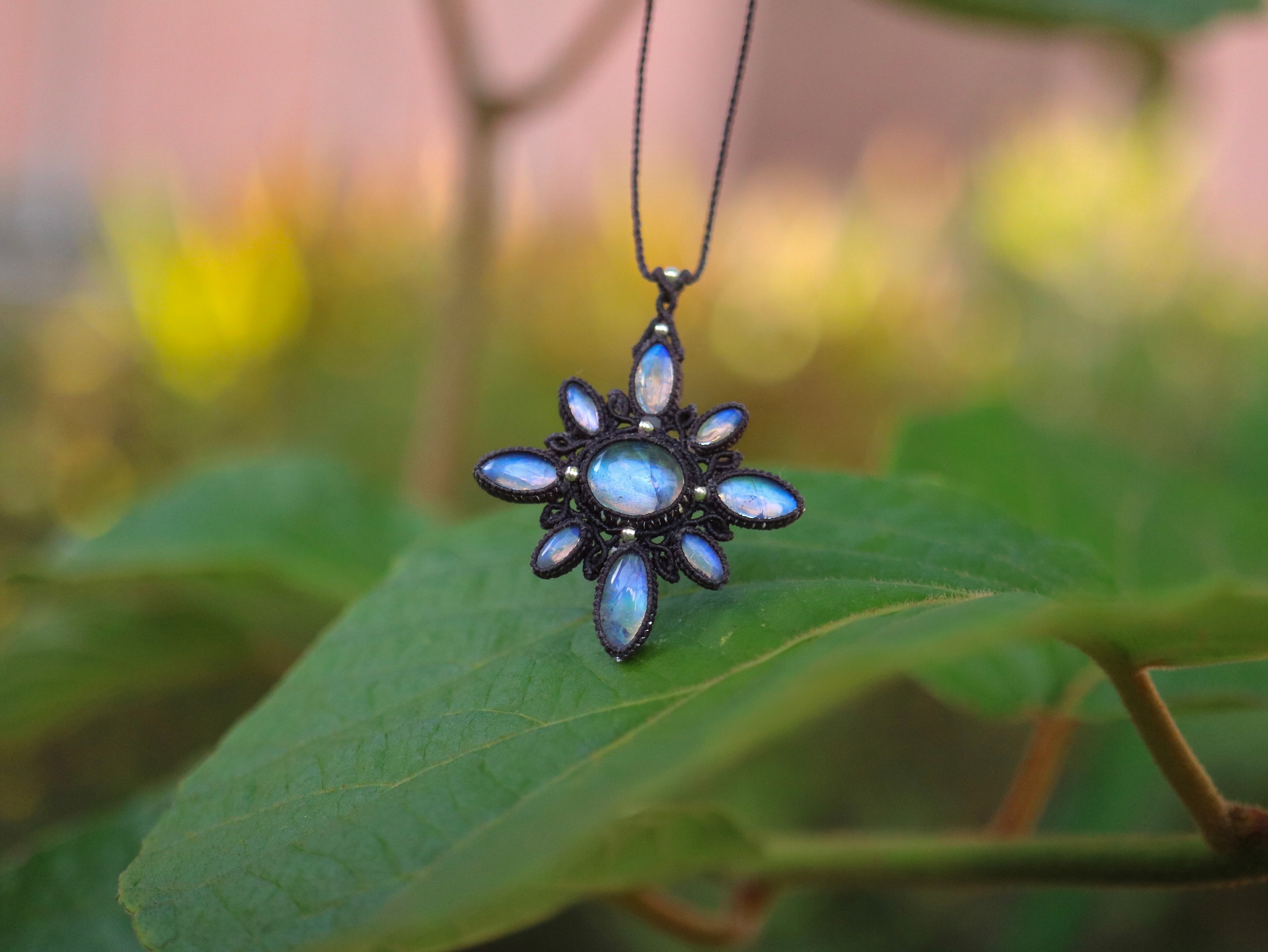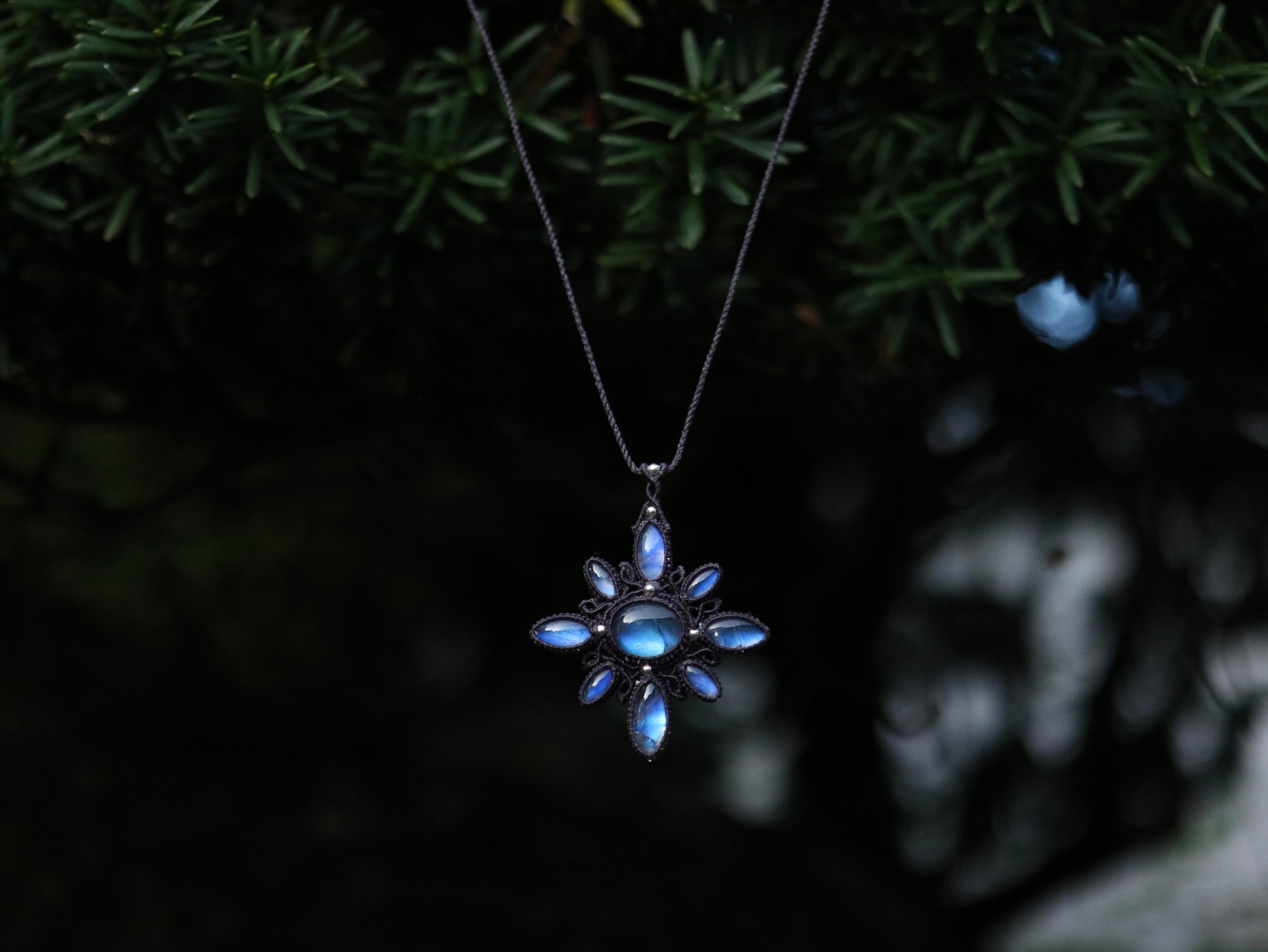 ラブラドライト × レインボームーンストーン 曼荼羅 ペンダント