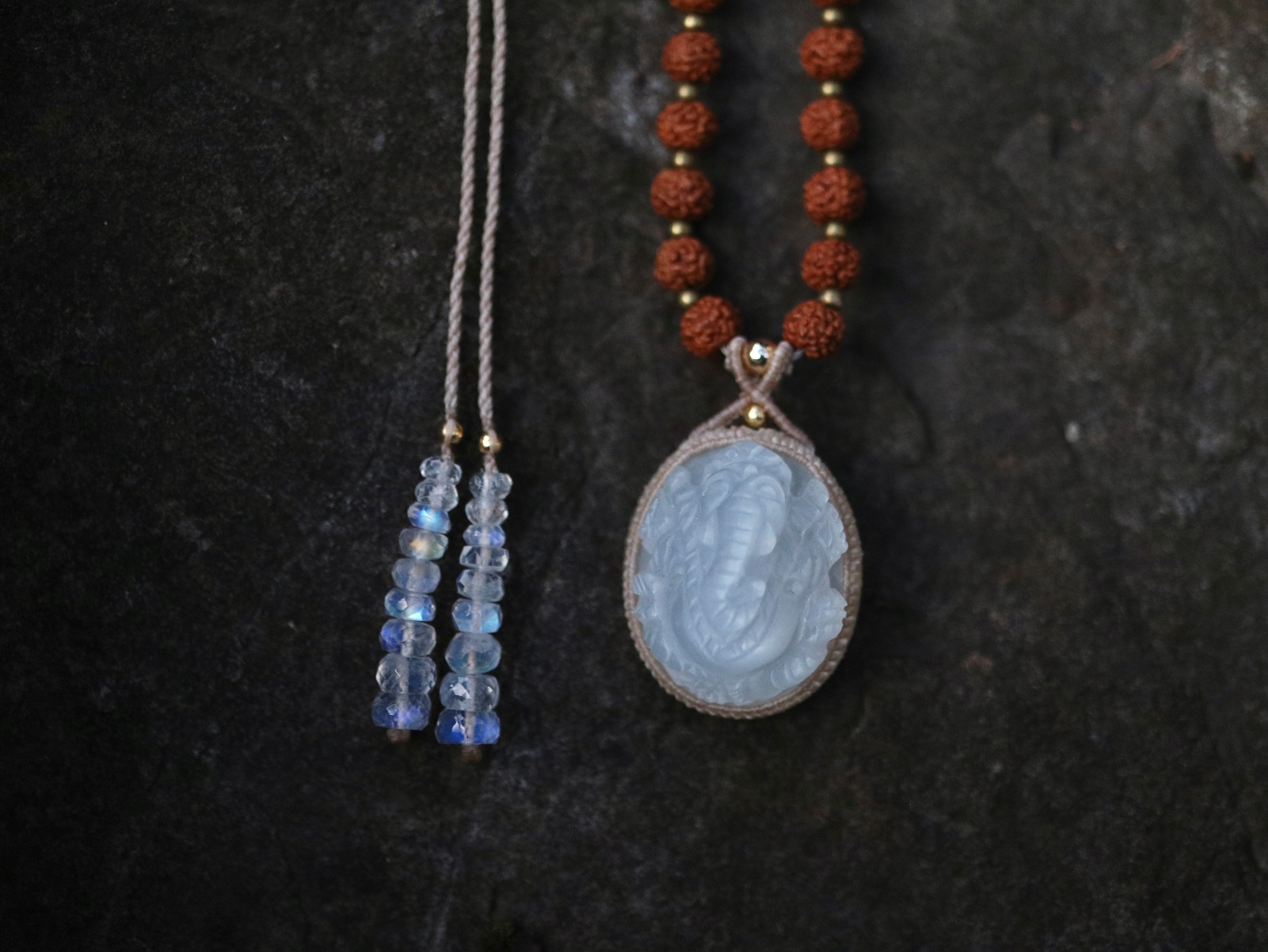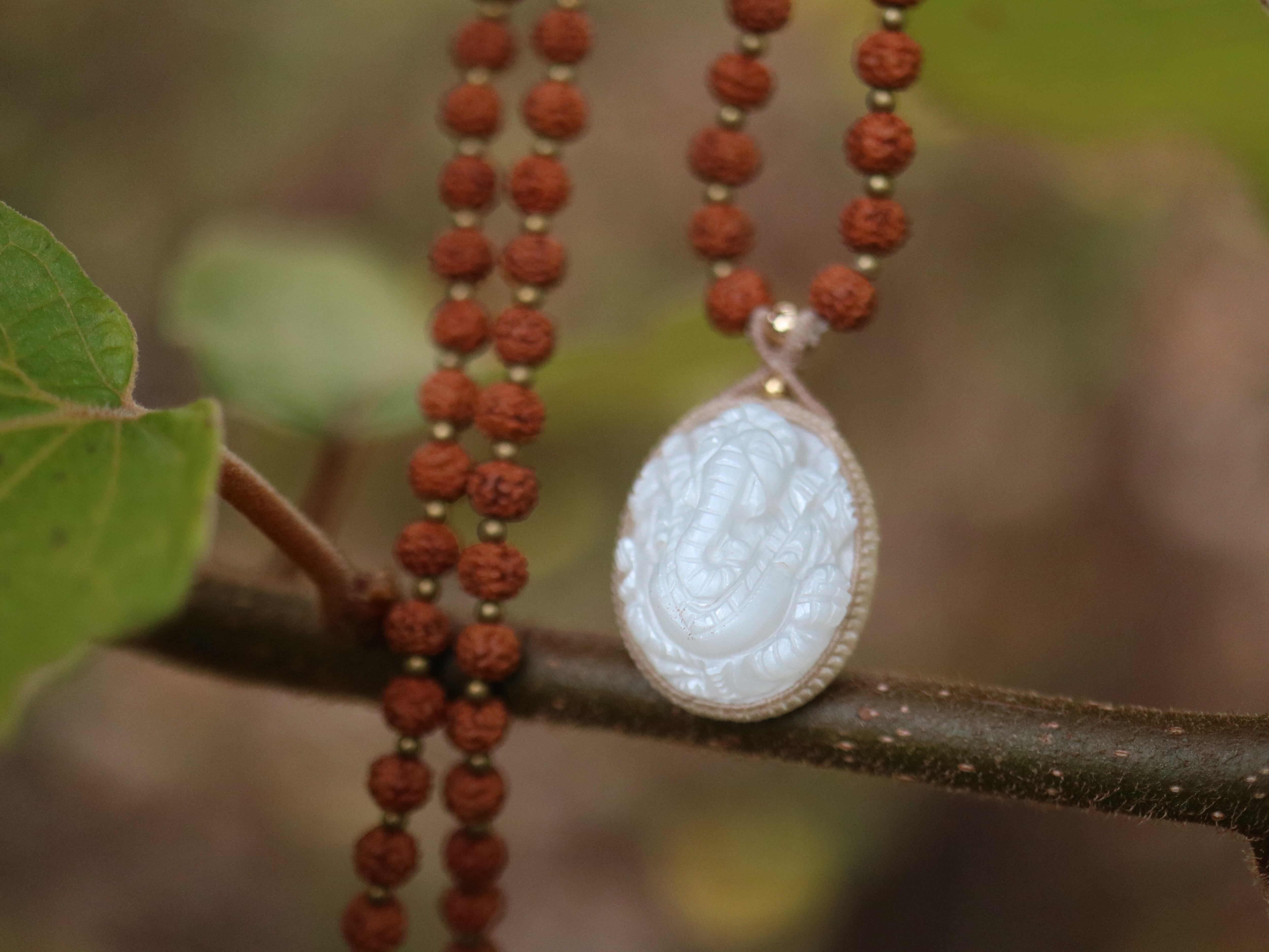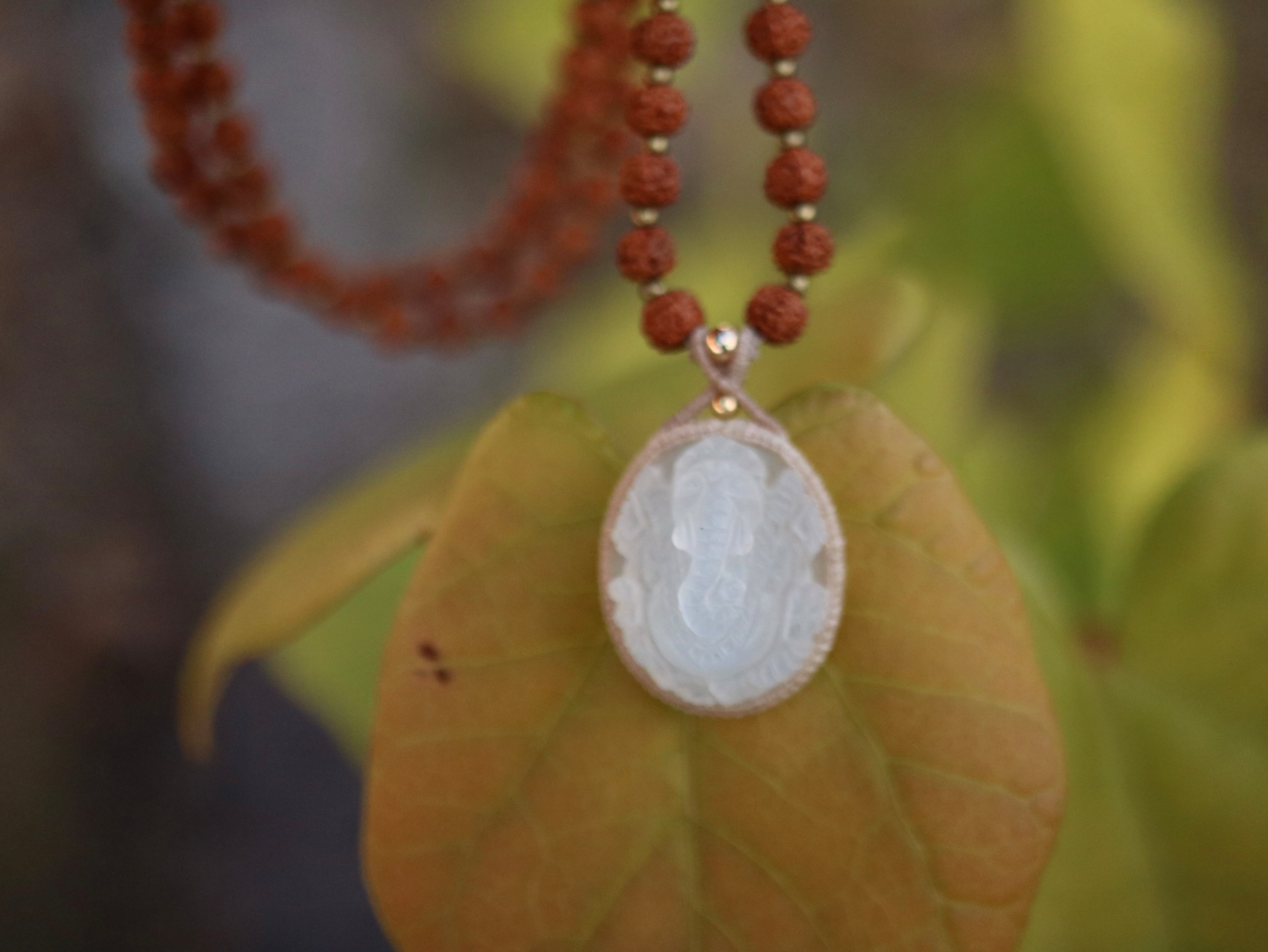 ムーンストーンガネーシャ × 108粒菩提樹の実 ペンダント