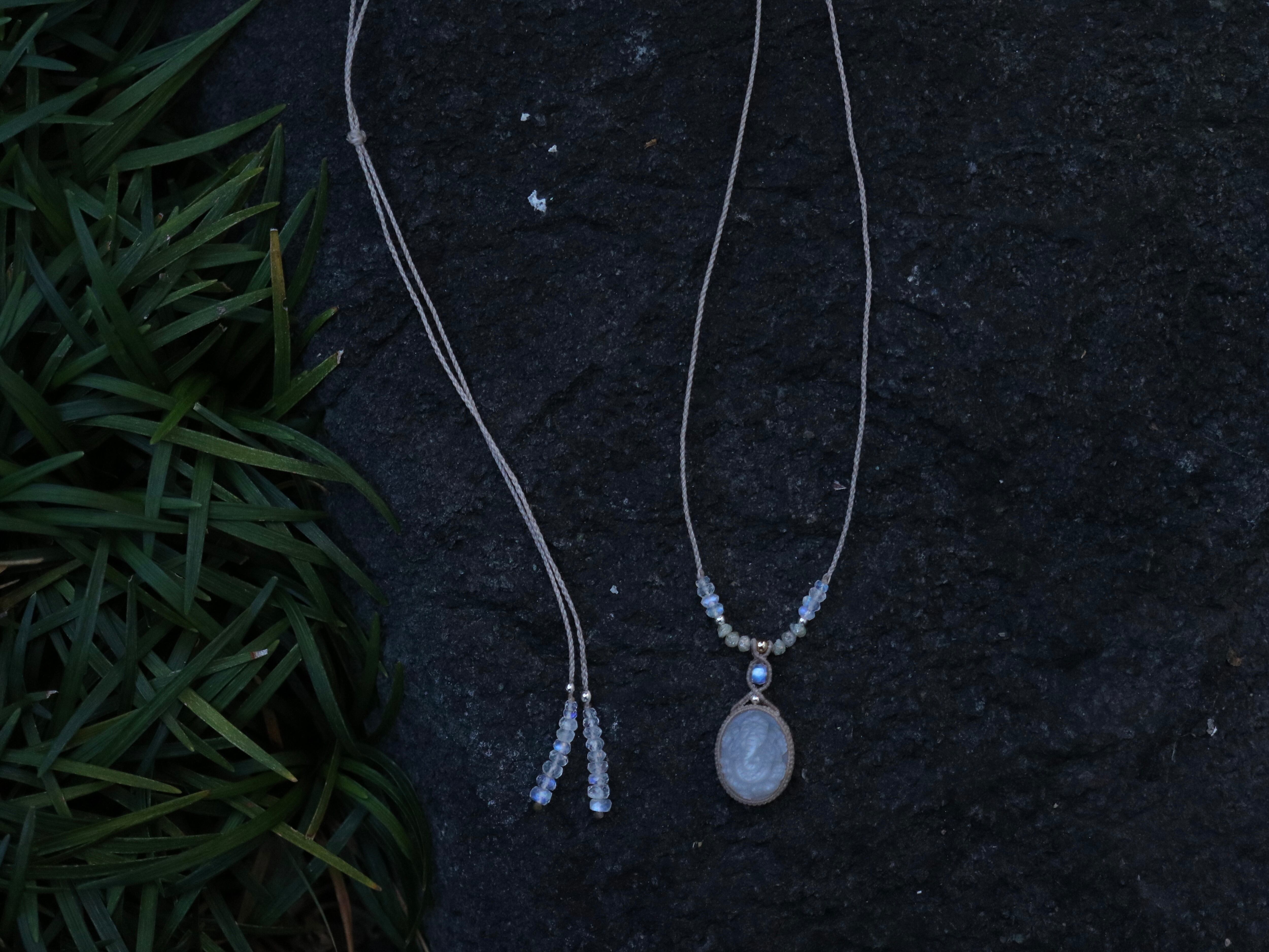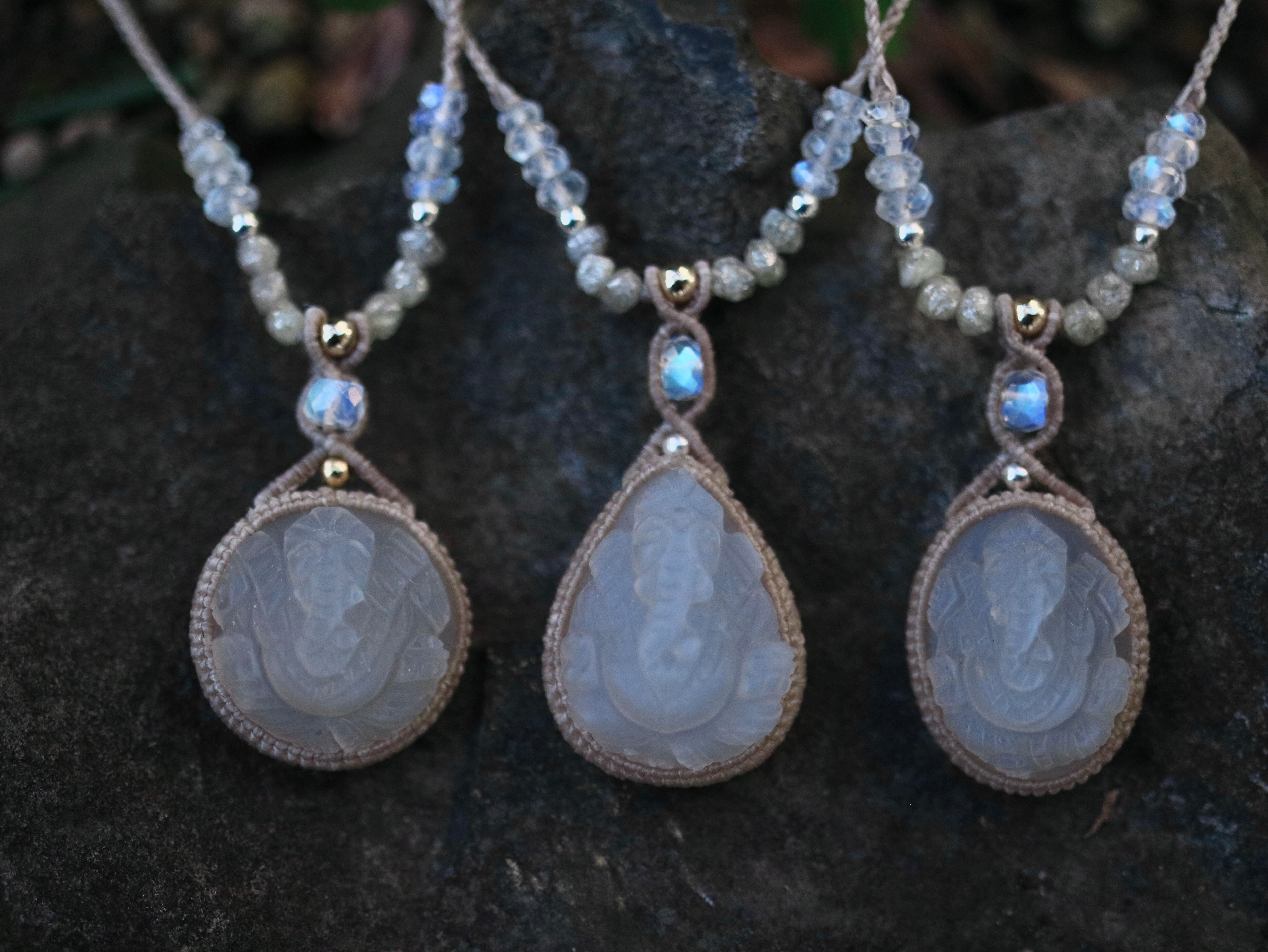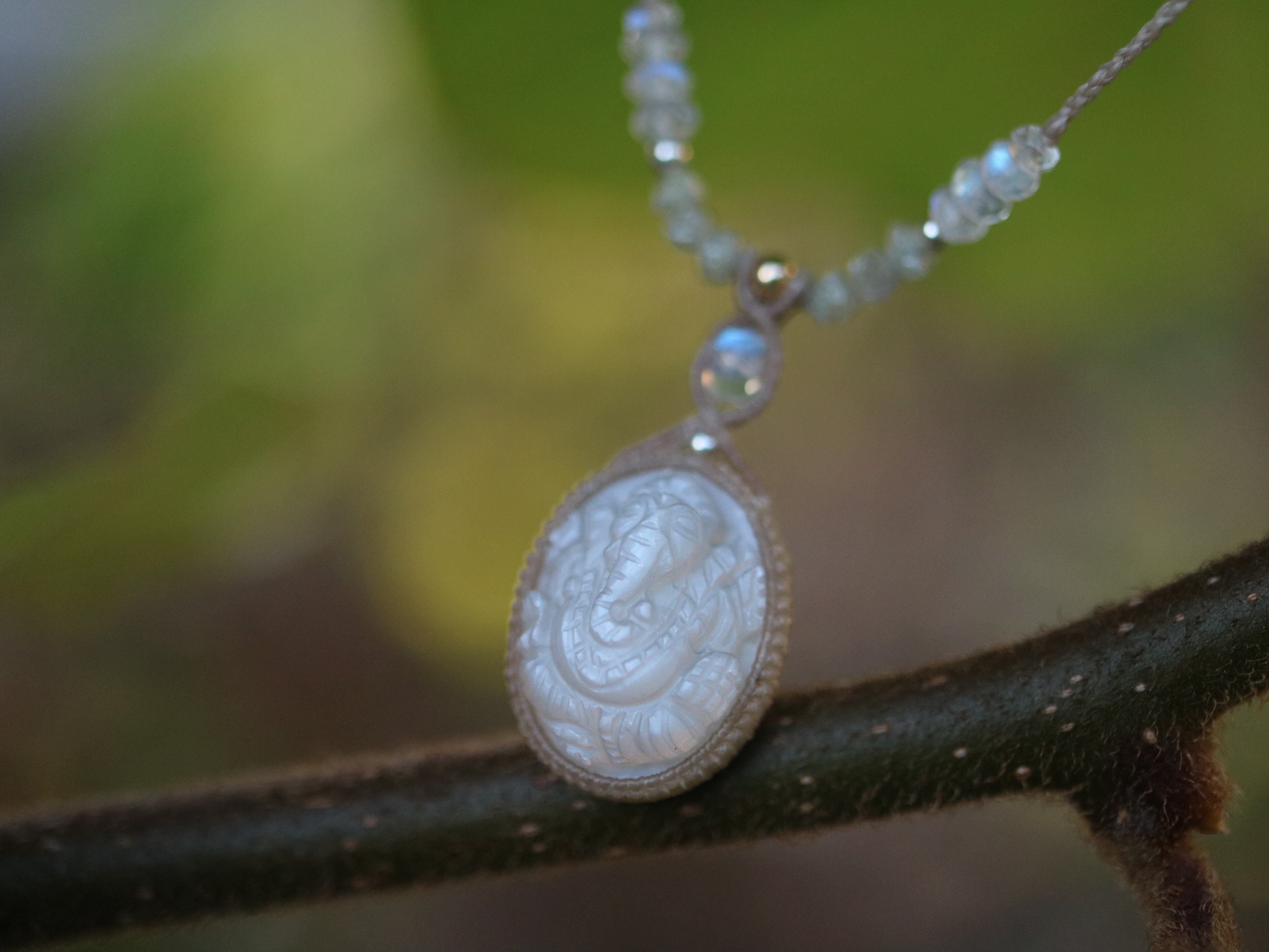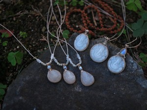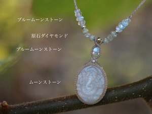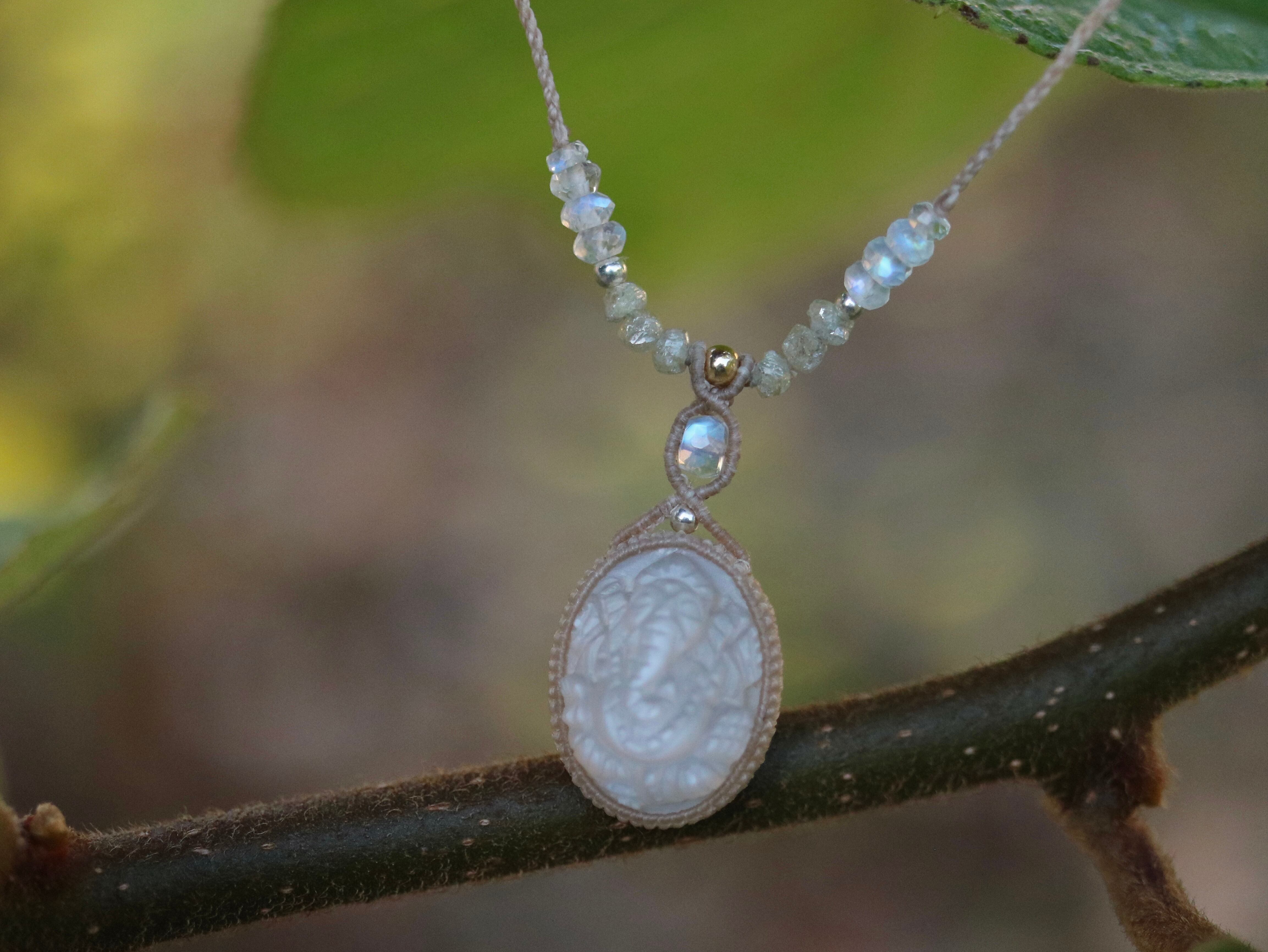 ムーンストーンガネーシャ 光のビーズネックレス Oval