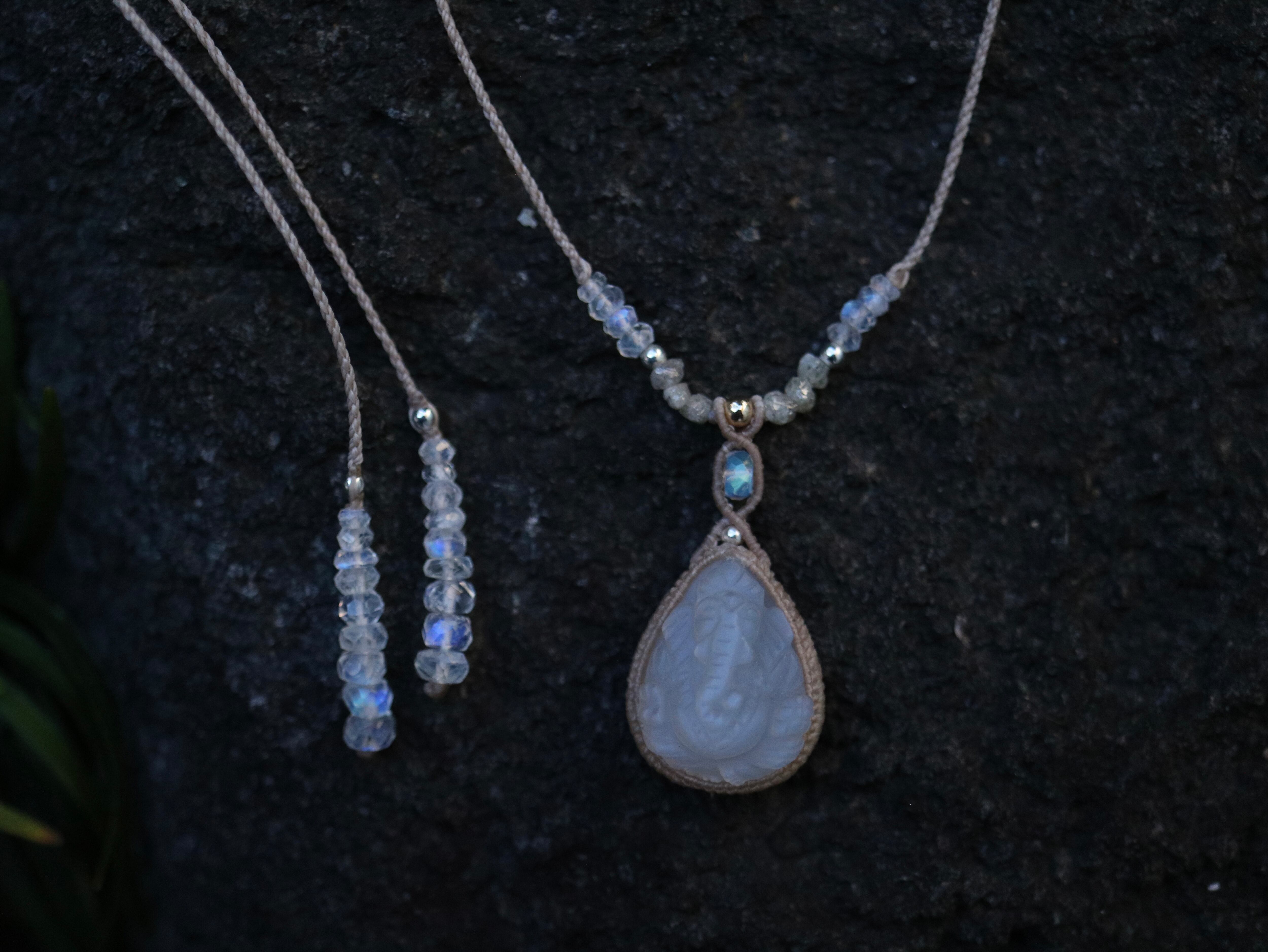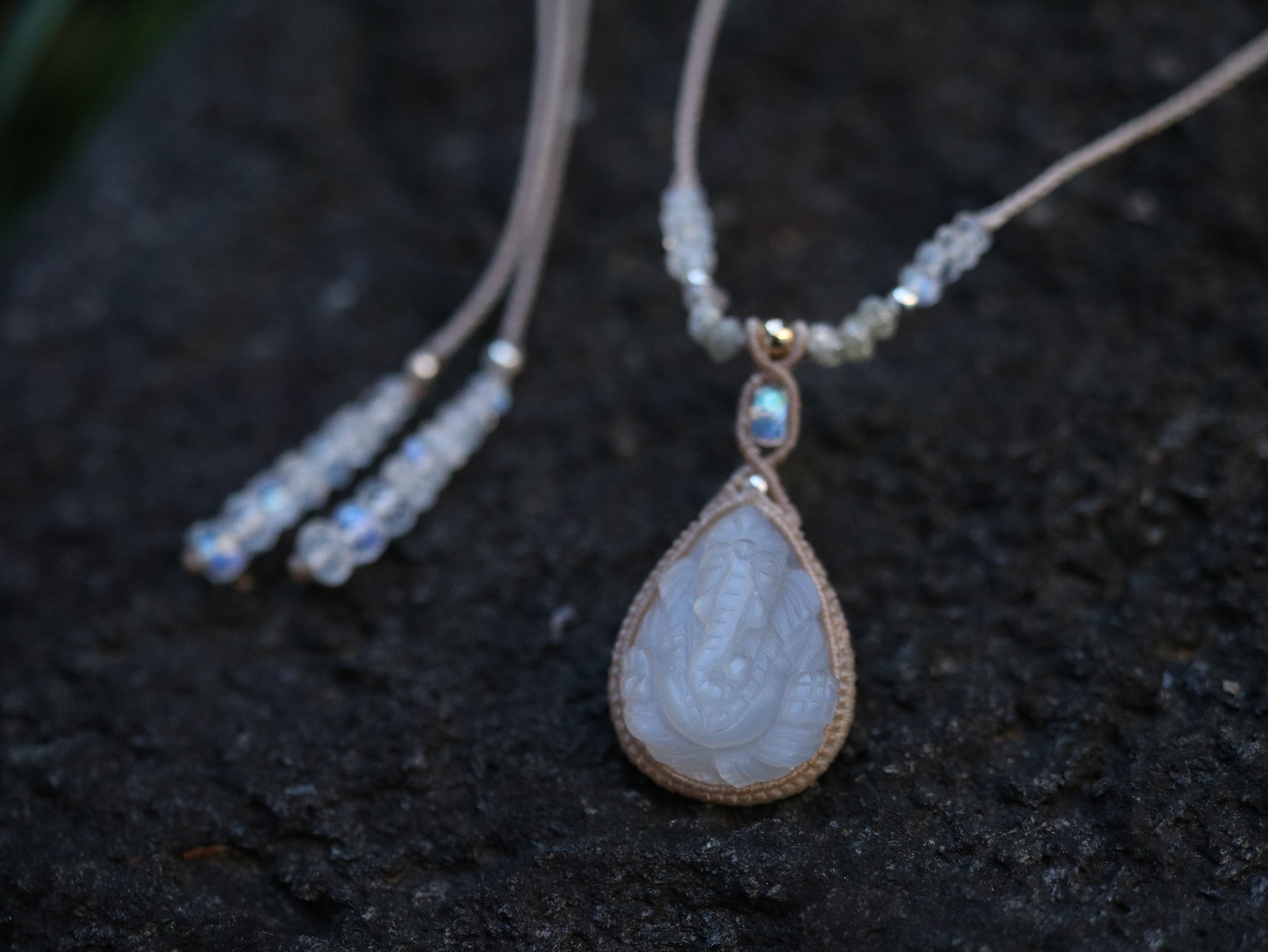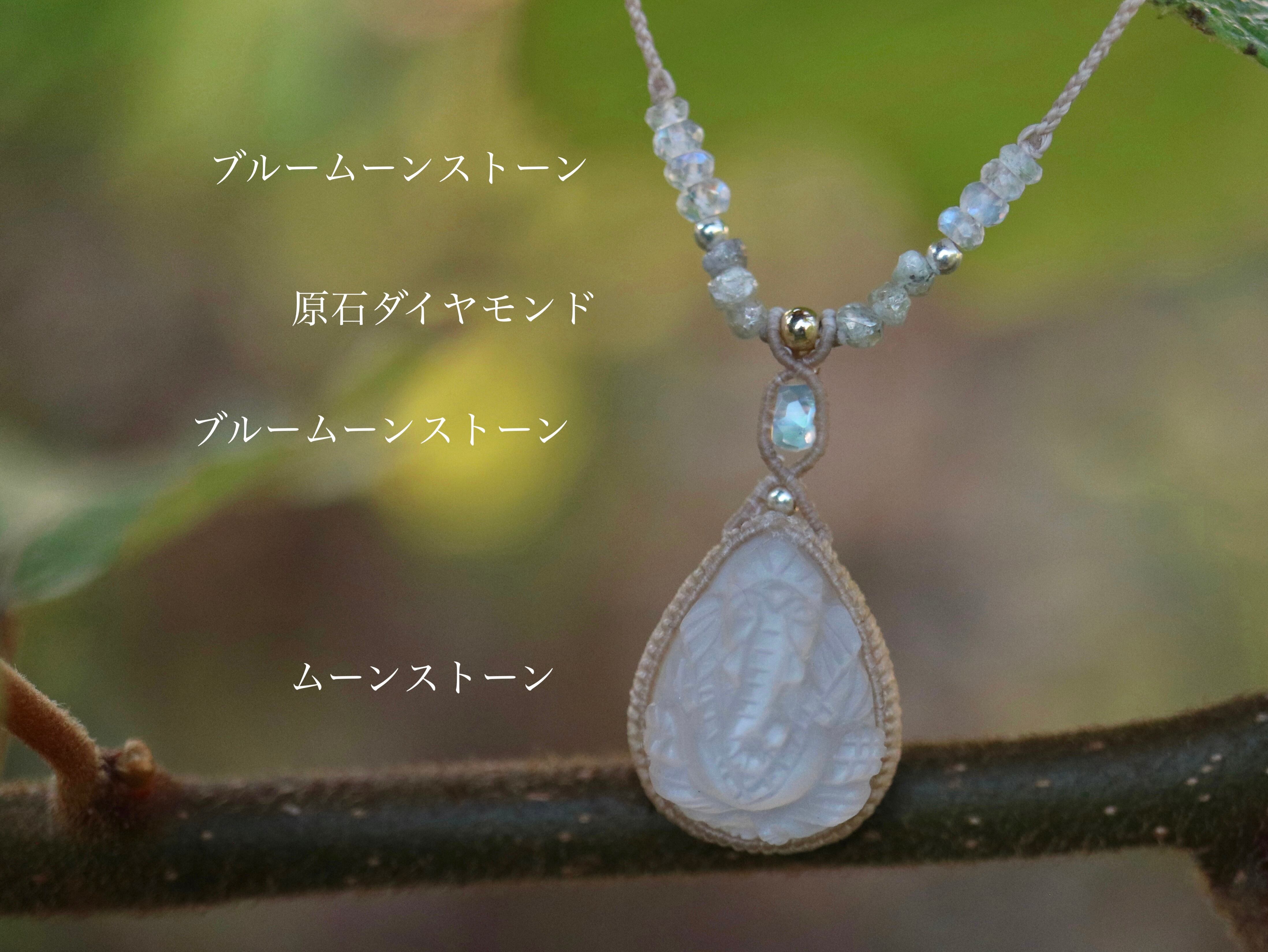 ムーンストーンガネーシャ 光のビーズネックレス Drop