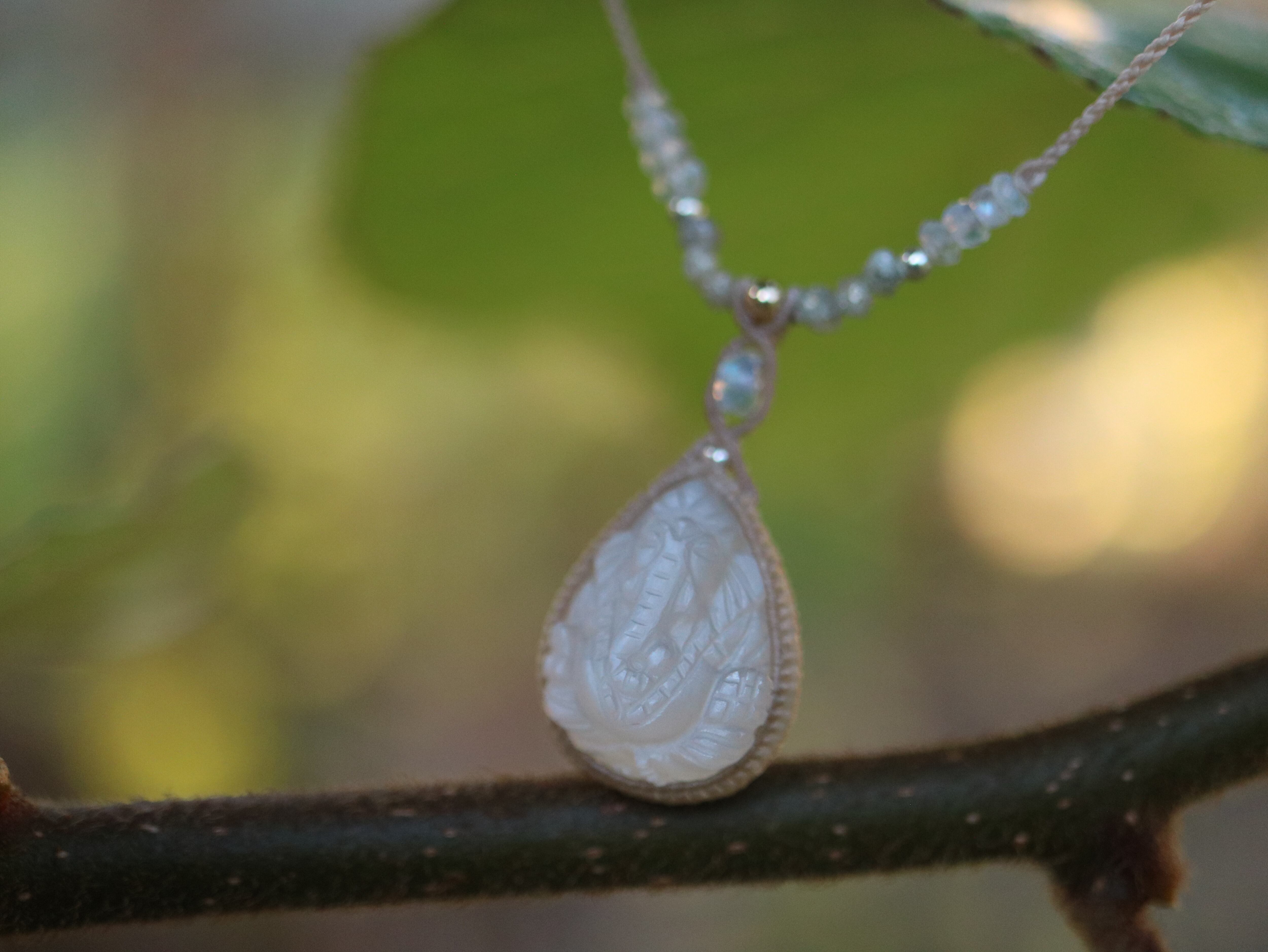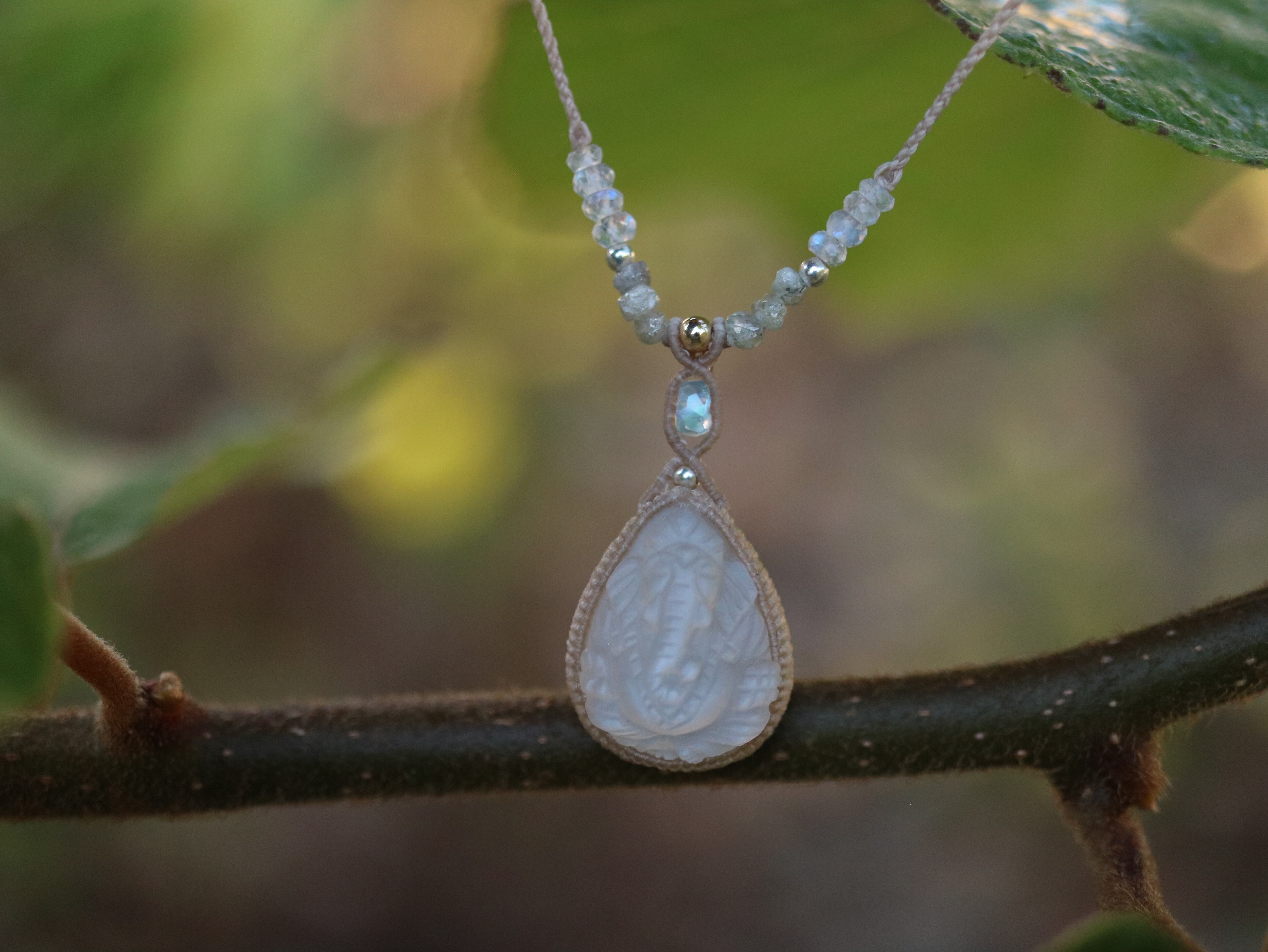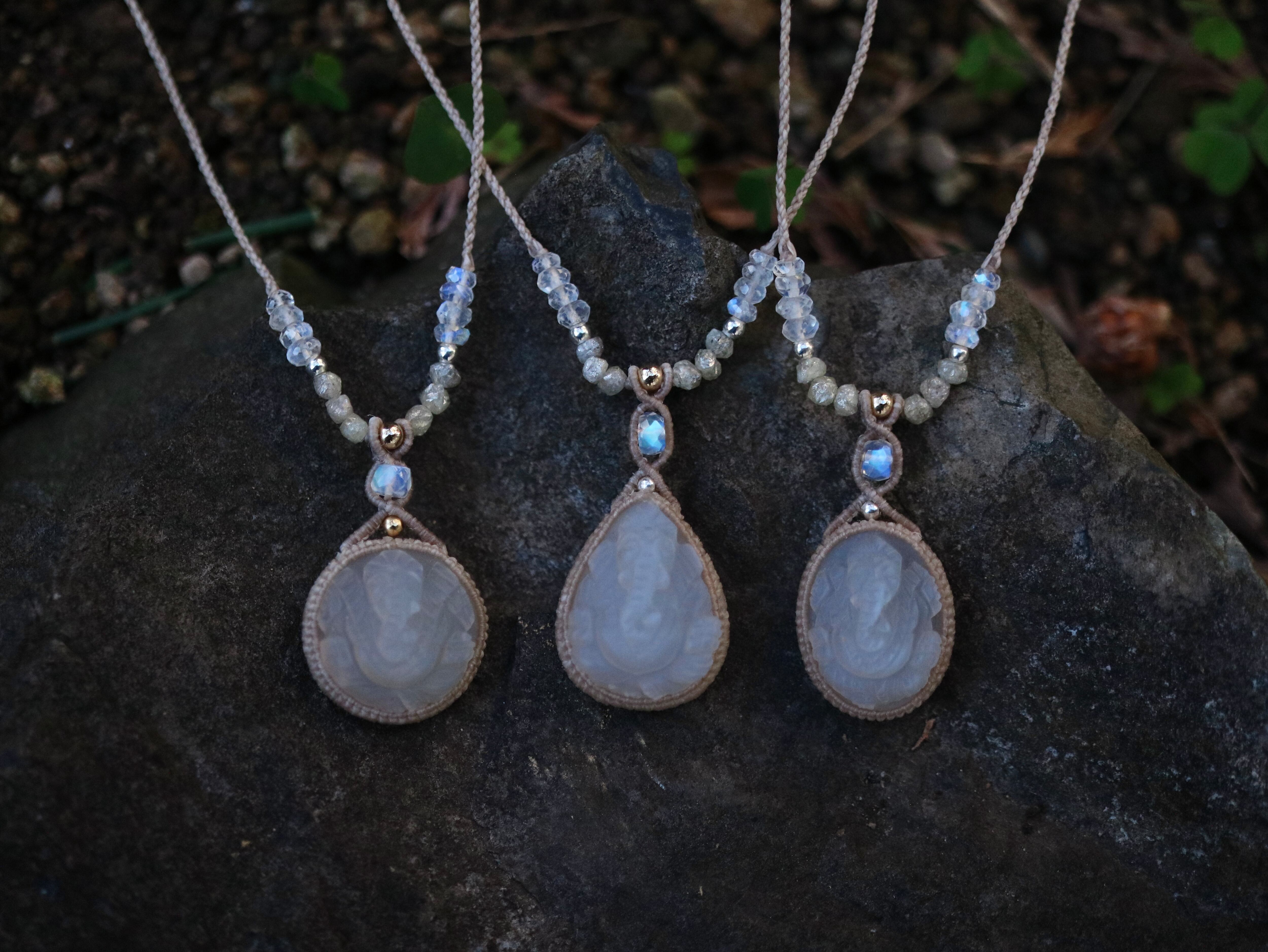 ムーンストーンガネーシャ 光のビーズネックレス Drop