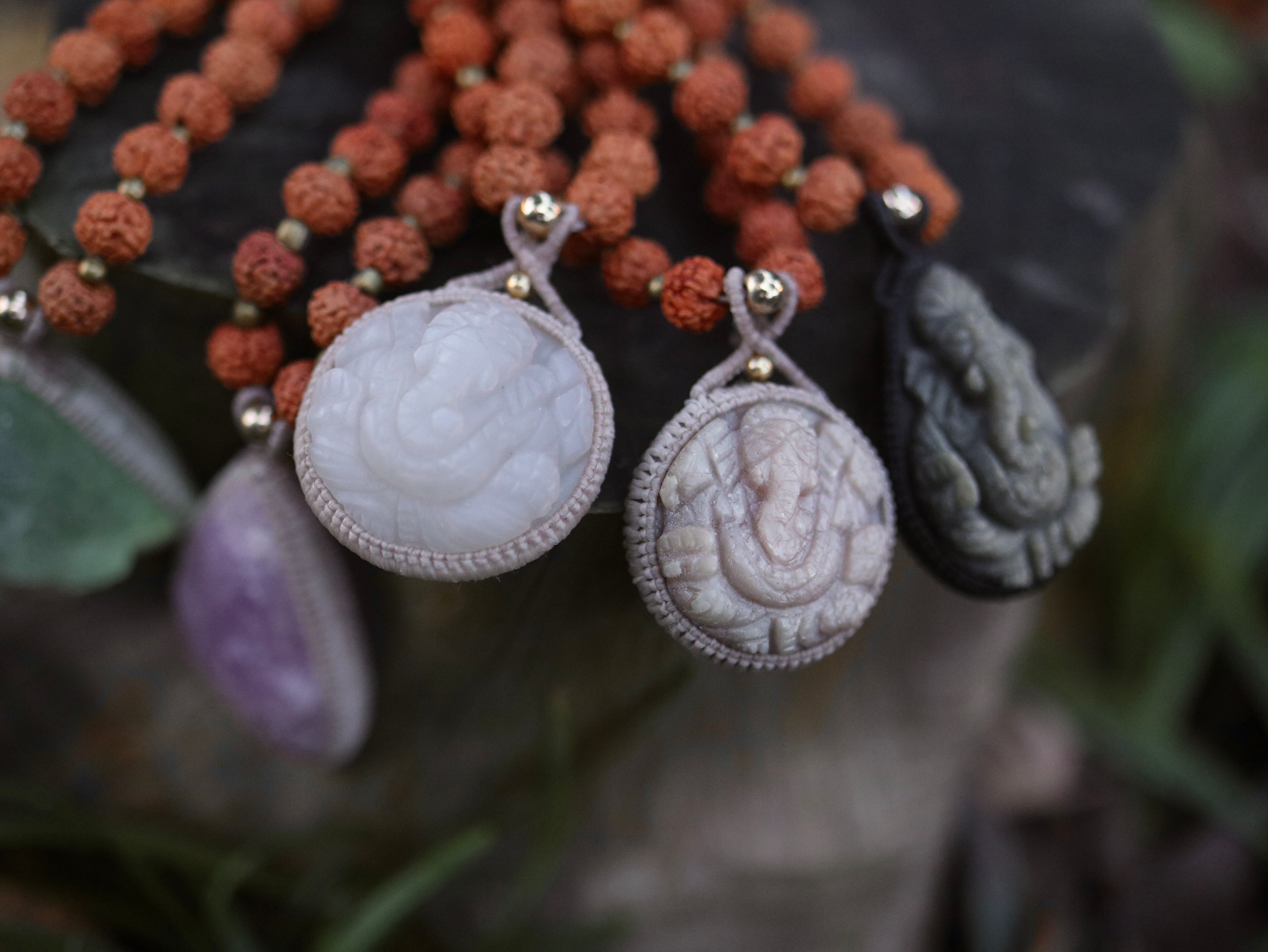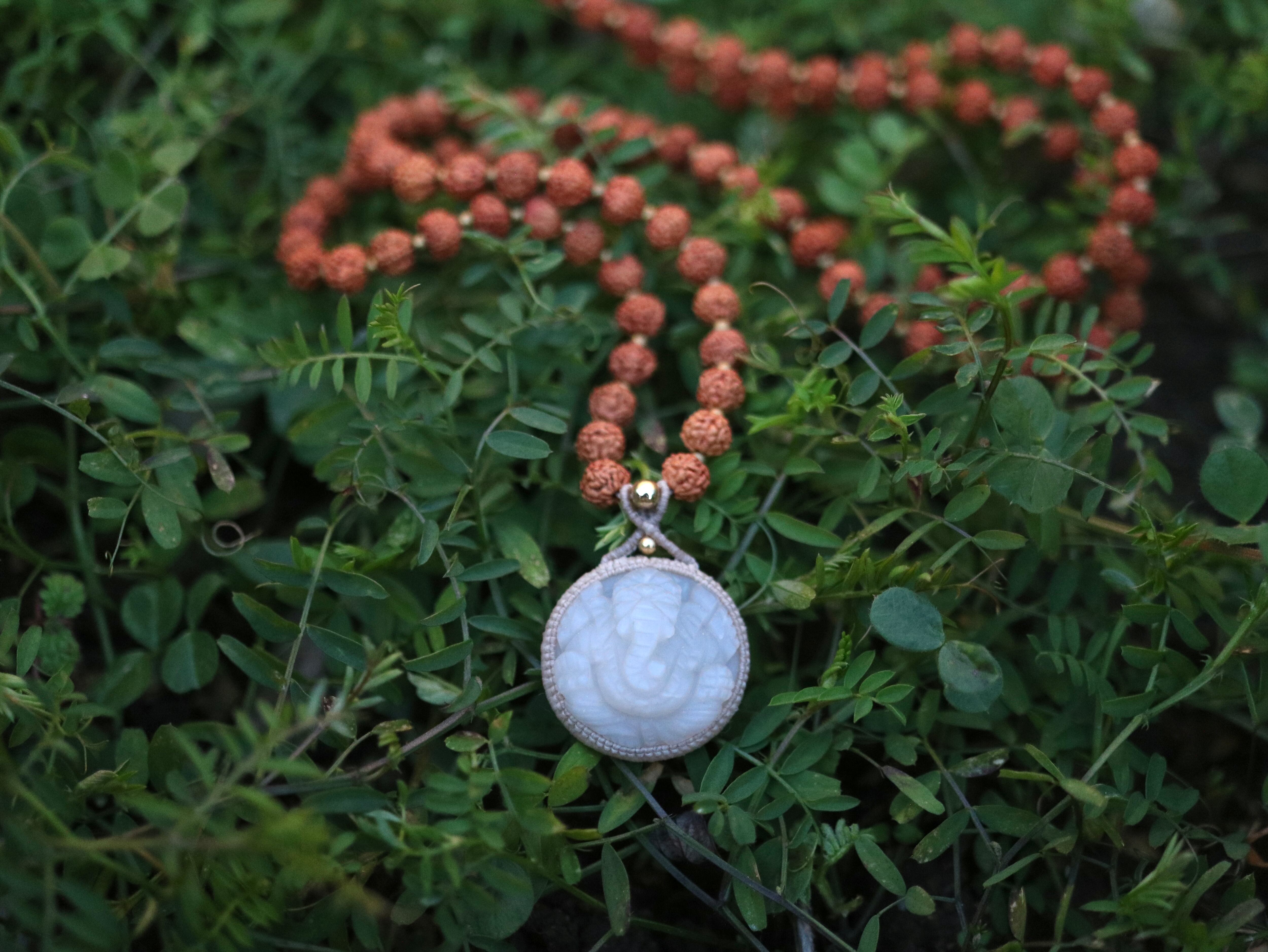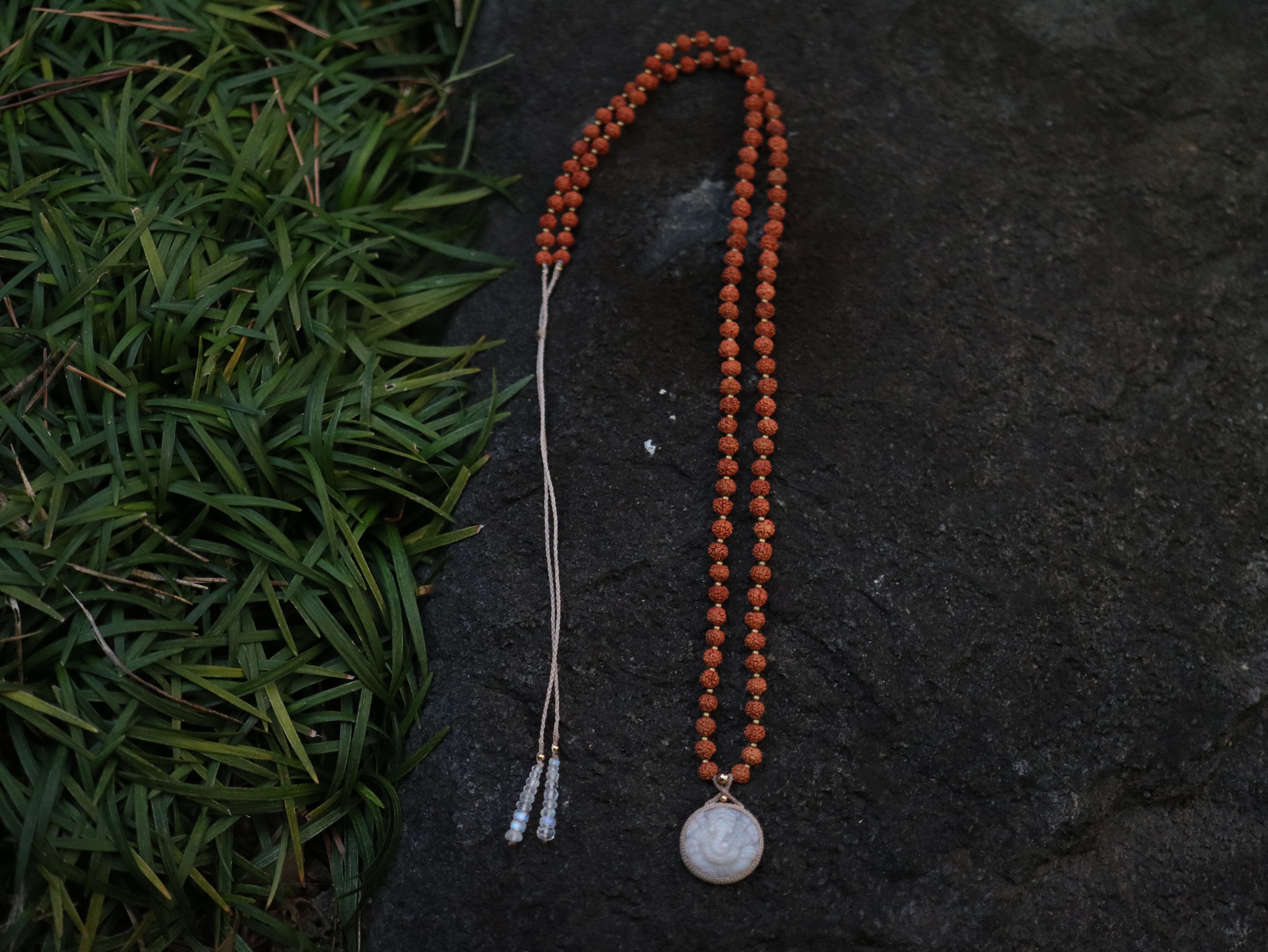 ムーンストーンガネーシャ × 108粒菩提樹の実 ペンダント