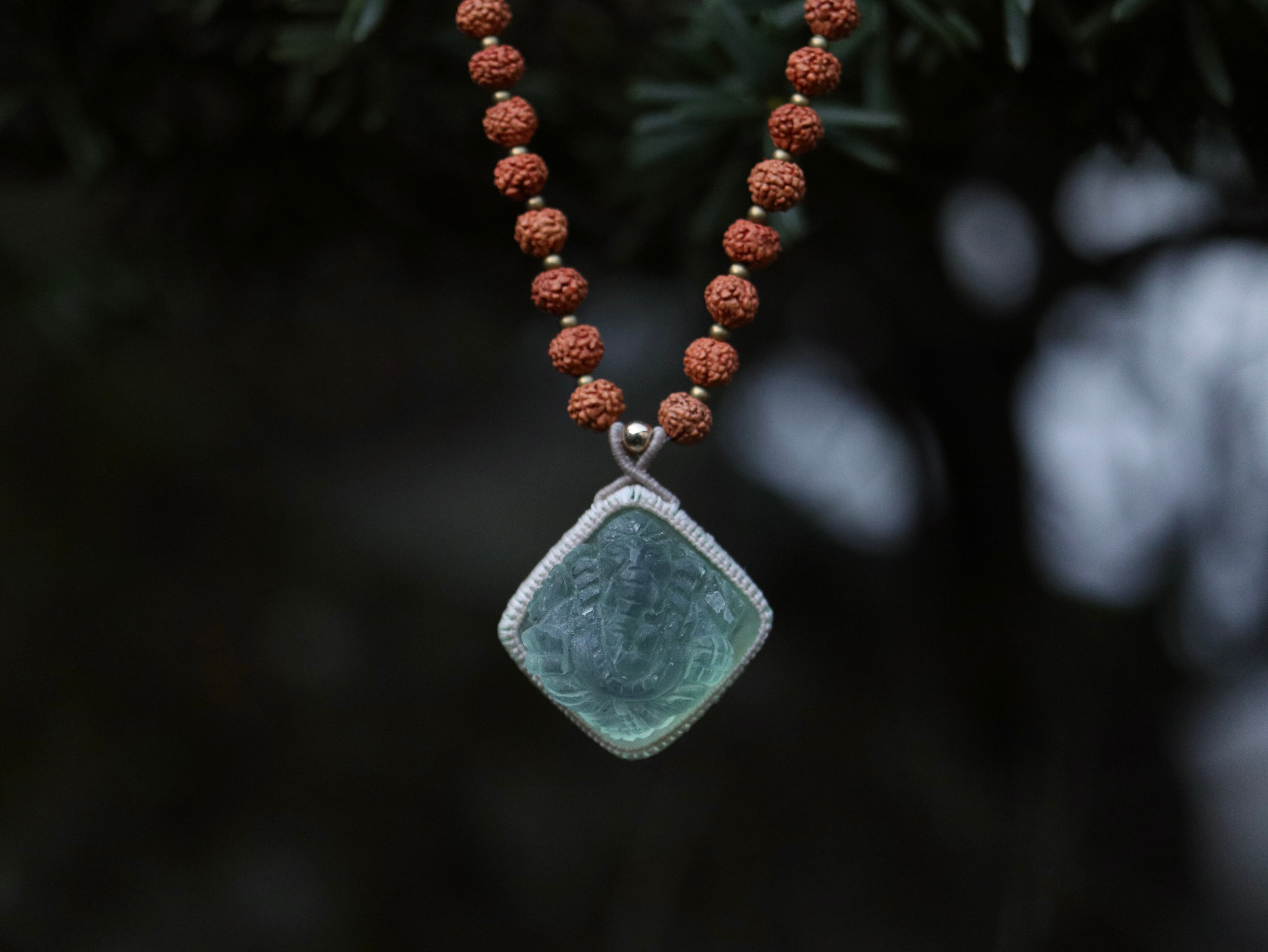 シヴァ神の絵を見ると菩提樹の実のマラ(ビーズネックレス)を首や腕に何重にも巻かれた姿が描かれます。