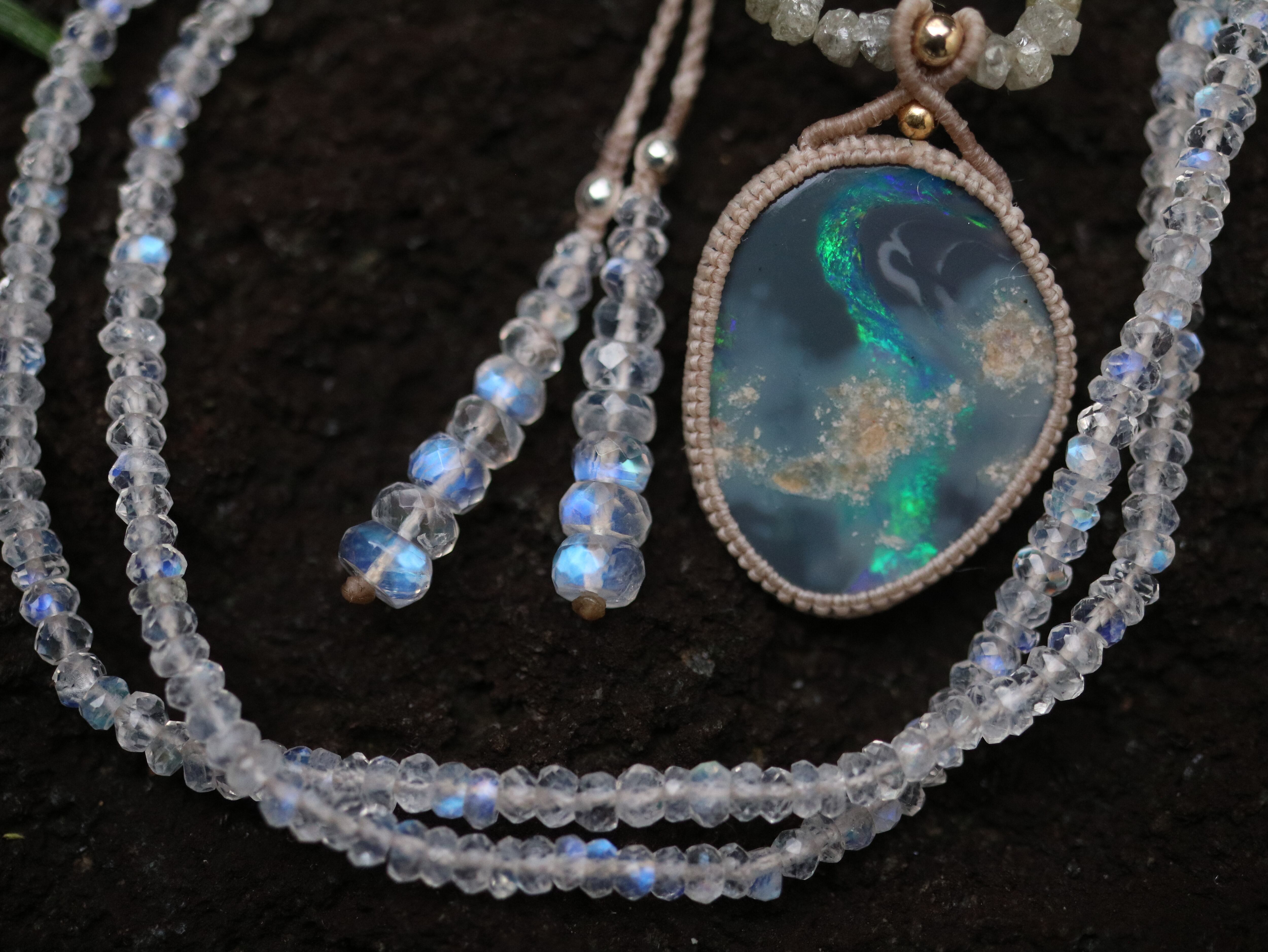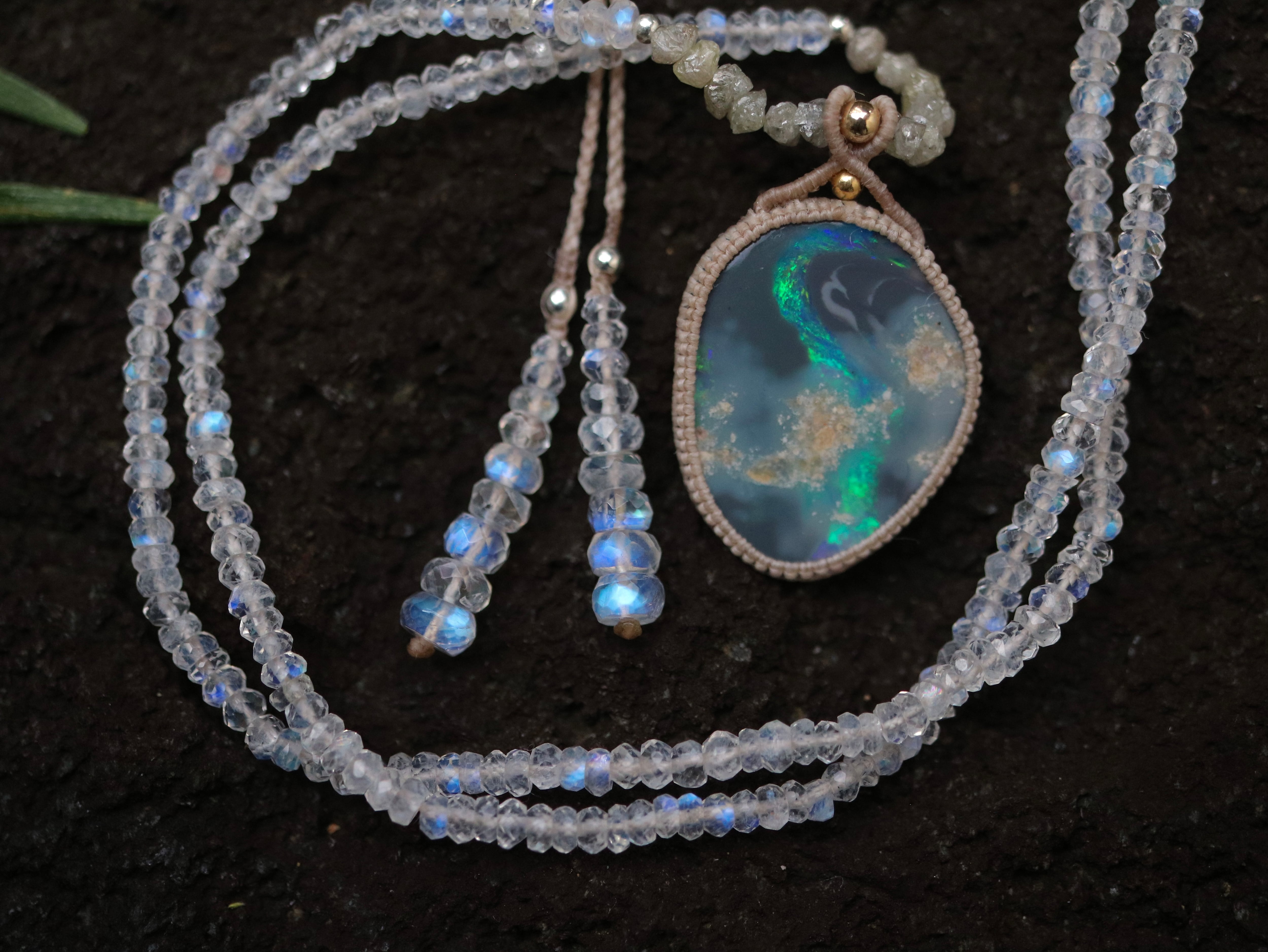 そのため機械カットでは決して表現できない有機的な美しいレインボームーンストーンと感じ、私としては重宝しております。