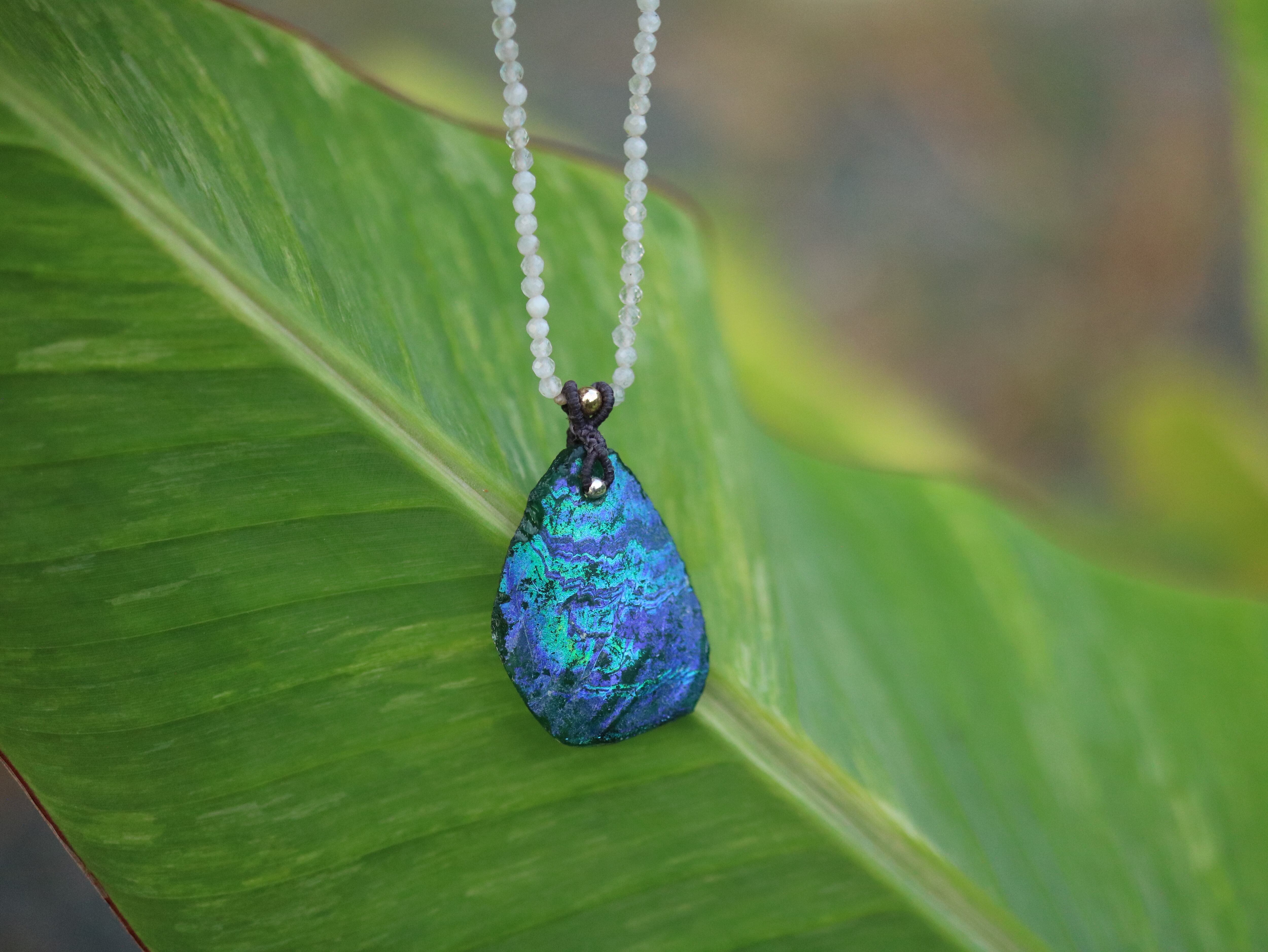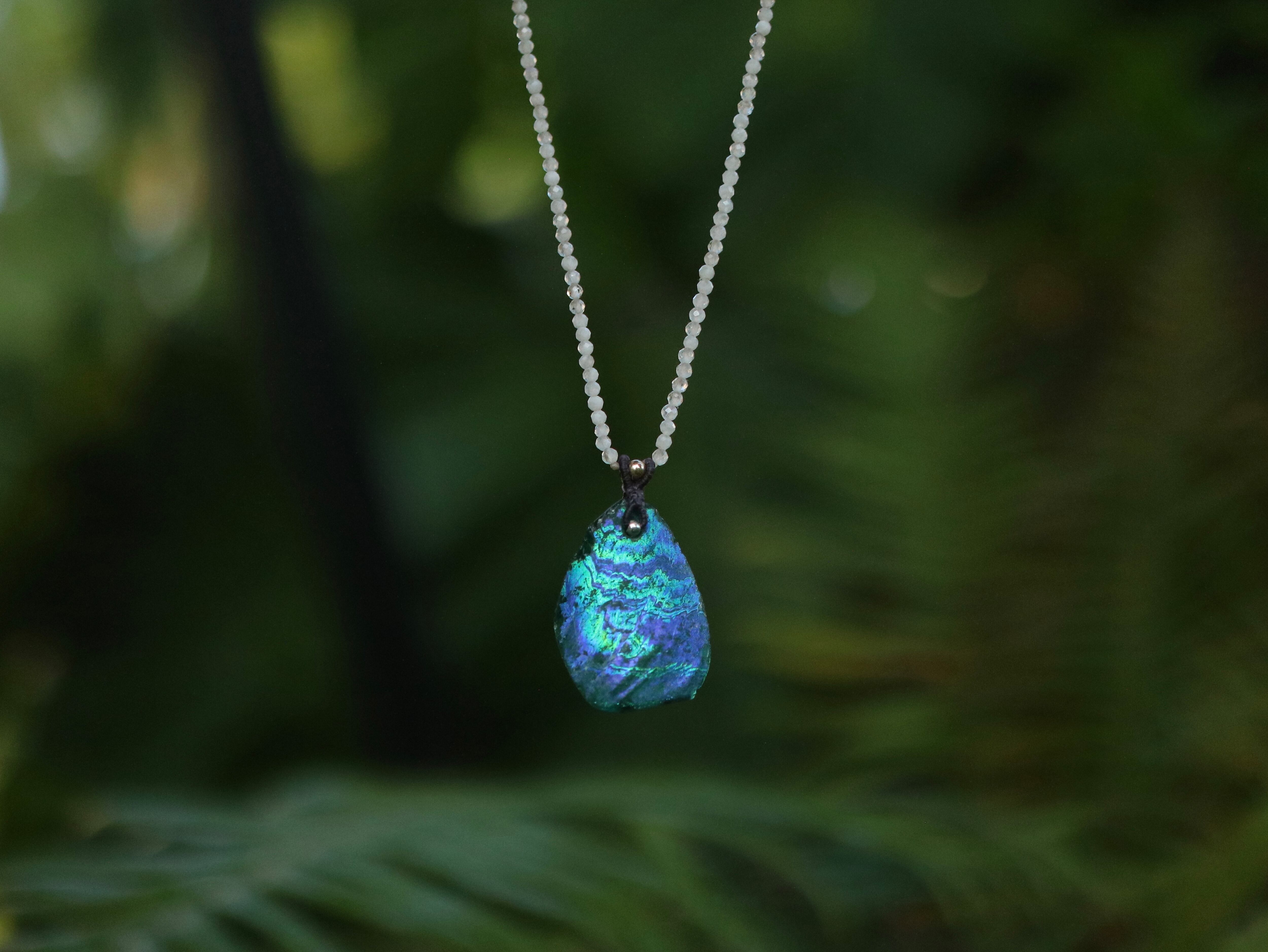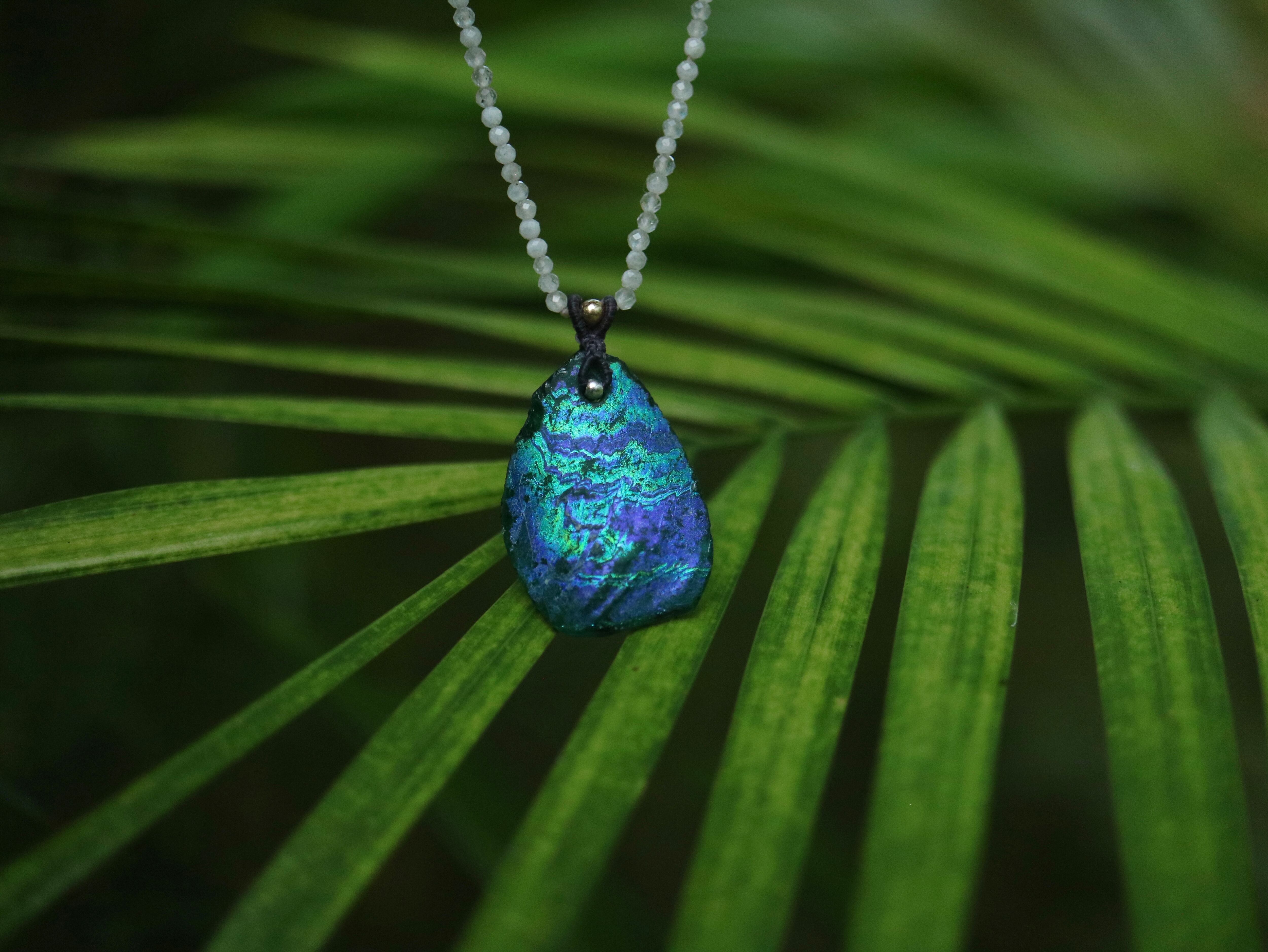 Blue Green ローマングラス × ムーンストーンビーズ ネックレス Ⅰ