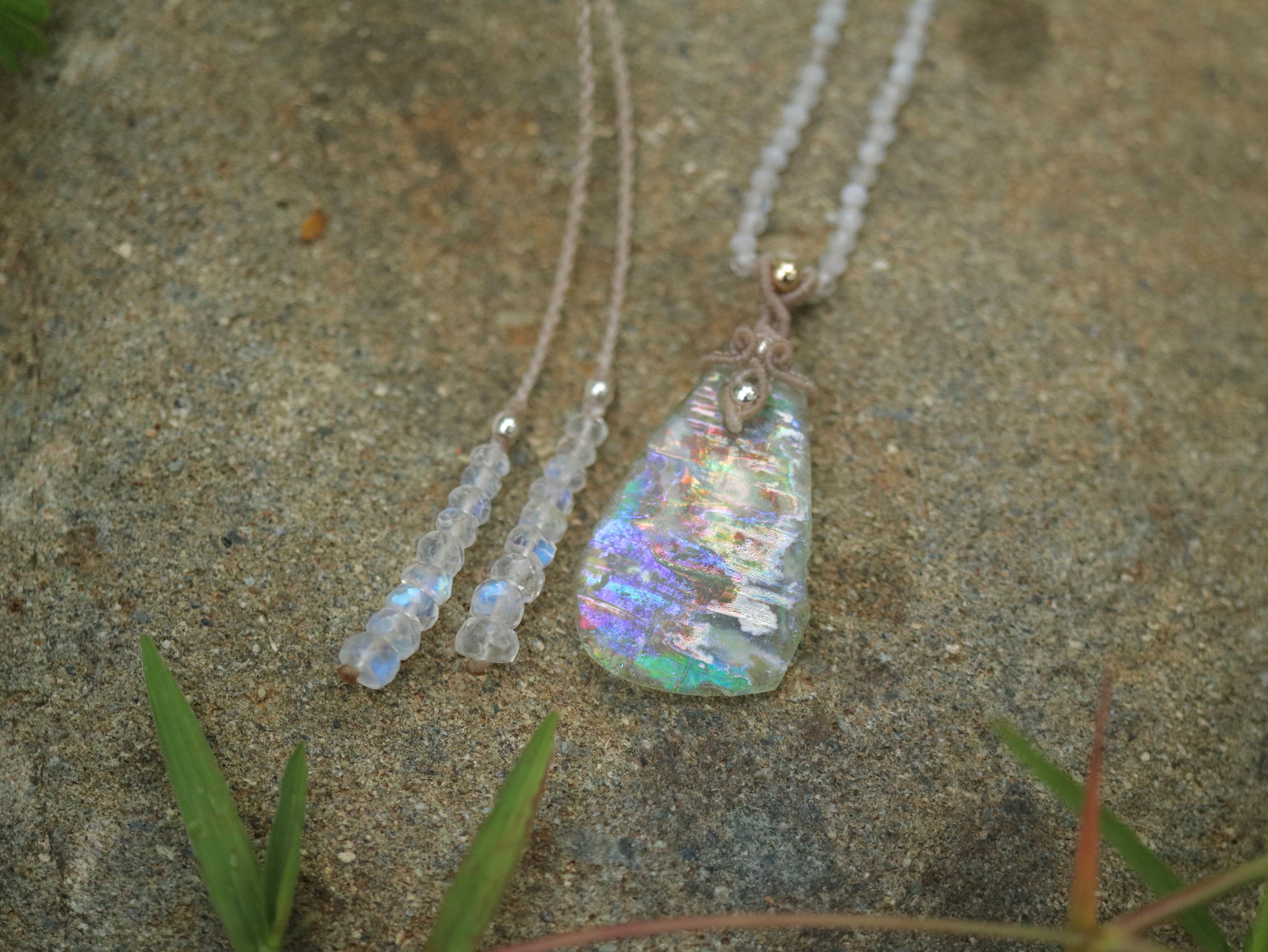 ローマングラス × ムーンストーンビーズ ネックレス Ⅳ