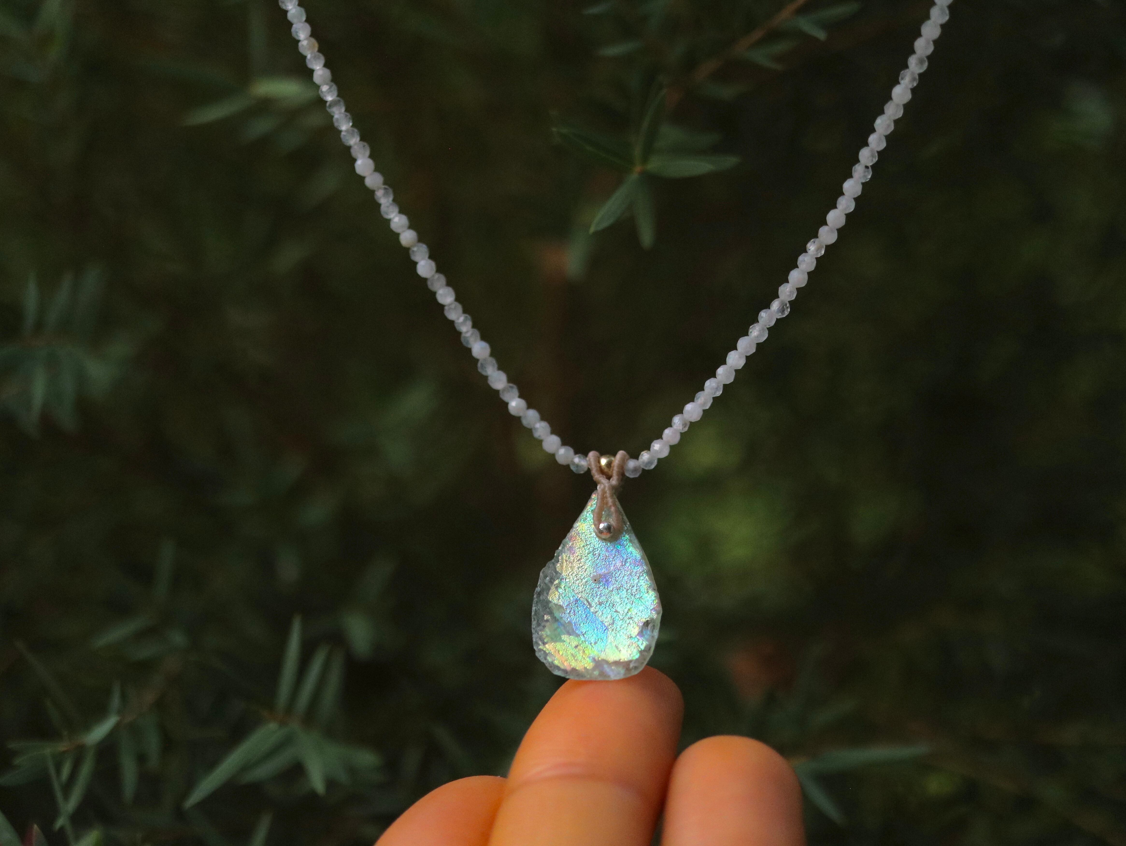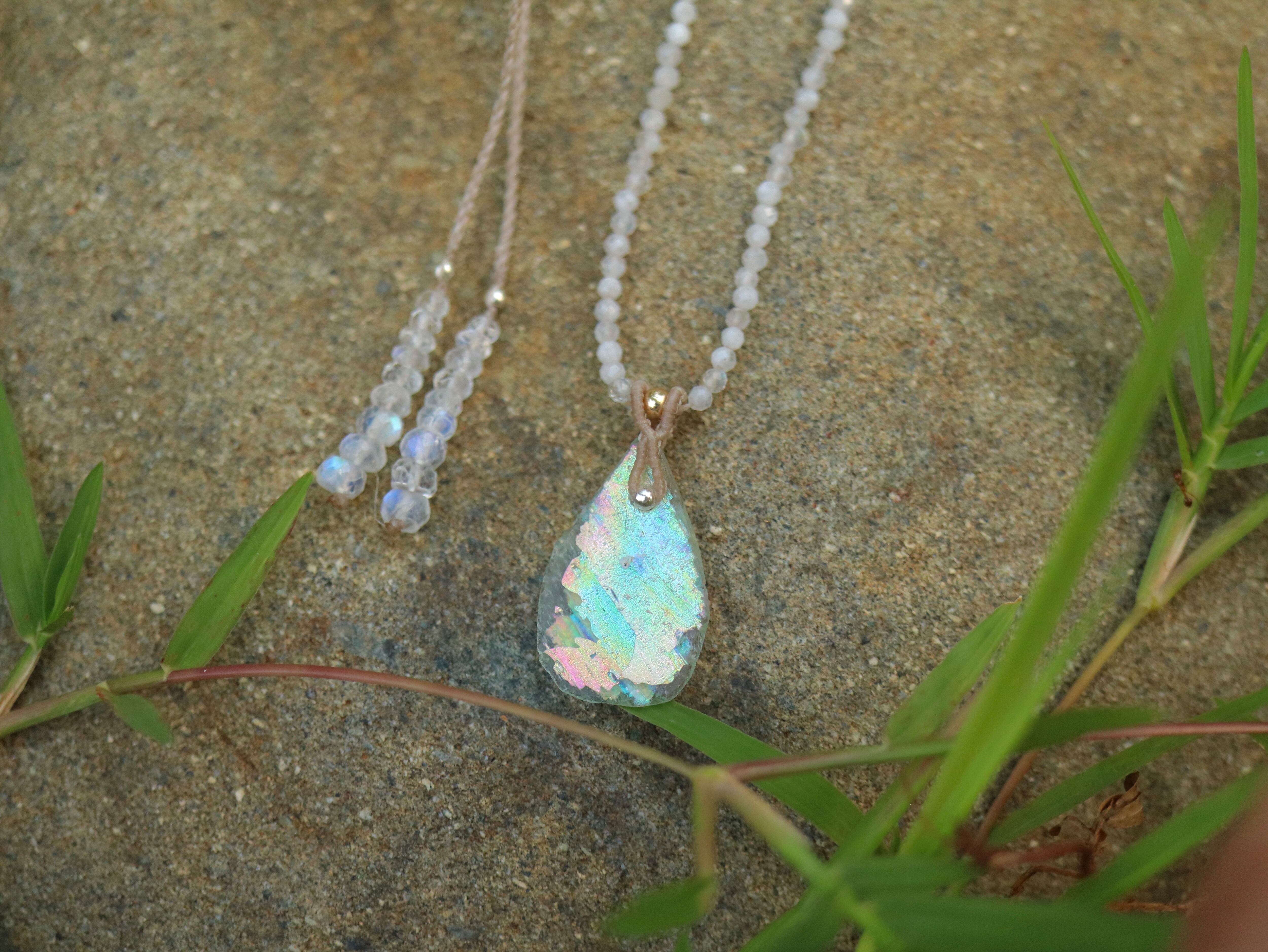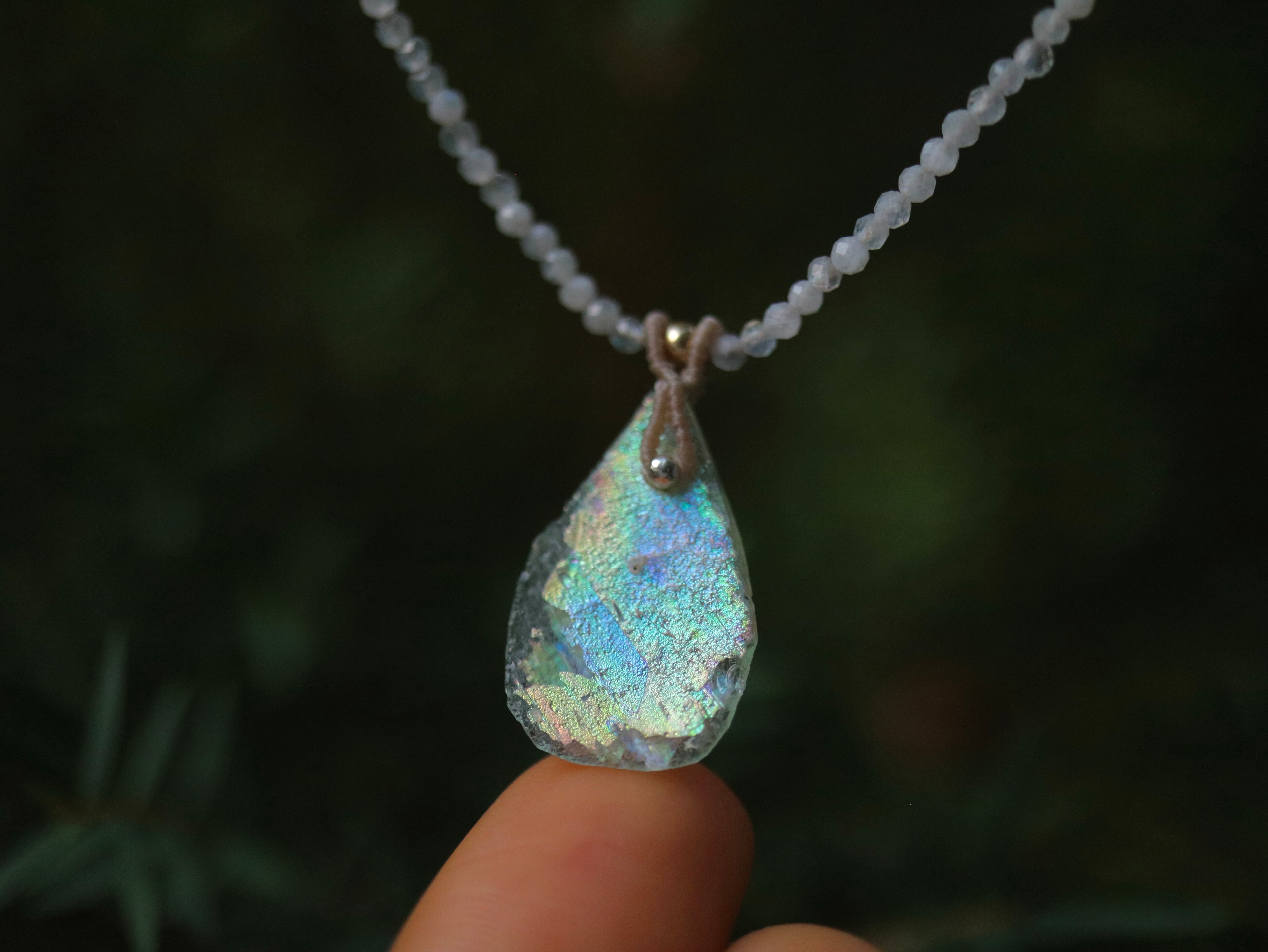 ローマングラス × ムーンストーンビーズ ネックレス Ⅵ