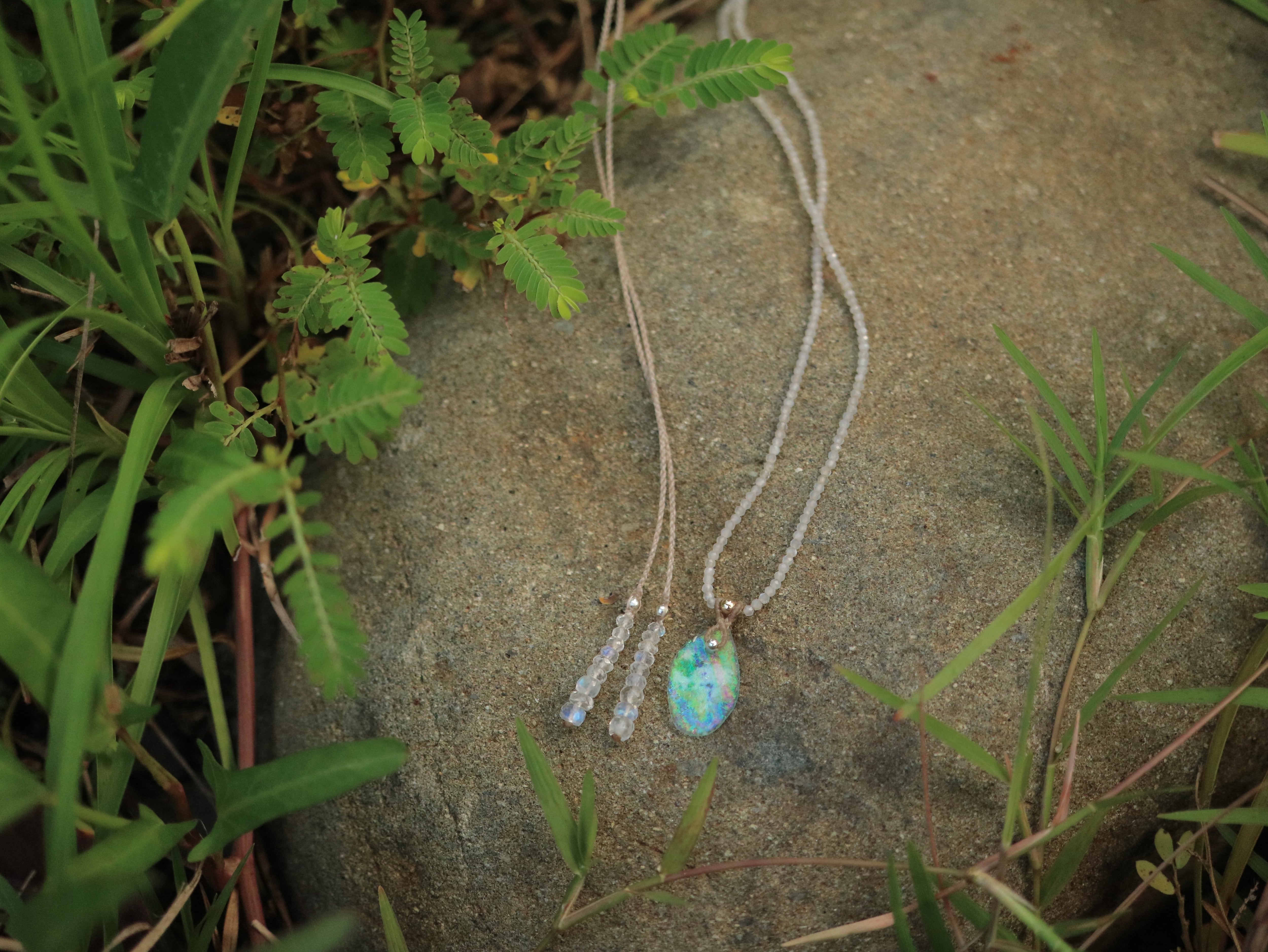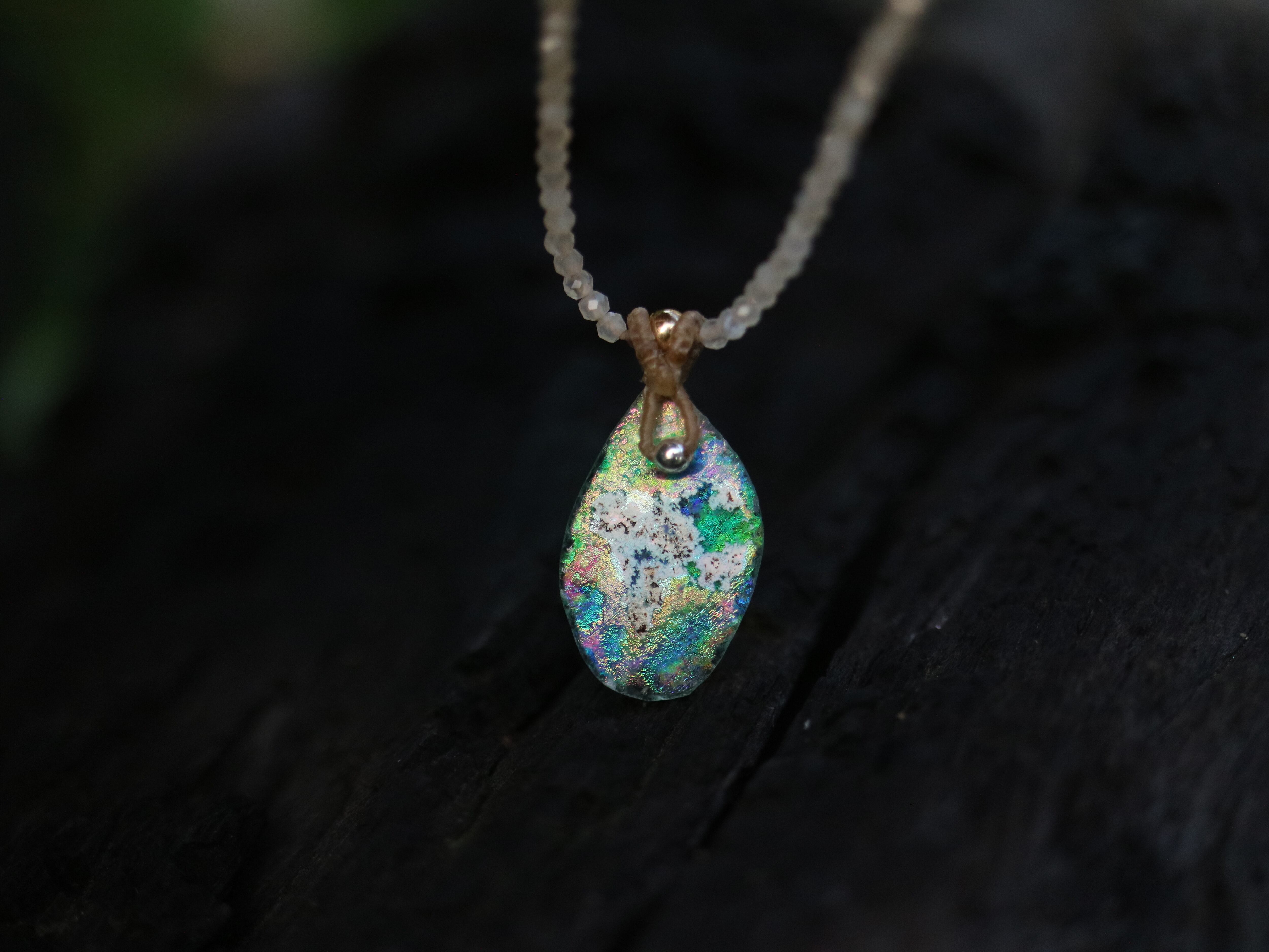 ローマングラス × ムーンストーンビーズ ネックレス Ⅶ