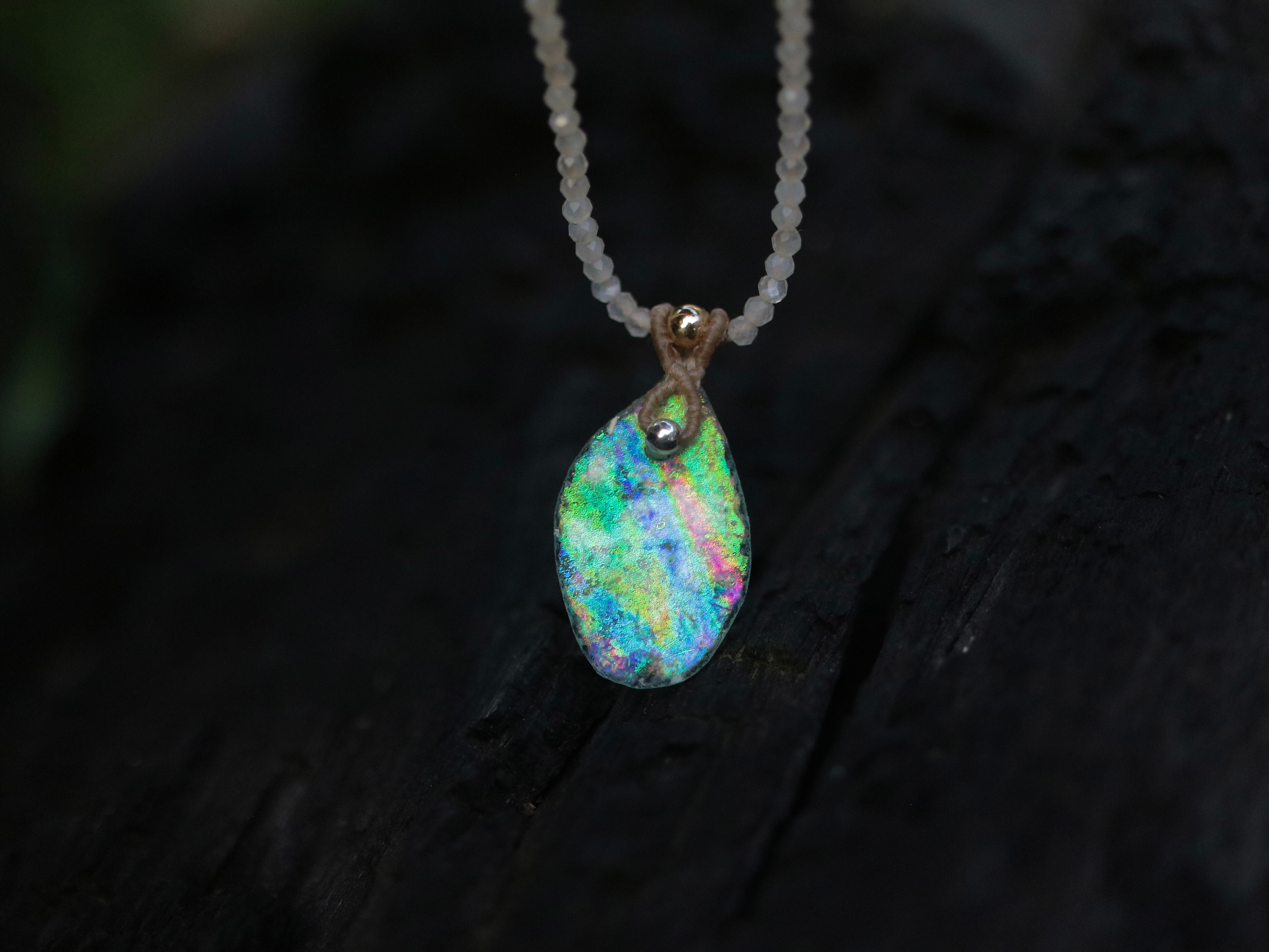 ※ ある一定の角度により虹色に輝き、太陽光や強い光を浴びるとより強く輝かしい虹色を放ちます