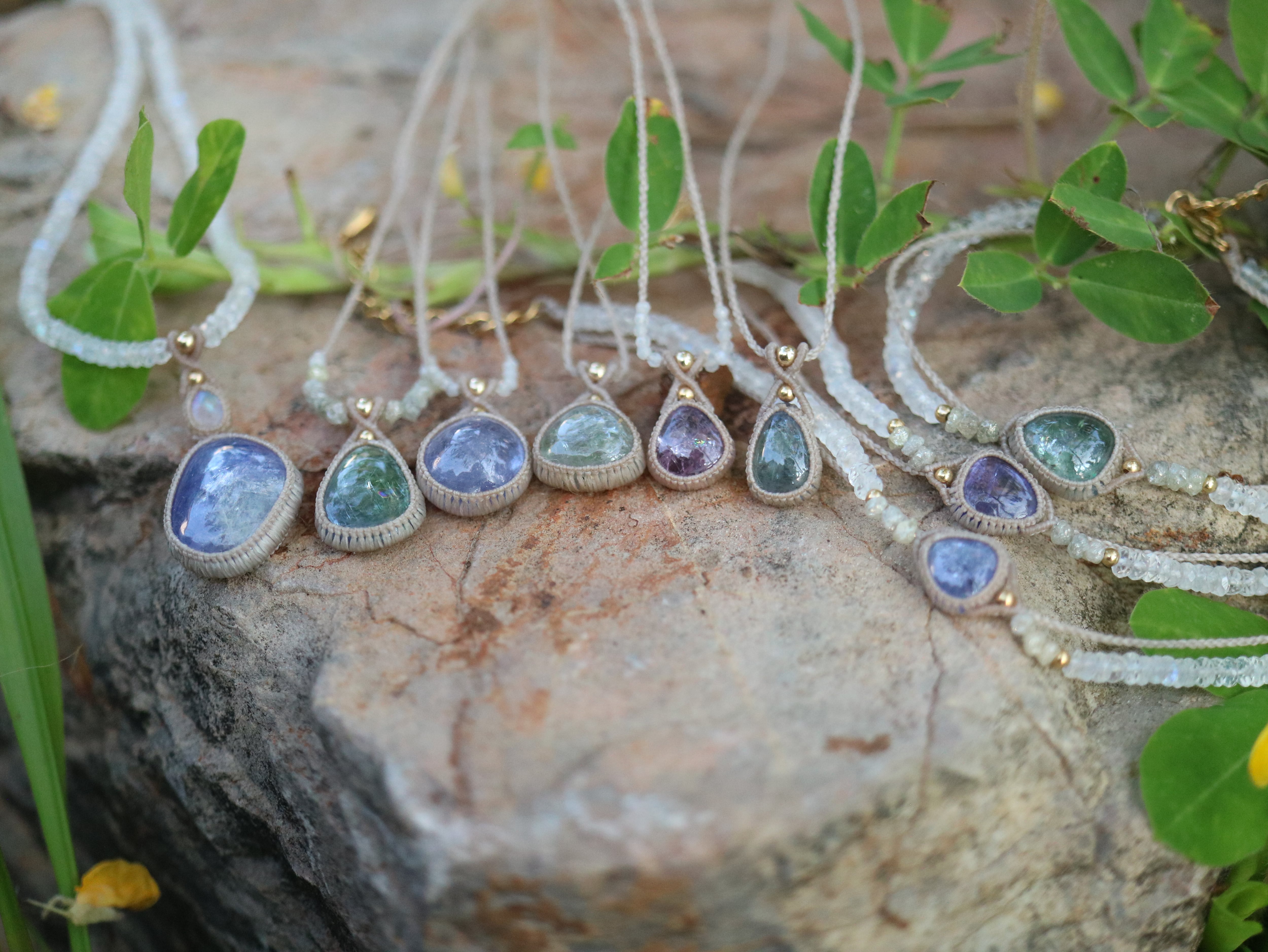 ※ マクラメ編みで包むことにより隠れていますが、掲載写真中程、矢印の箇所に欠けクラックがあります