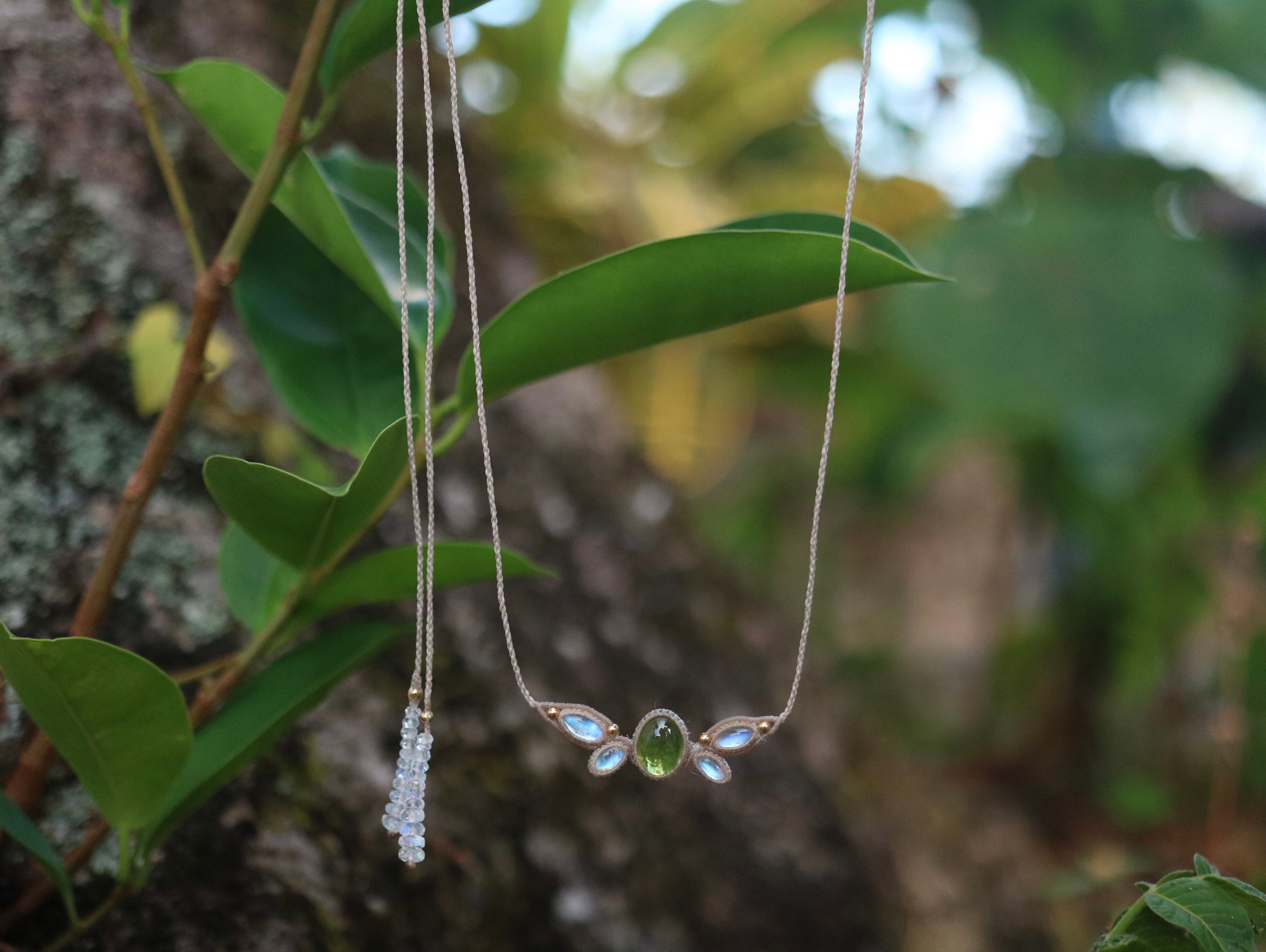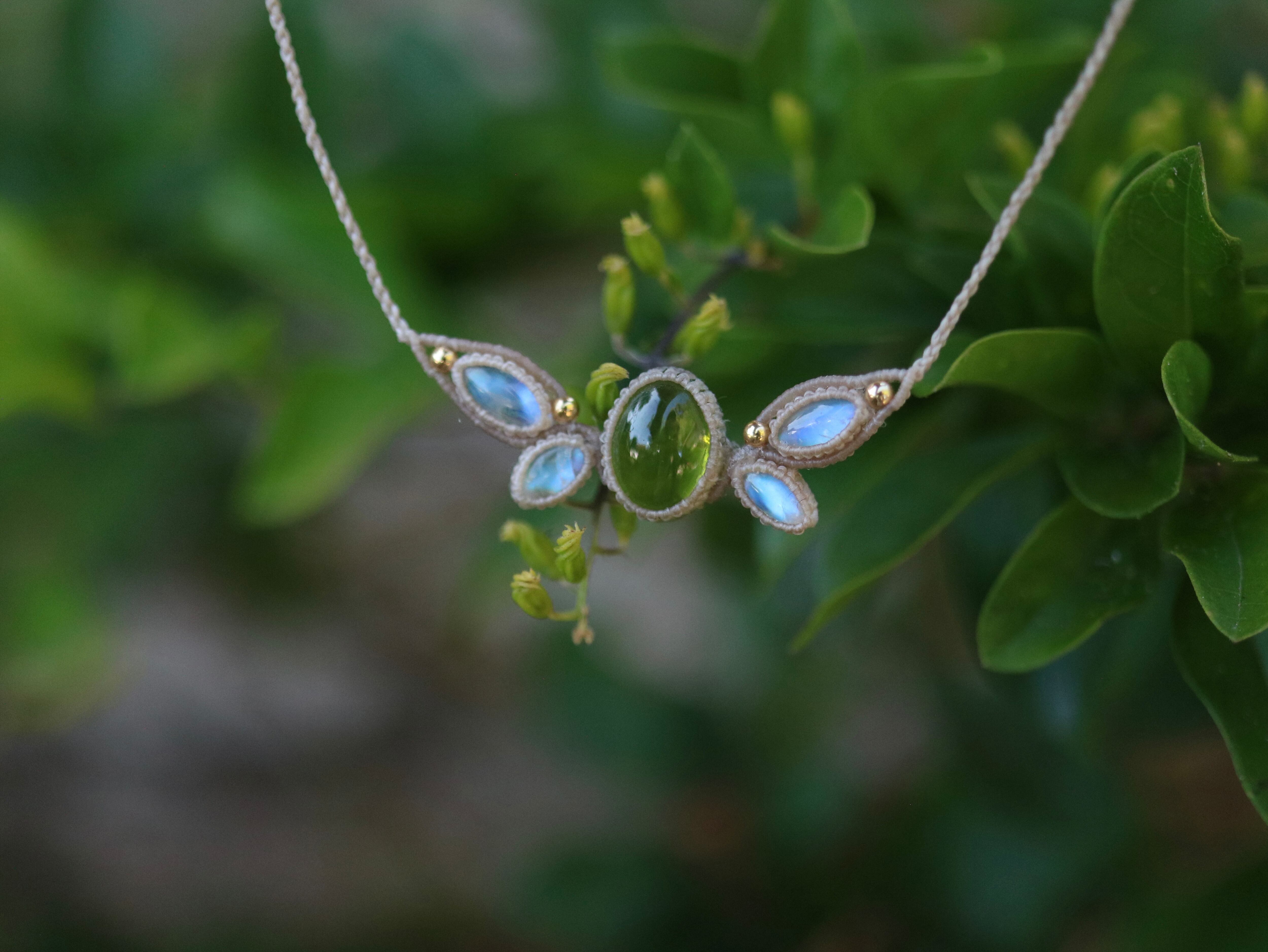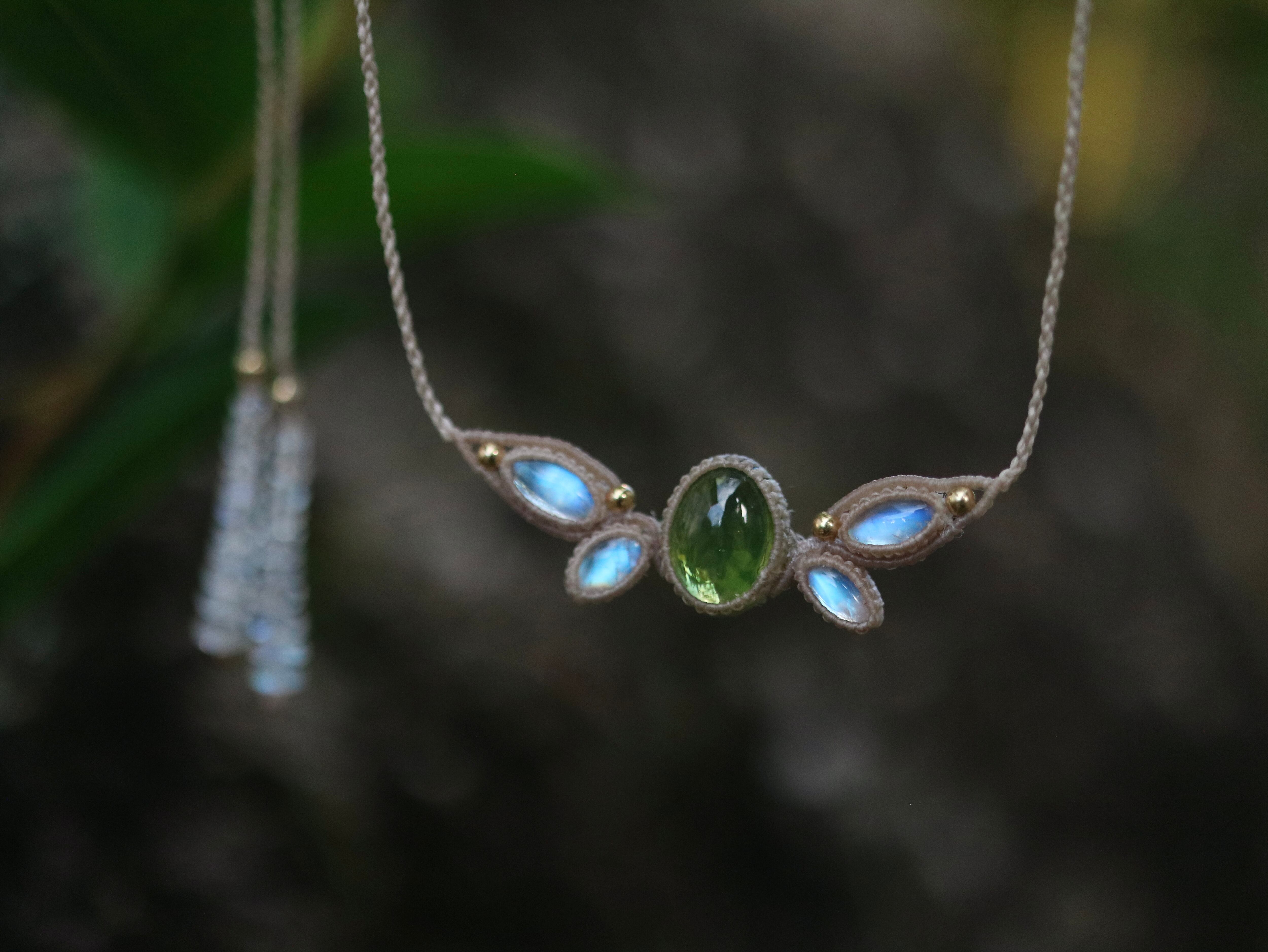 ※ ムーンストーンのシラーの輝きは、光の環境により見え方に変化が見られ、ある一定の角度によりシラーはより強く輝き、背後の色が黒(暗い)と、よりブルーのシラーが際立ちます