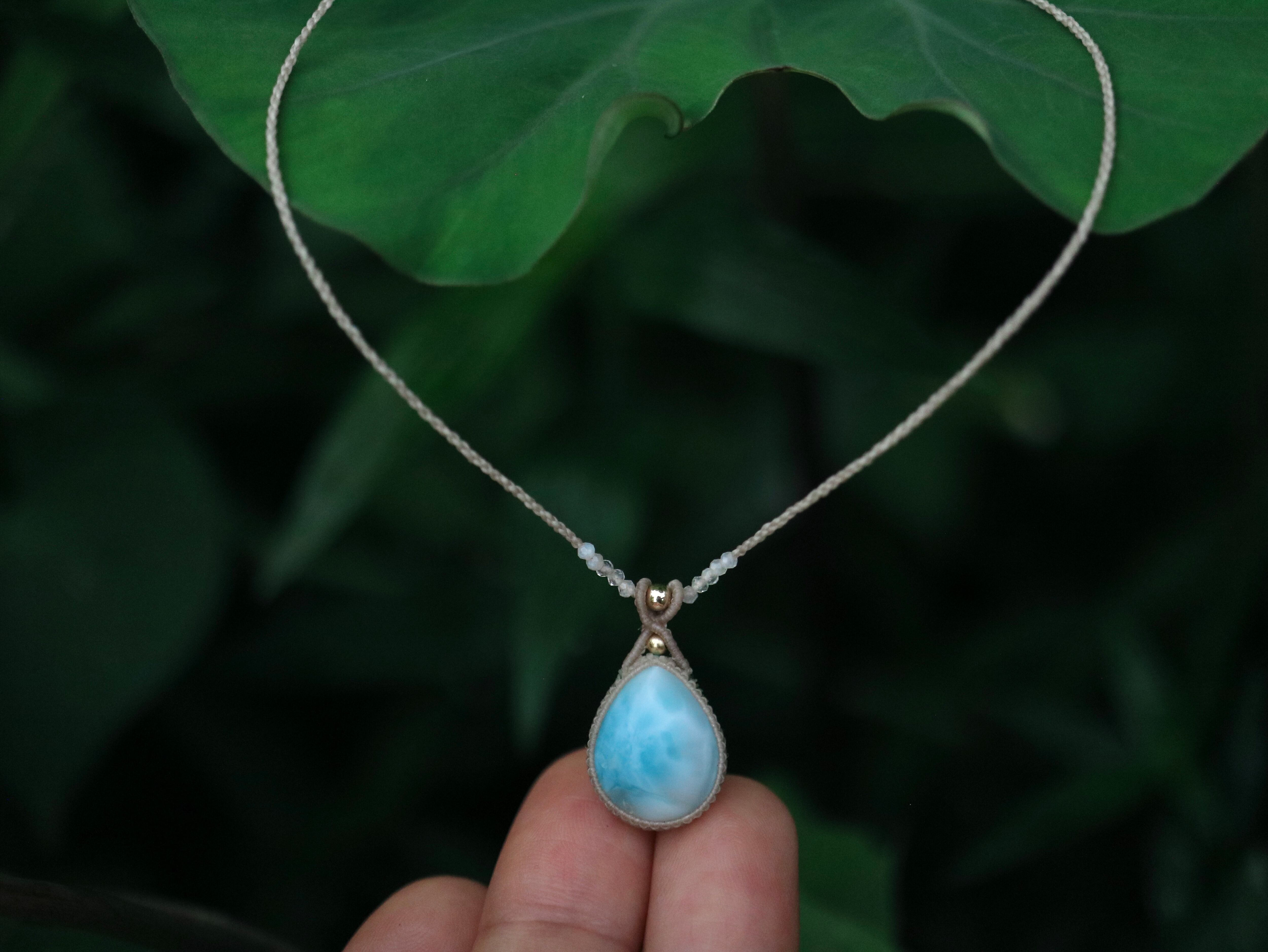 ラリマー × 極小ムーンストーンビーズ ペンダント