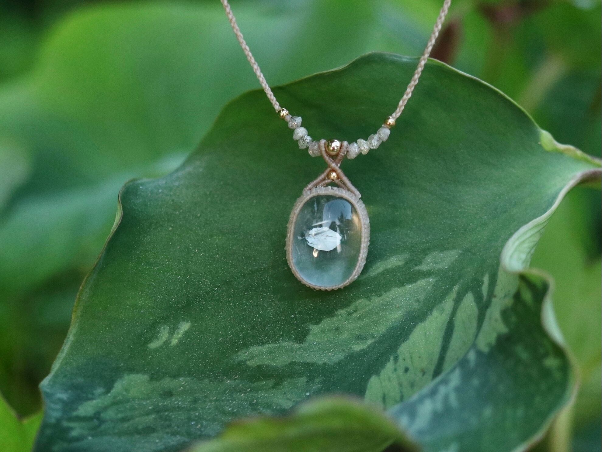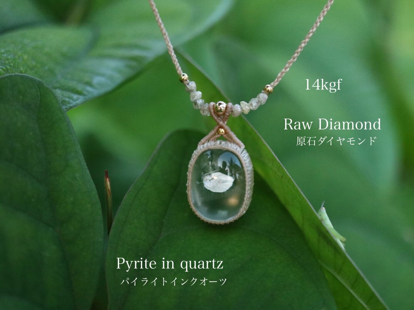 パイライトインクオーツ× 原石ダイヤモンド ペンダント