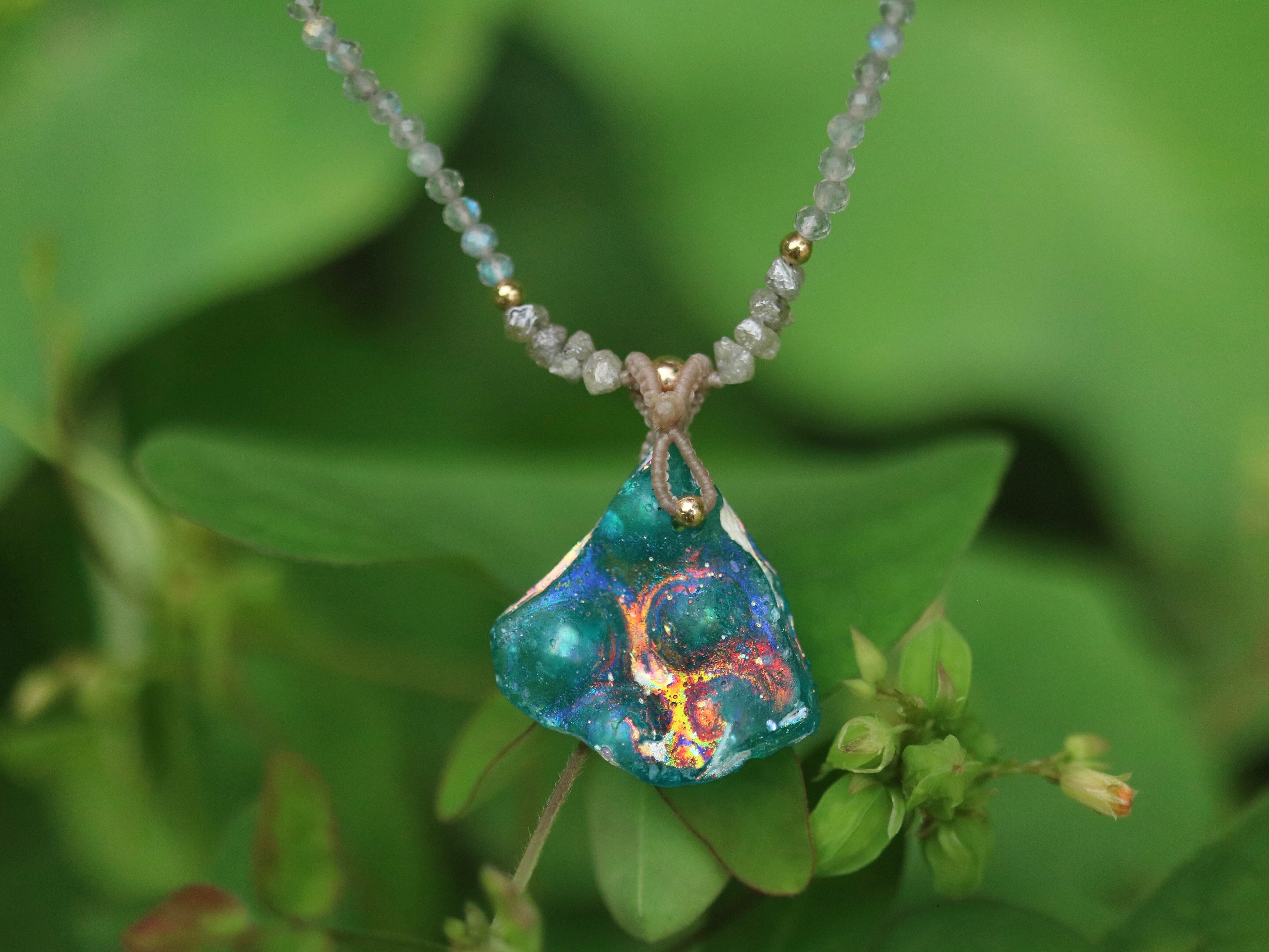 ※ 雨の日の屋外など多湿となる環境化では虹色の銀化、煌めきが薄れますが、室内などに戻ると数分で元通りに戻ります