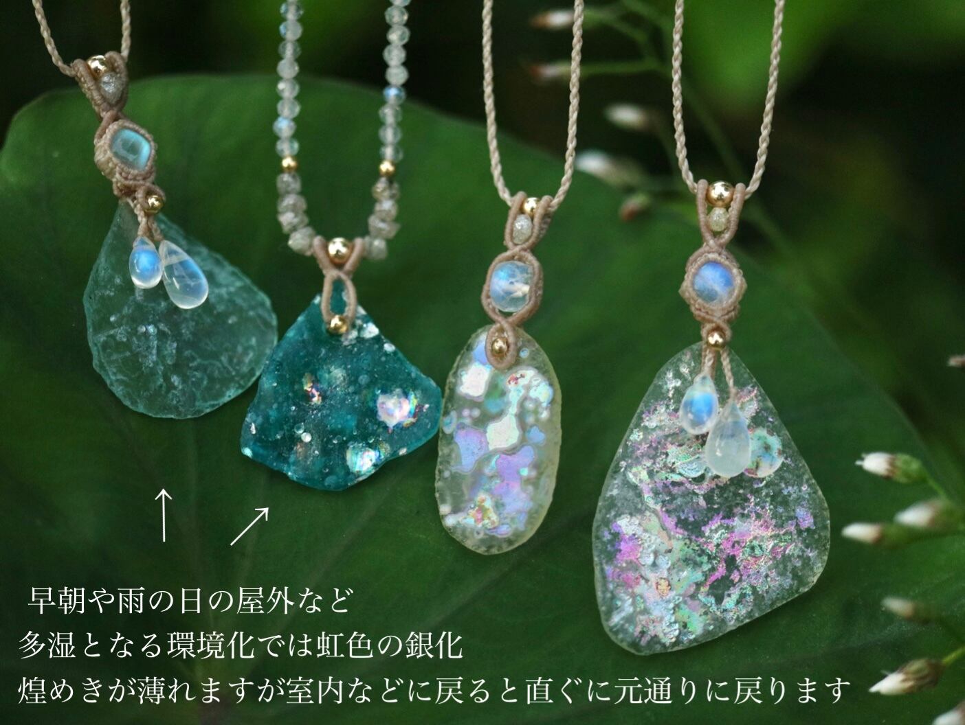 ※ 雨の日の屋外など多湿となる環境化では虹色の銀化、煌めきが薄れますが、室内などに戻ると数分で元通りに戻ります(中でもこちらは目立つ変化のないタイプとなります)
