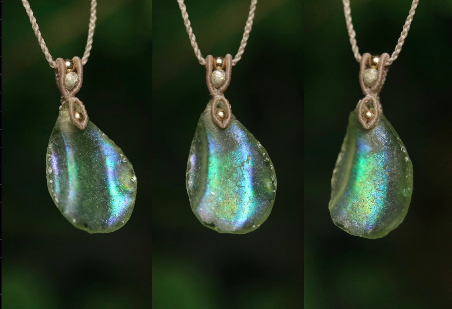 ※ こちらのローマングラスは比較的薄く、またローマングラスの周囲はマクラメ編みなどで包まれていませんので優しくお取り扱い下さい