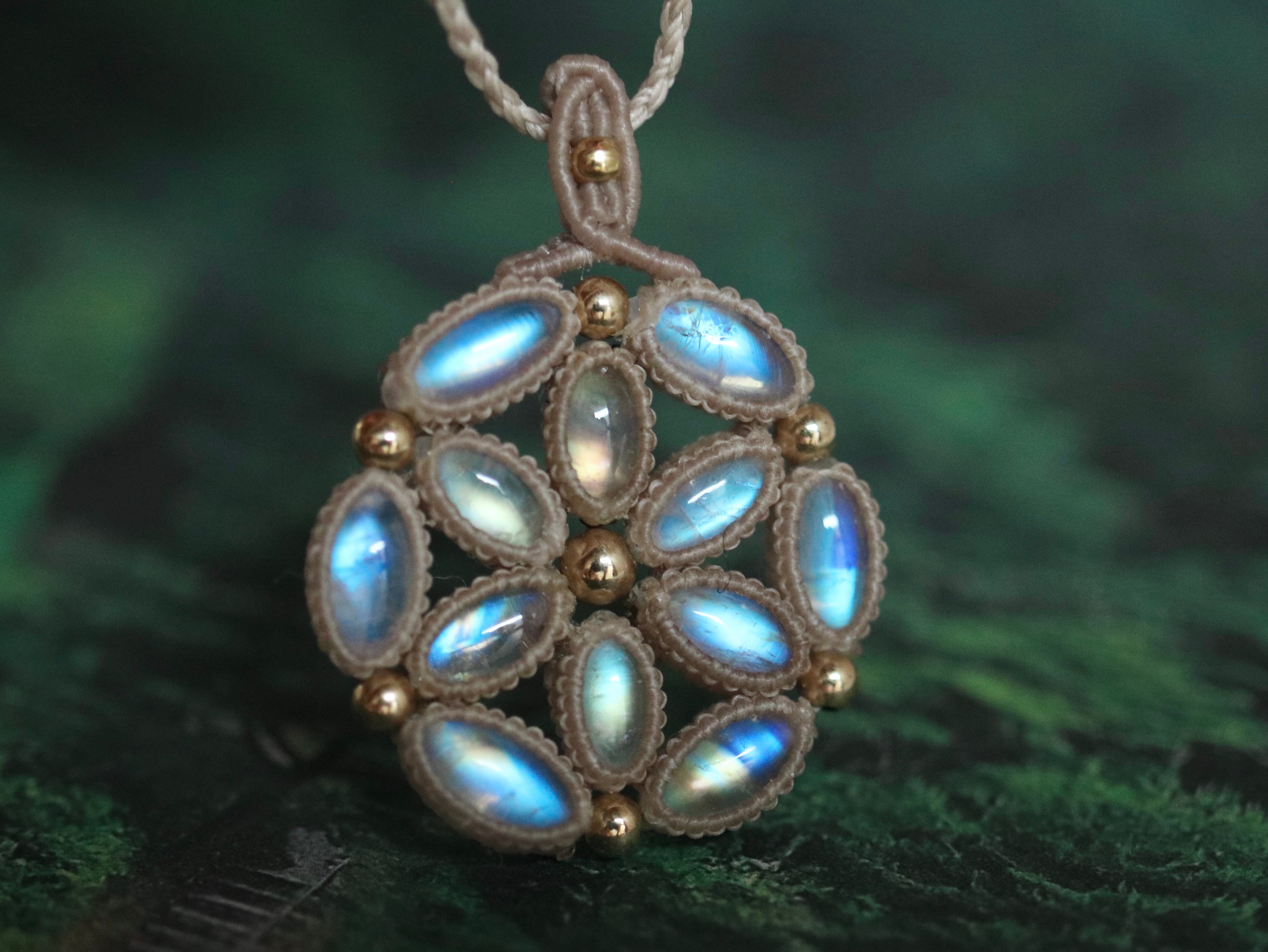 ※ レインボームーンストーンのシラーの輝きはある一定の角度にて輝きます