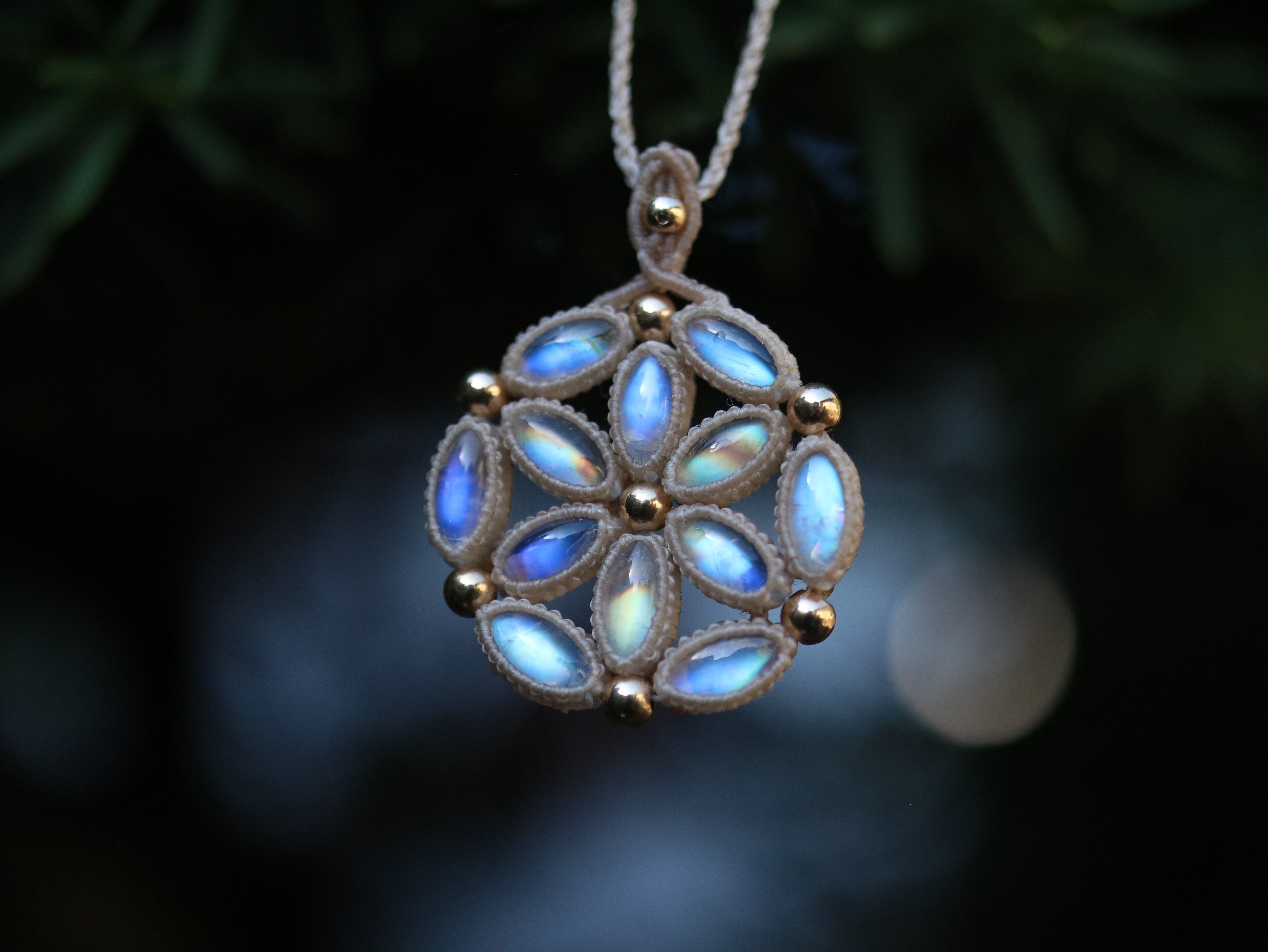 ※ レインボームーンストーンのシラーの輝きはある一定の角度にて輝きます