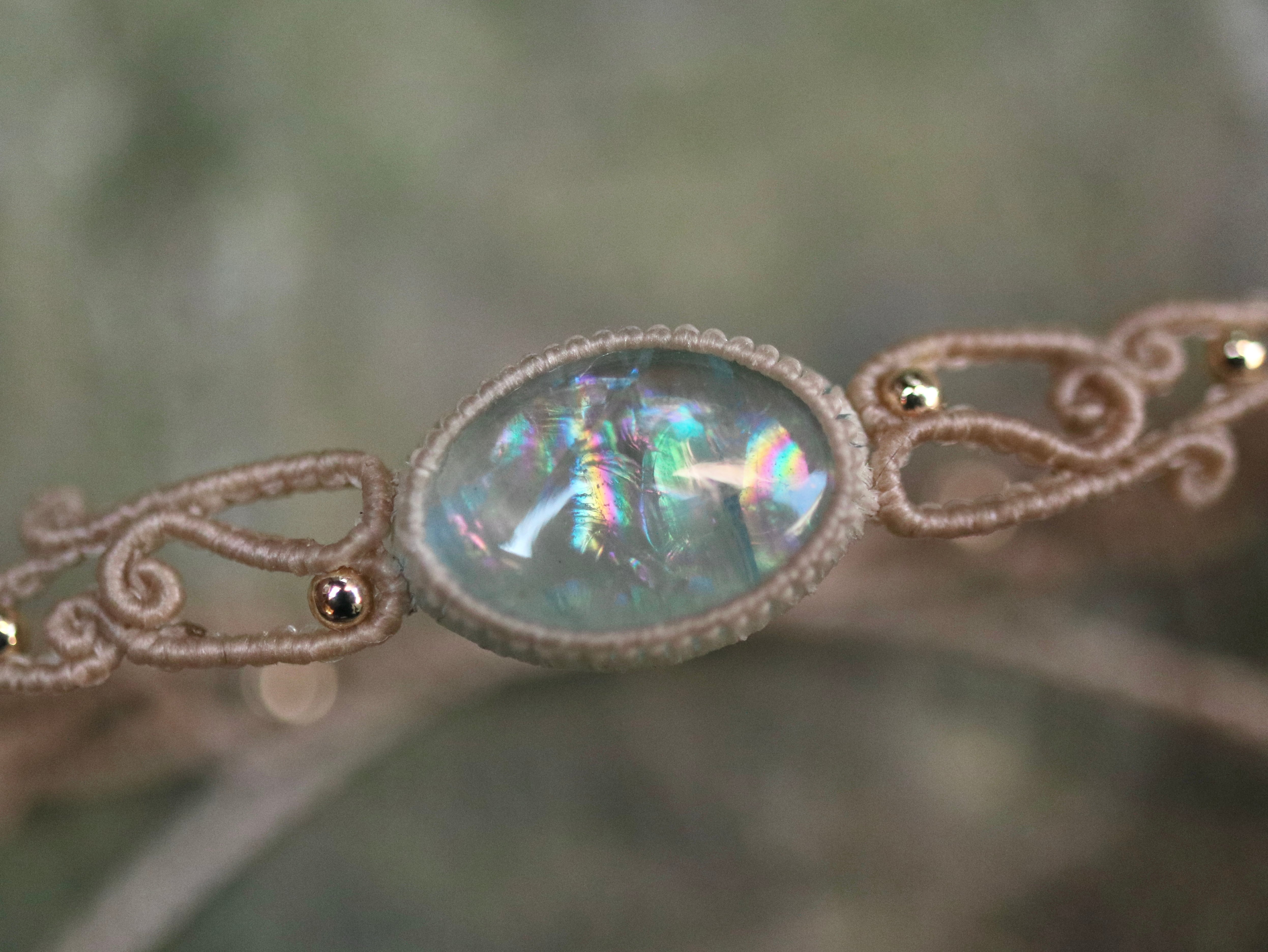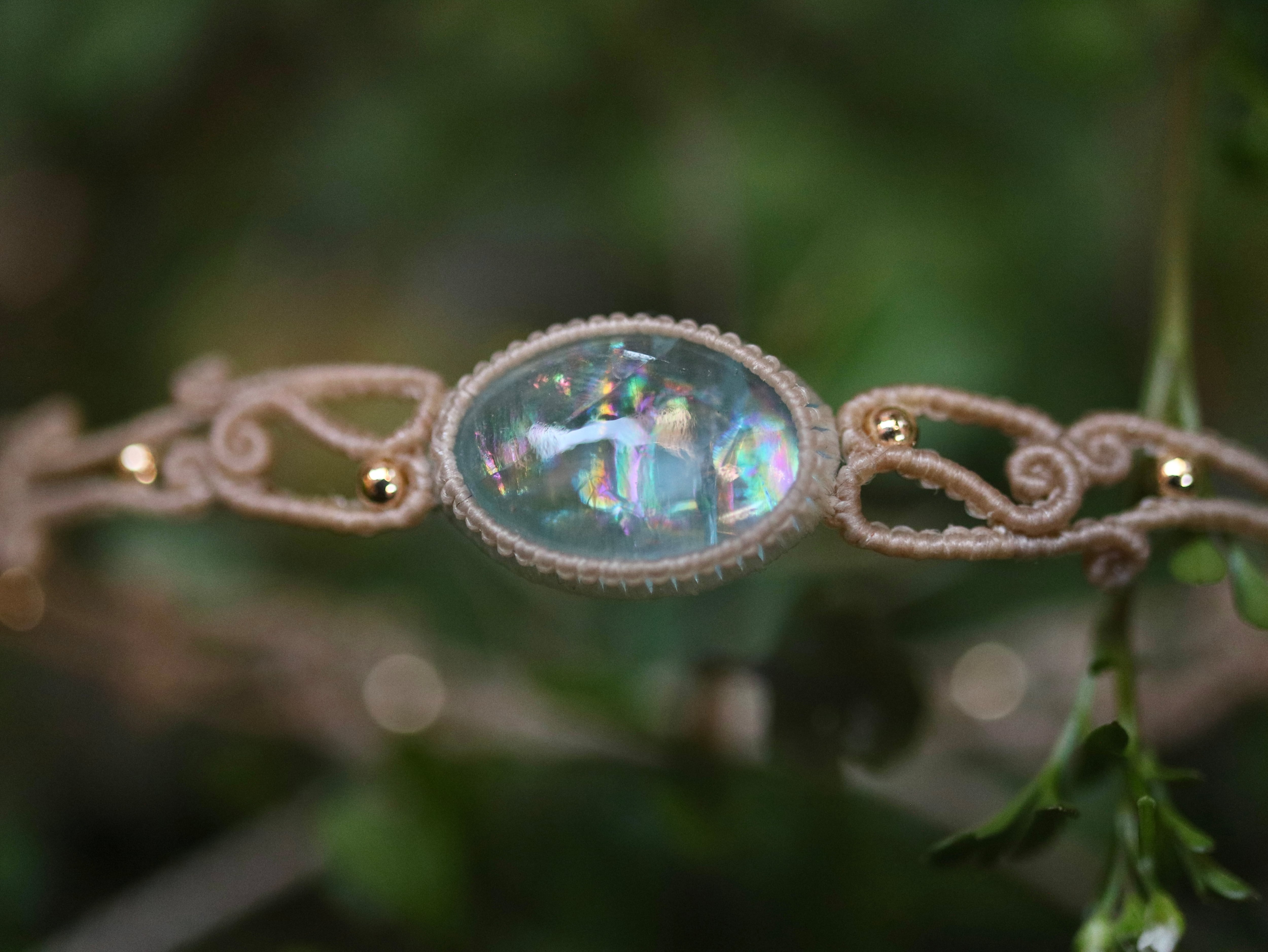 ※ アクアマリンは形成上どうしてもクラックが生じる天然石のひとつとなります。また同時にこちらのように美しい虹を内包するアクアマリンが存在しています。